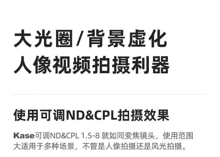 Kase 58mm Adjustable ND&CPL1.5-8 gears 2-in-1 filter set VND light filter, polarizing filter, medium gray density filter, low color cast video tool