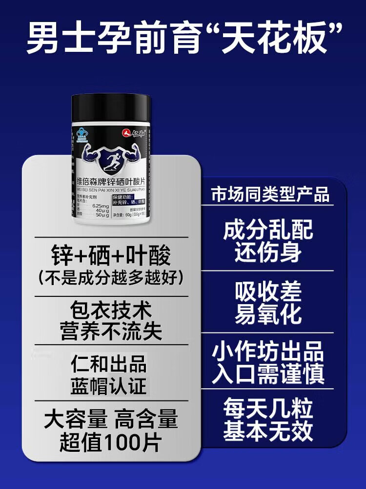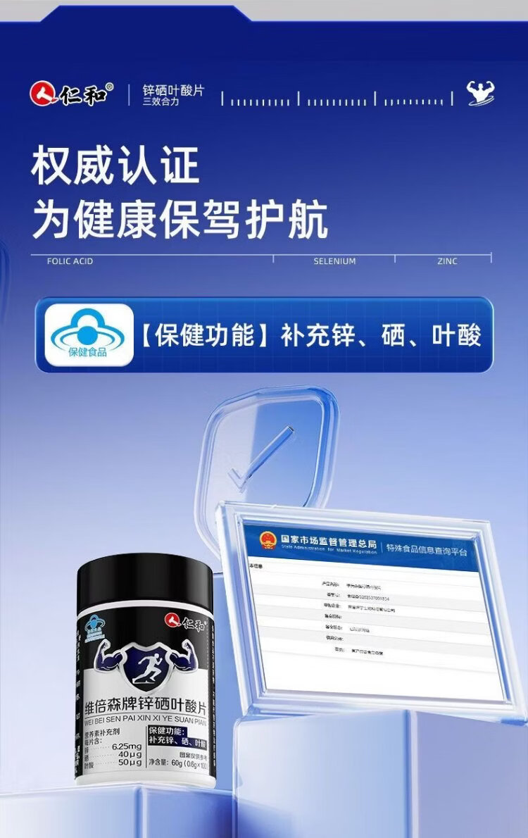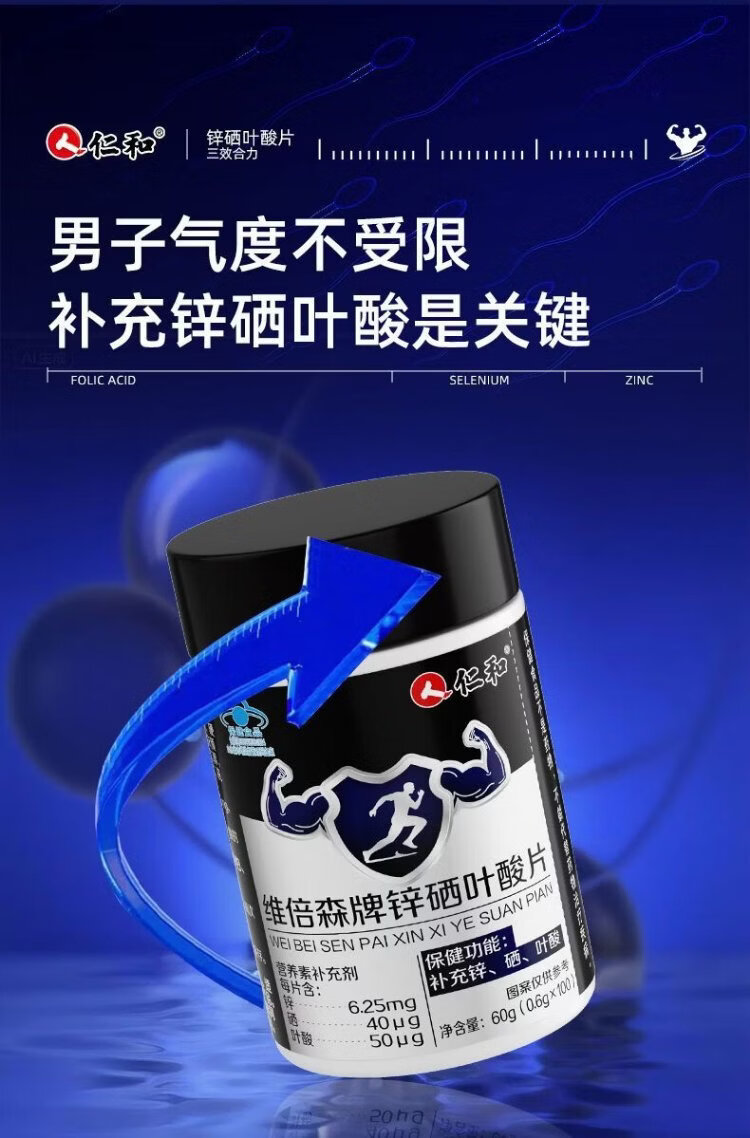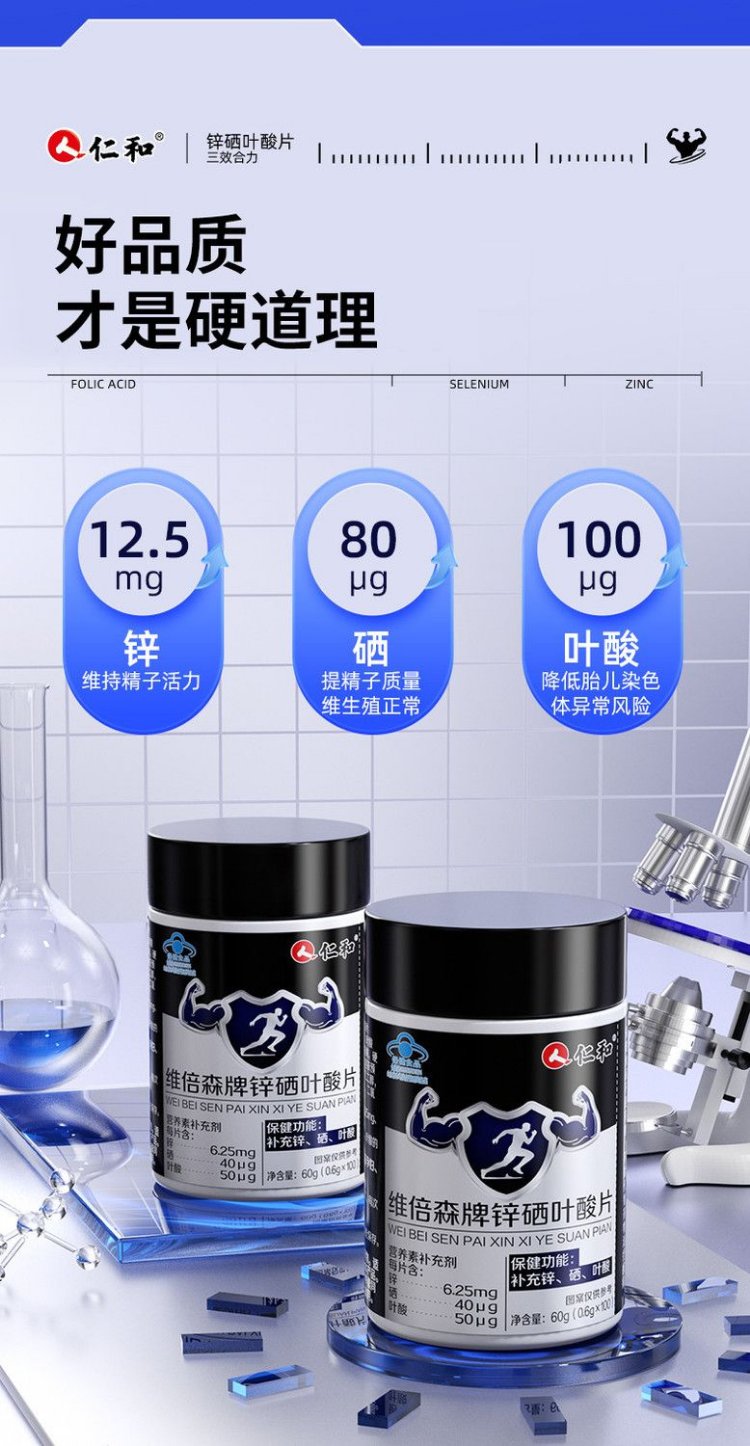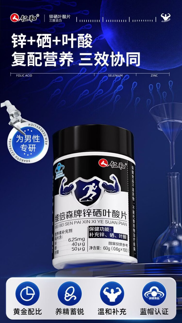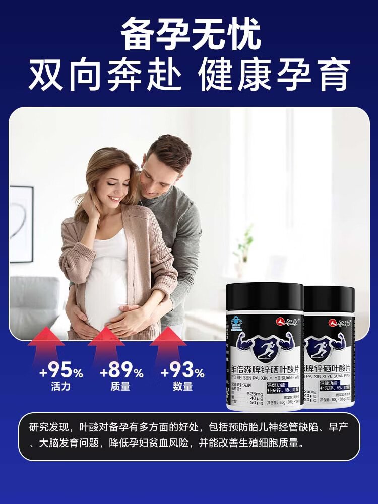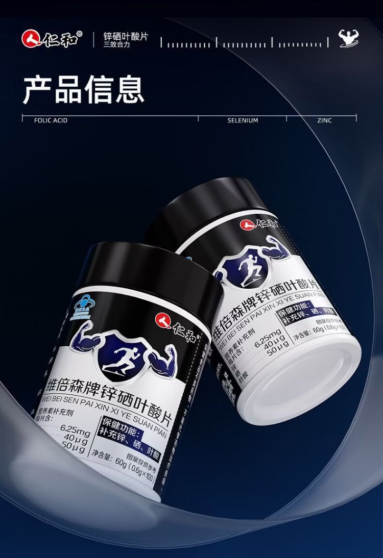 Renhe Zinc Selenium Folic Acid Tablets 100 Tablets Men's Vitamin B Complex Pregnancy Preparation Zinc Selenium Tablets Improve Male Sperm Vitality Conditioning