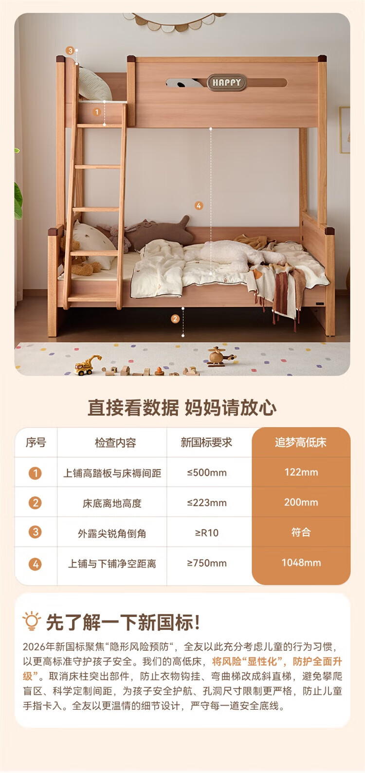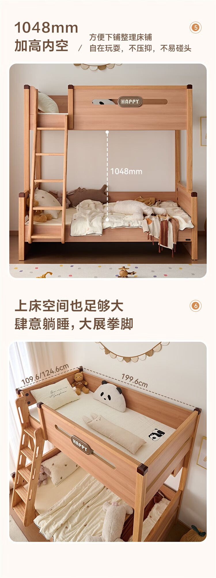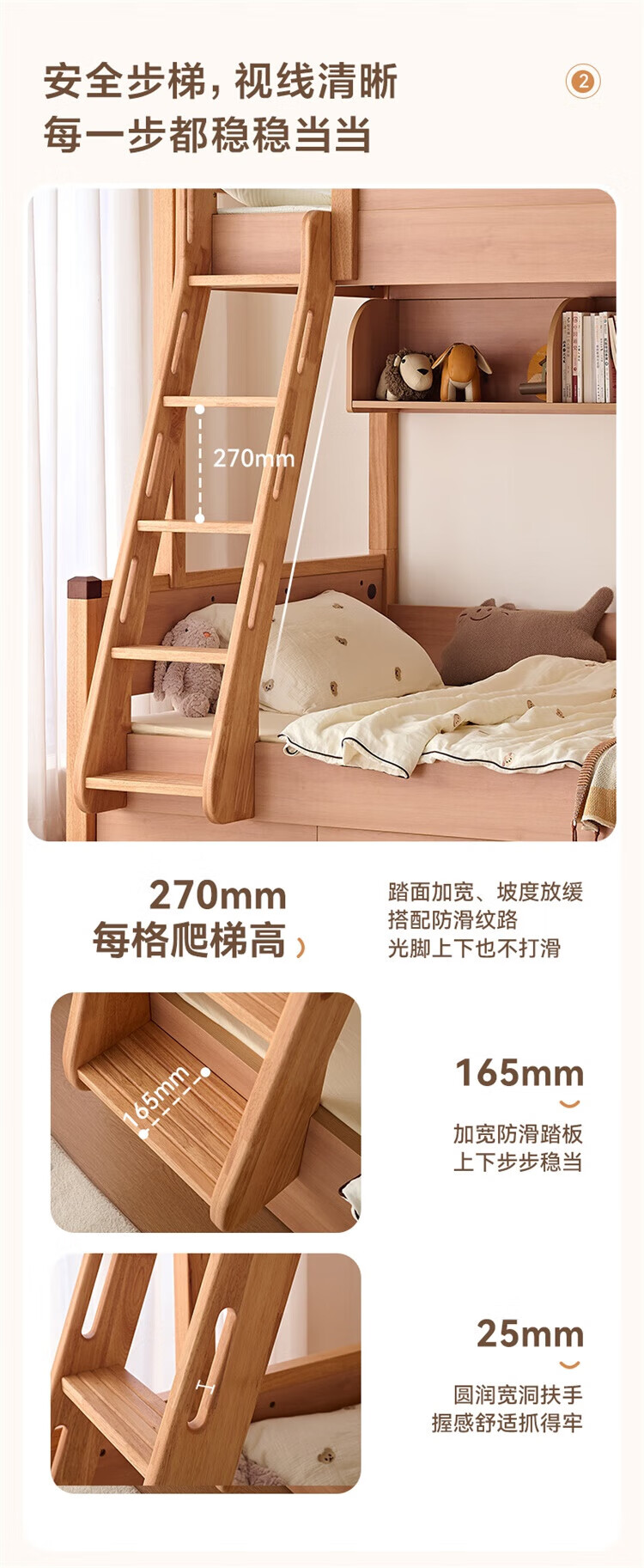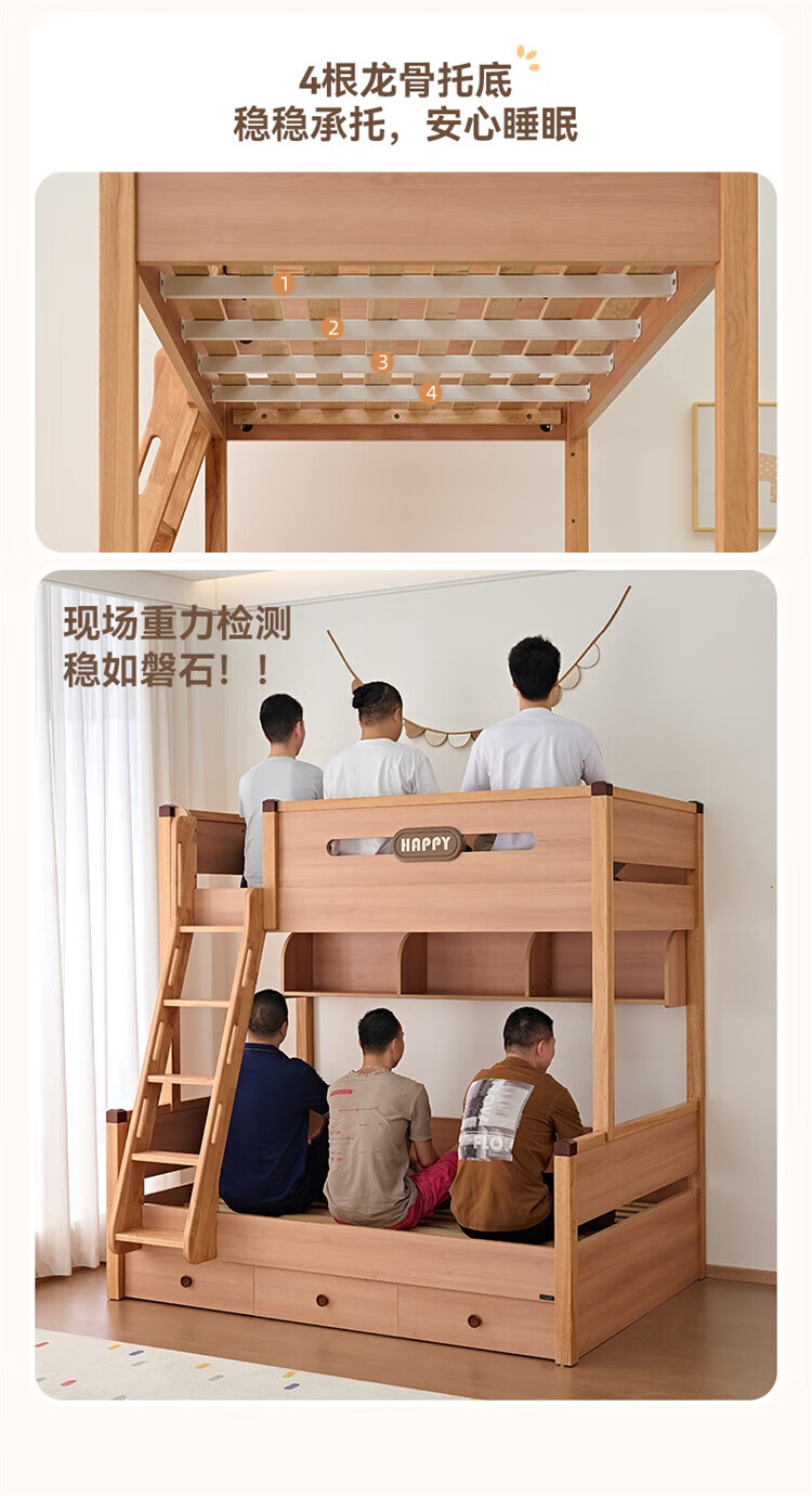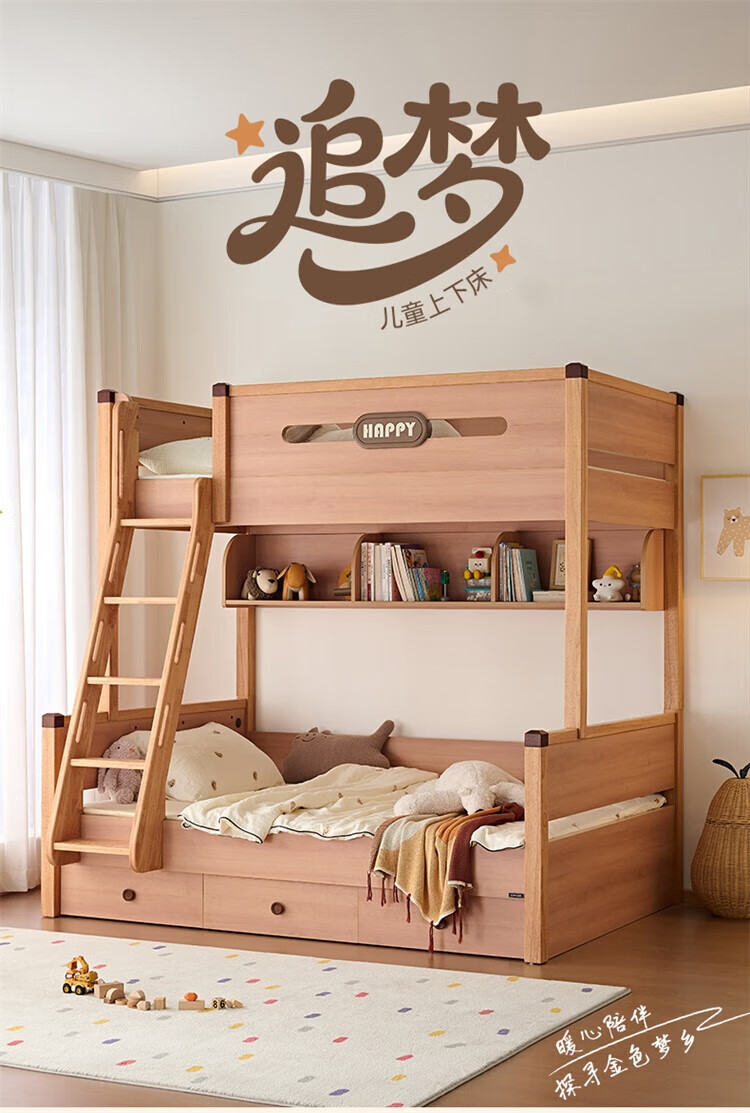Quanyou Home Dream Chasing Children's Bunk Bed, Sibling Bed, High and Low Twin Bed, Extra Wide Step Ladder, Double Climbing Ladder