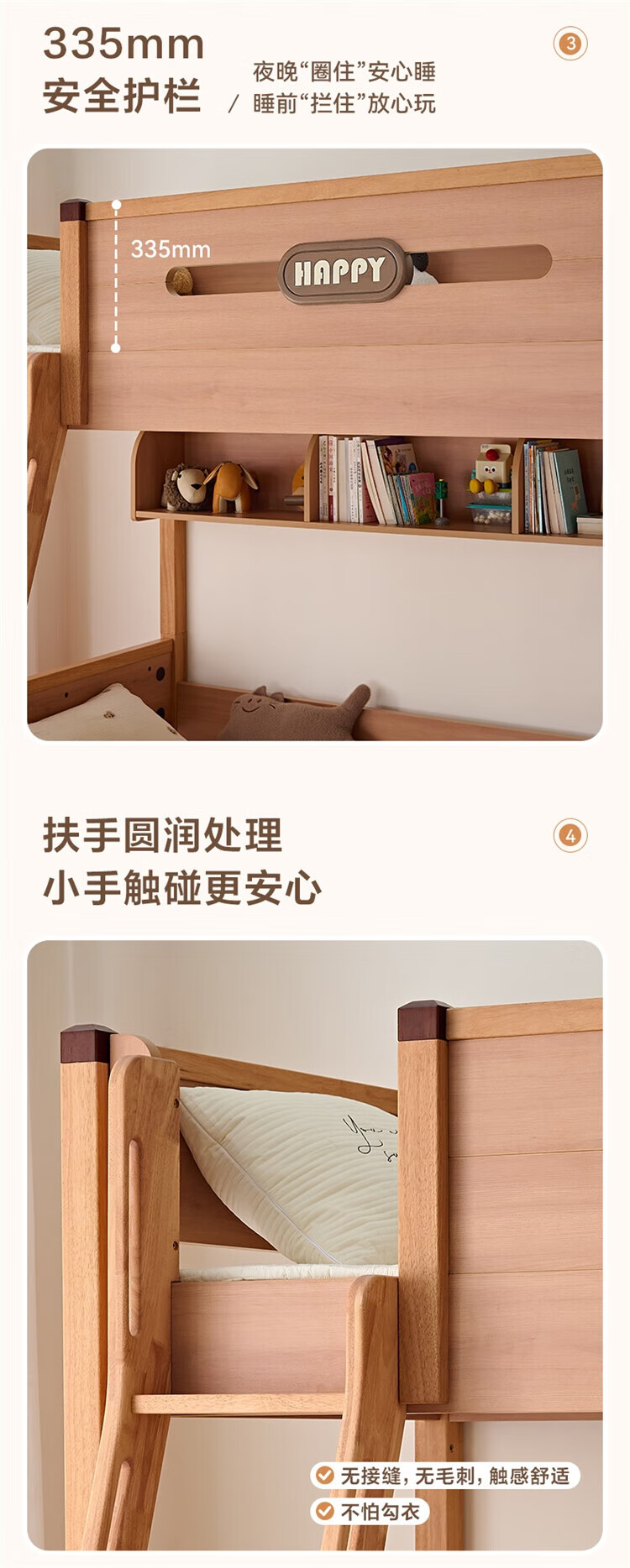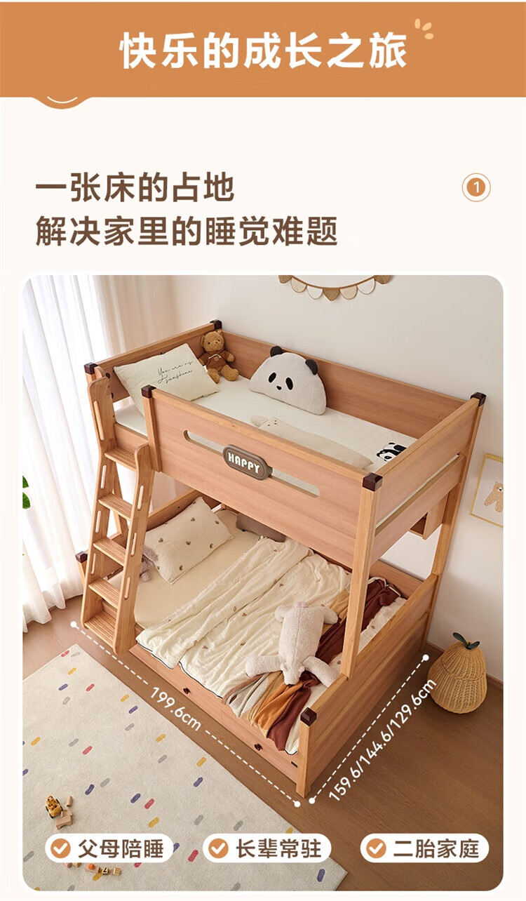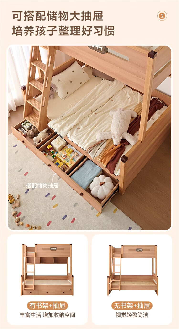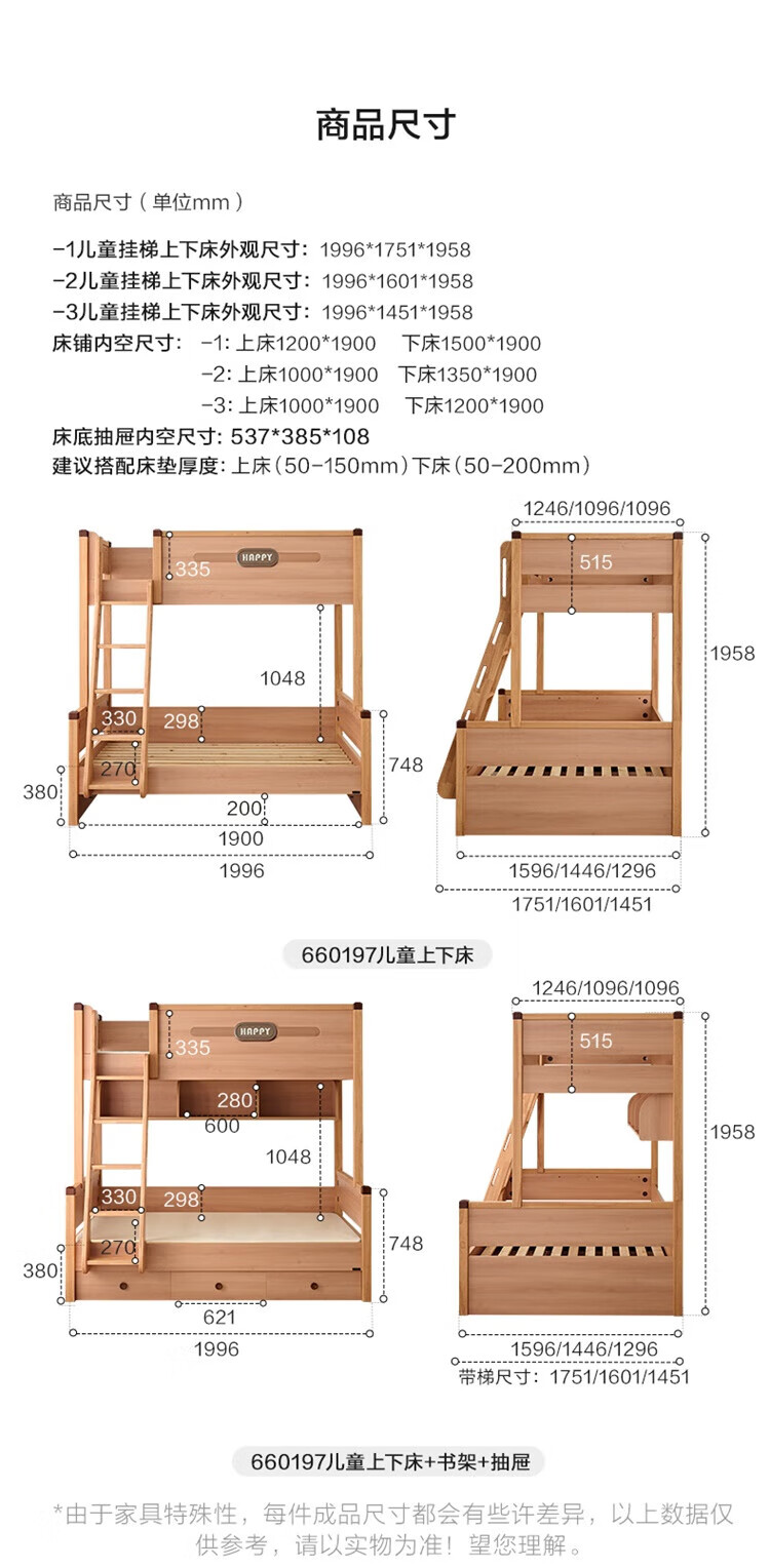 Quanyou Home Dream Chasing Children's Bunk Bed, Sibling Bed, High and Low Twin Bed, Extra Wide Step Ladder, Double Climbing Ladder