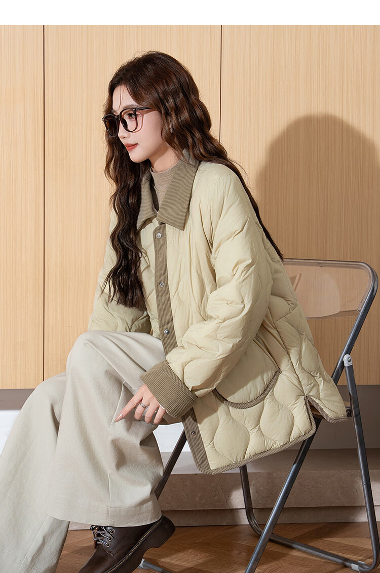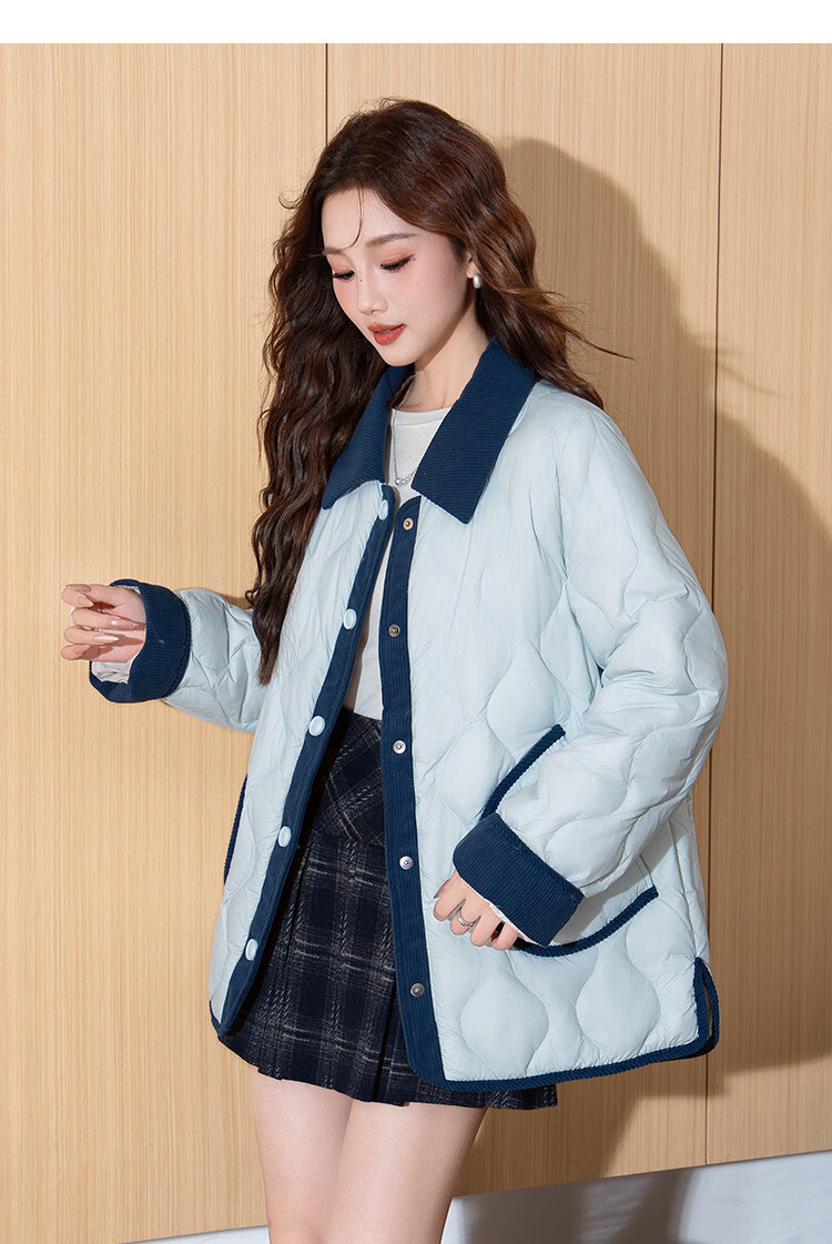 TonLion 2025 Winter Women's Light Down Jacket Spliced Small Fragrance Style Thin Diamond Shirt Collar Jacket