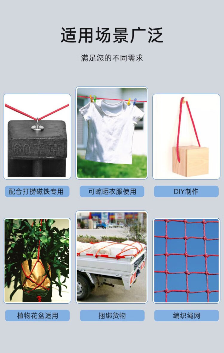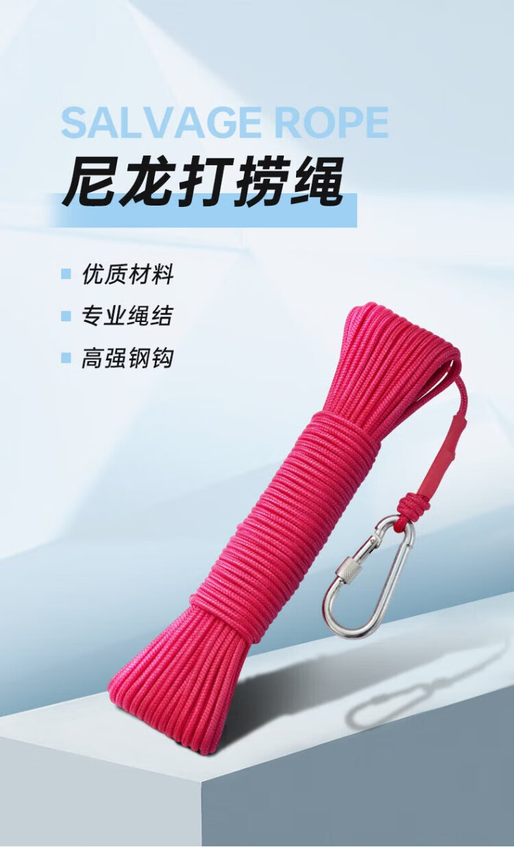 Jiuqiangu Clothesline/Salvage Rope Braided Nylon Clothes Clothes Rope Outdoor Strong Magnetic Salvage Rope Cargo Bundling Weighing Strong Strong Tension With Single Hook Red 6mm*20 Meters