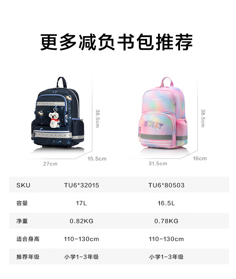 Samsonite Koala student schoolbag 25 years new children's high-end burden-reducing backpack girls antibacterial backpack TU6 for grades 1-5