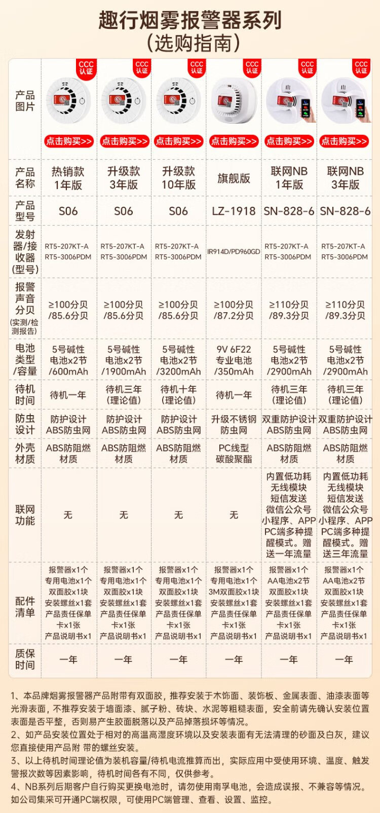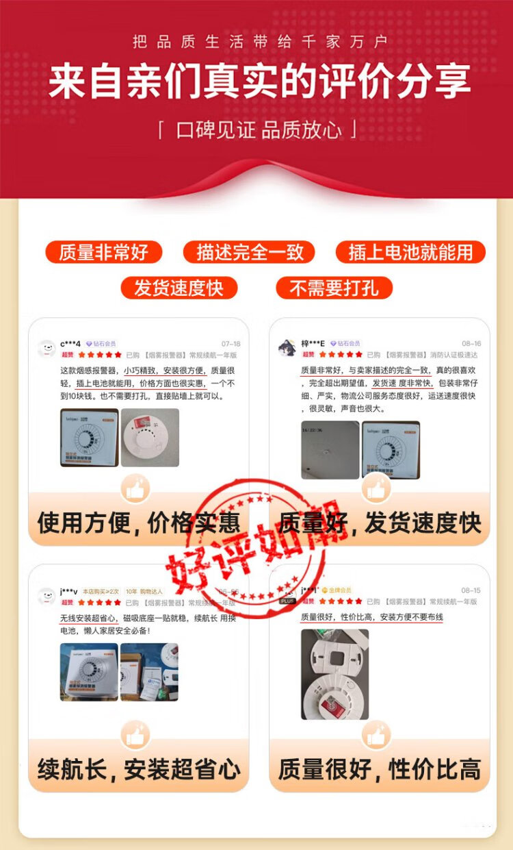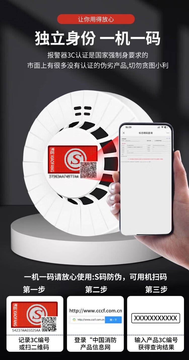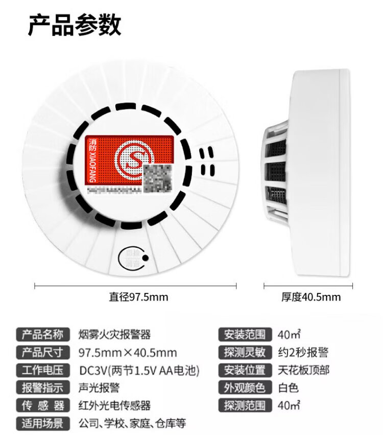 Quxing Smoke Alarm National Standard 3C Certified Independent Smoke Alarm Fire Fire Detector Wiring-Free Battery Model