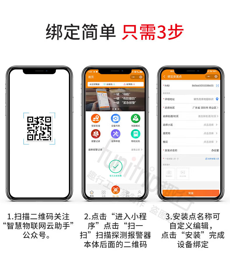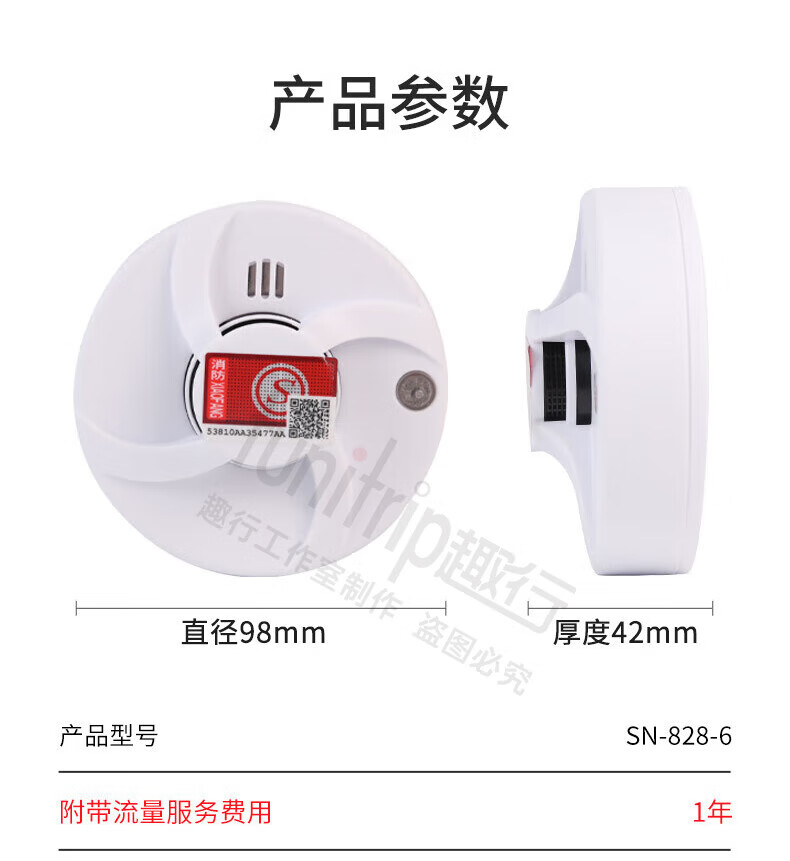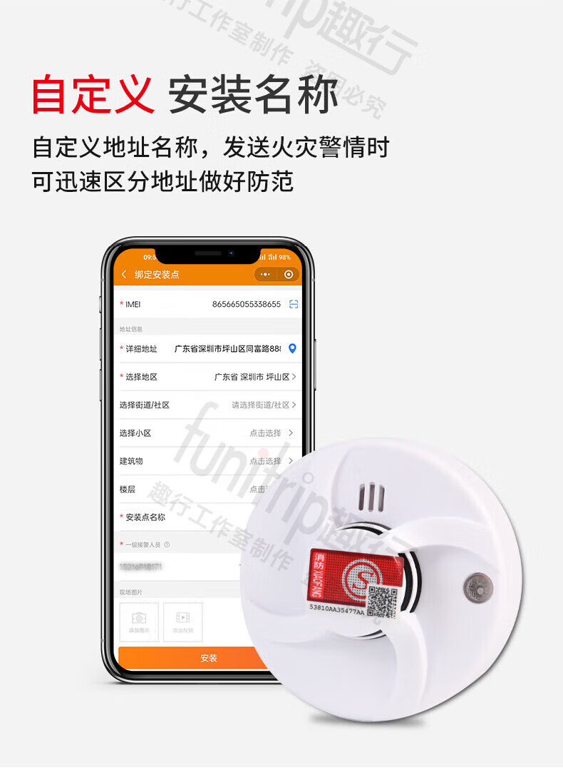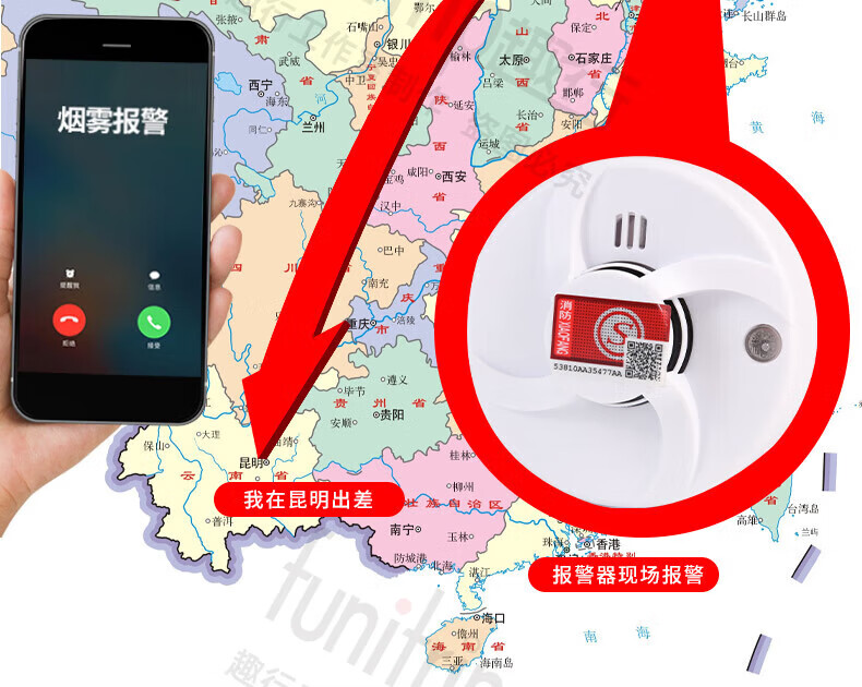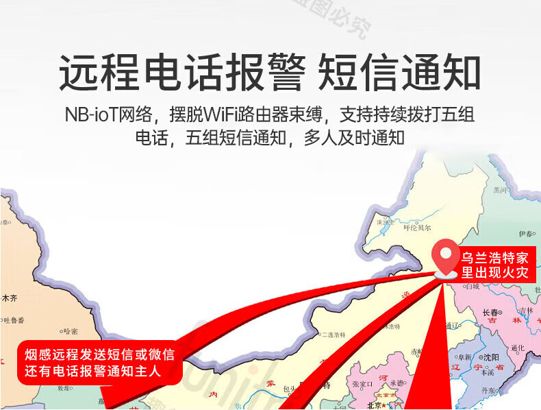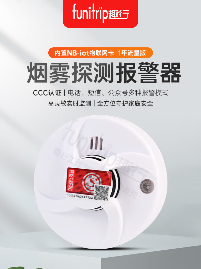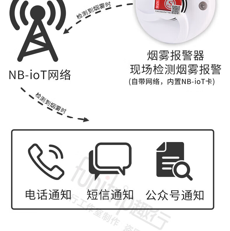Quxing Smart Smoke Alarm 3C Certified Fire Smoke Detector Phone SMS WeChat Alarm 1 Year Version NB-iot IoT Card