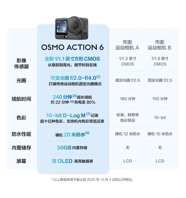 DJI Osmo Action 6 all-in-one flagship action camera variable aperture Vlog travel outdoor photography motorcycle mountain biking diving hiking handheld 4K camera