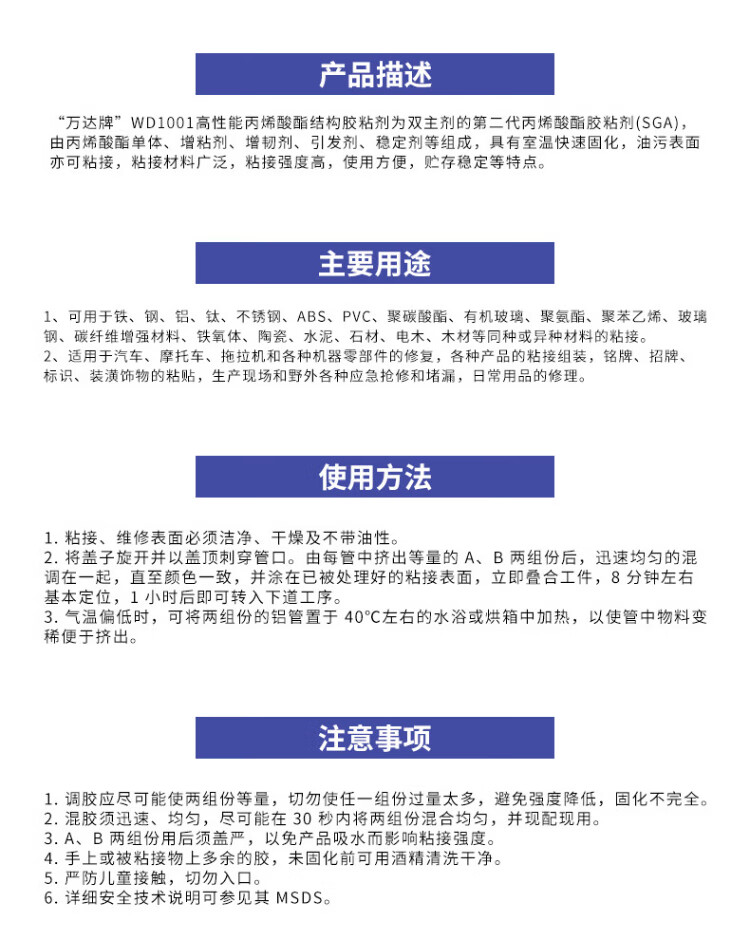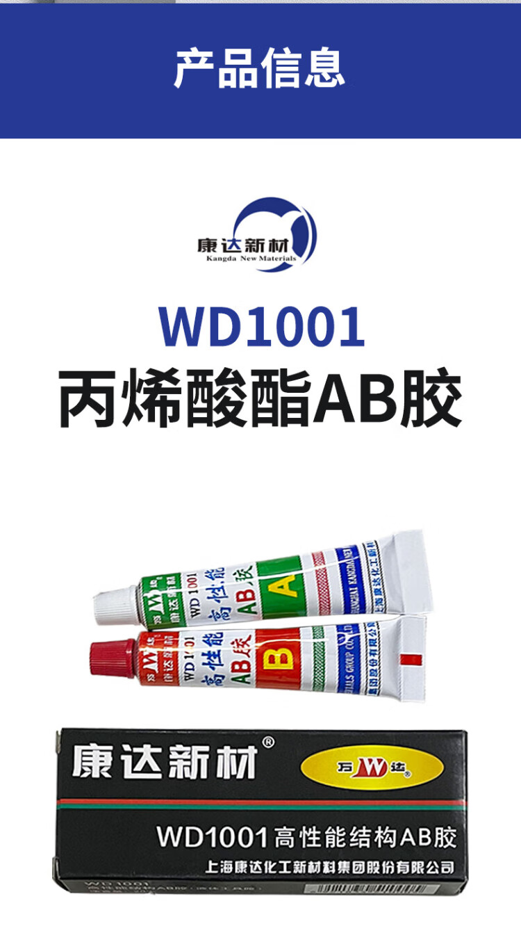 WD/Wanda high performance acrylic structural adhesive AB glue strong adhesive metal plastic ceramic wood WD1001 blue + red 10g + 10g 1 box
