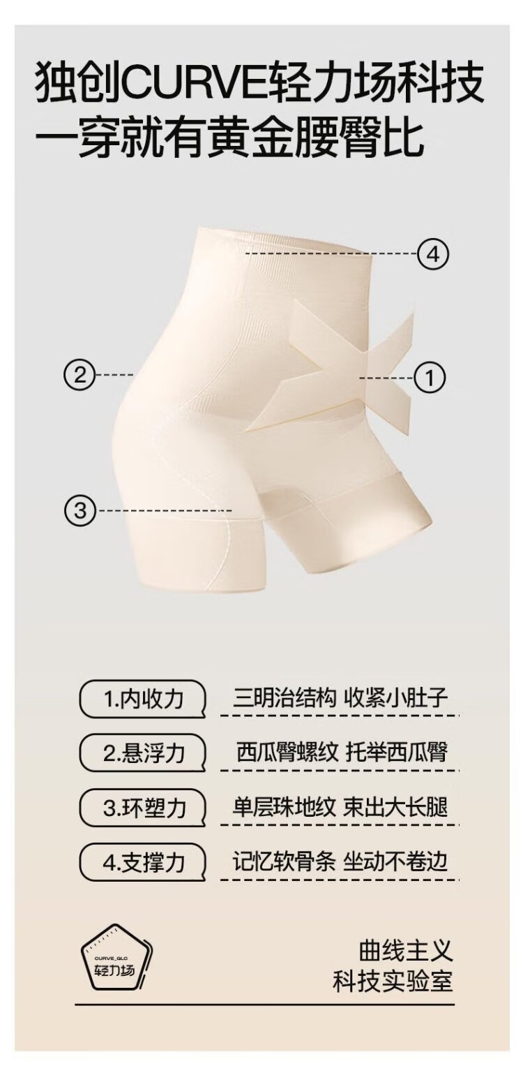 Curvature Clouds Belly Controlling Butt Lifting Pants Seamless Warm Underwear Women's Shaping Waist High Waist Bottoming Safety Pants Skin Color L