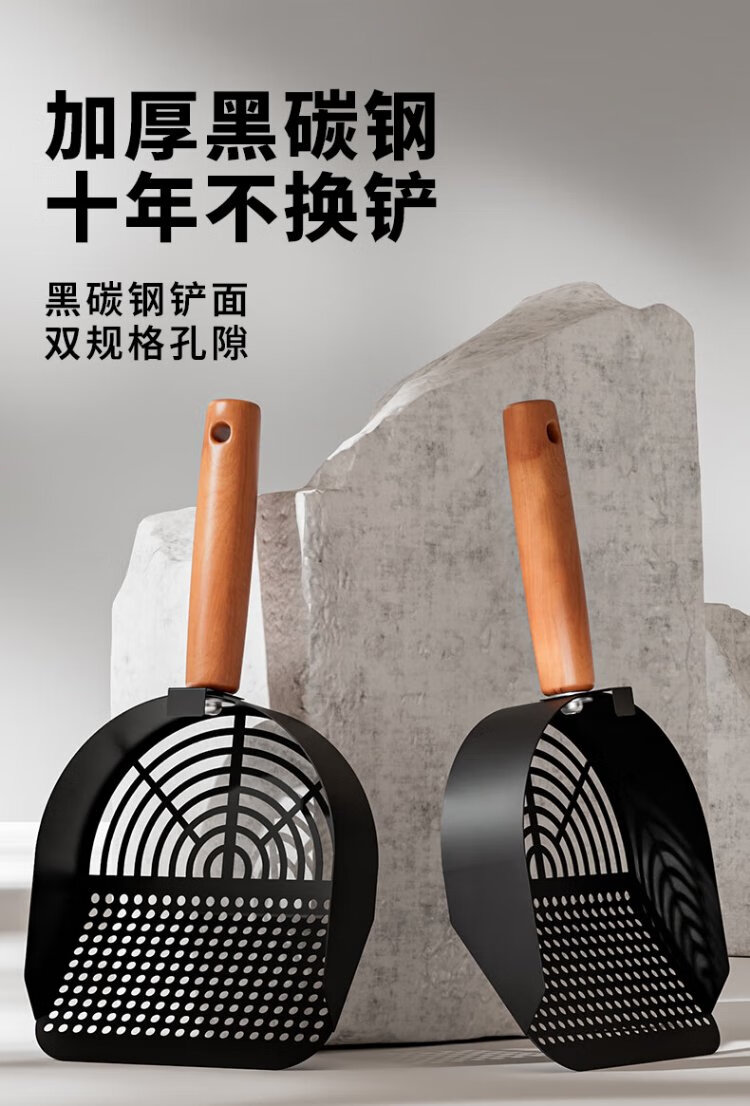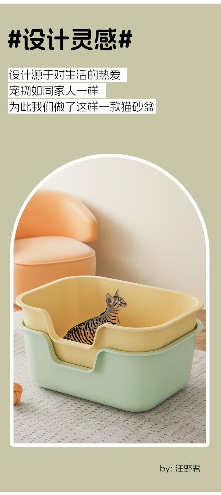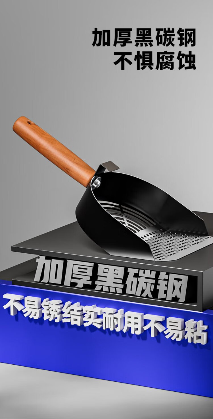 Wang Yejun Extra Large Open Cat Litter Box Yellow + Solid Wood Handle Carbon Steel Anti-Rust Cat Litter Scoop