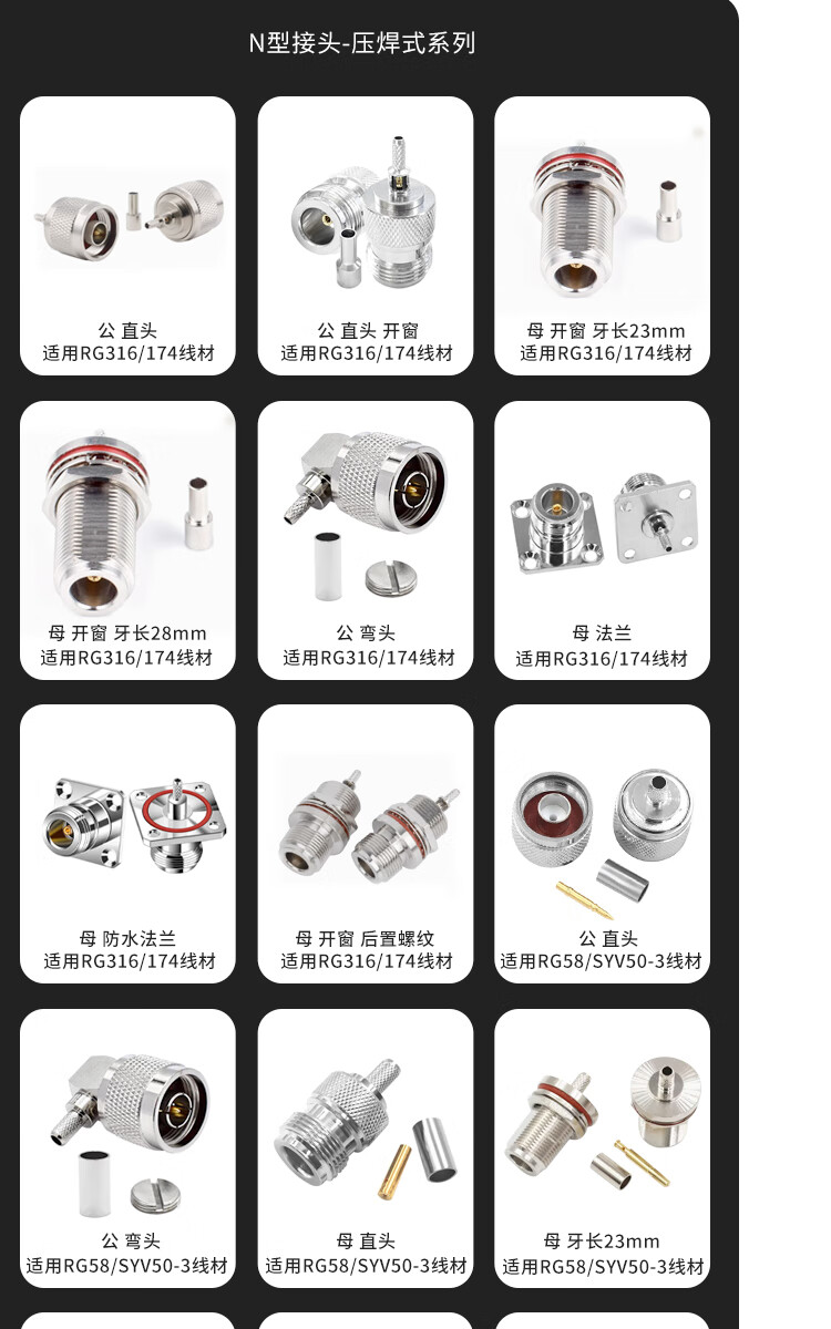 Jiudingxin N male connector RF coaxial feeder connector mounting type 50 ohm N-J--5 suitable for SYV50-5 wire N-type male straight head 1 piece N/J-50-5