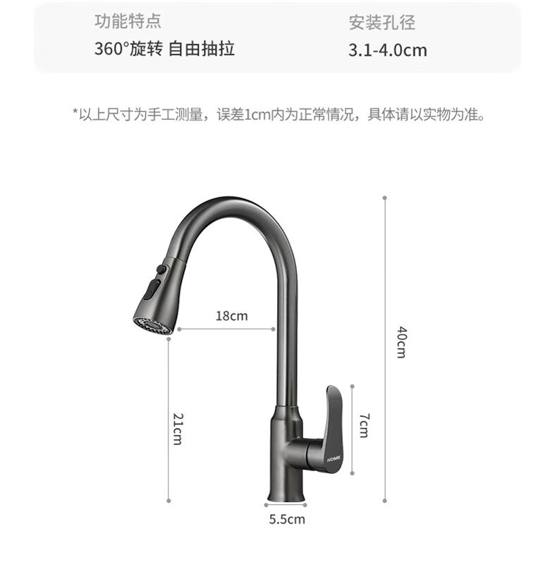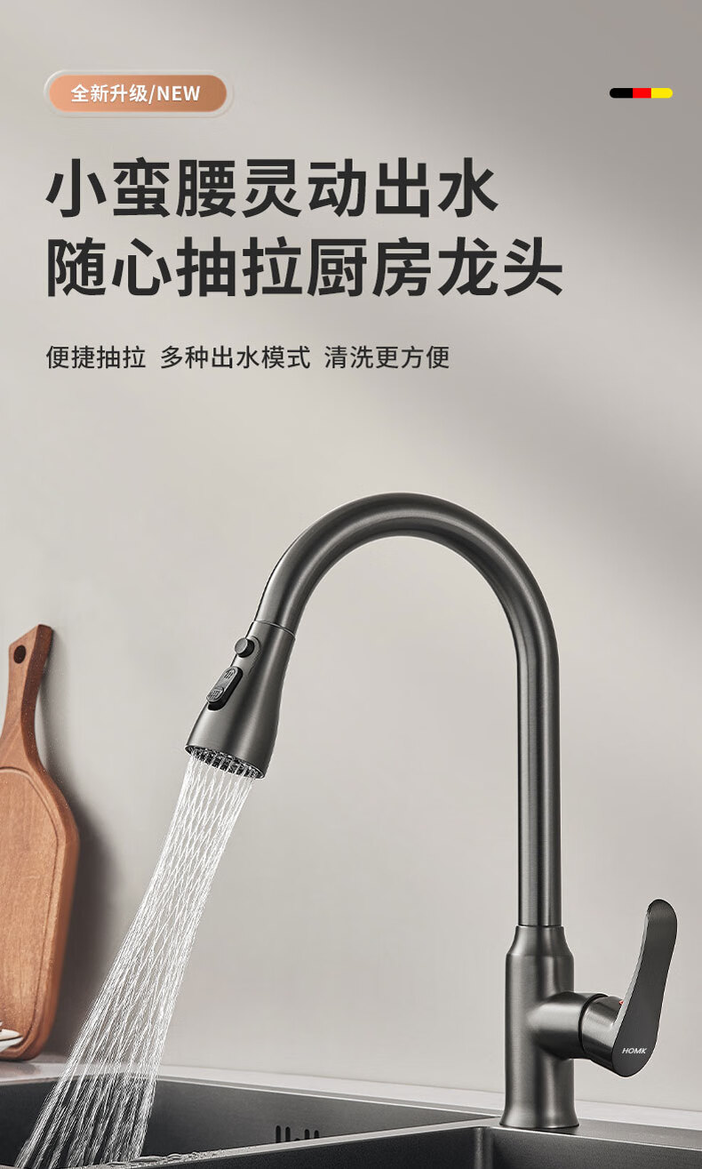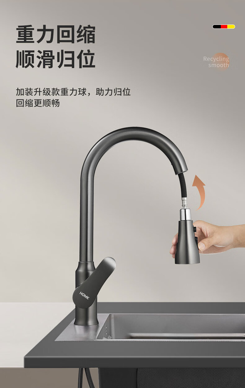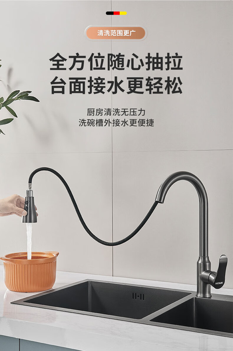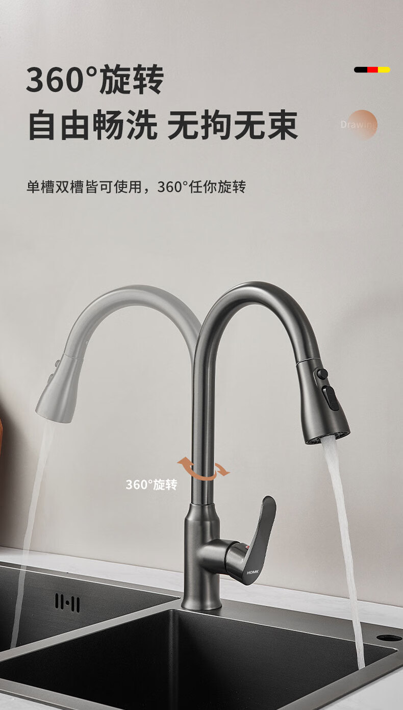 HOMK Germany all-copper kitchen faucet pull-out sink hot and cold vegetable basin telescopic faucet YG-6006