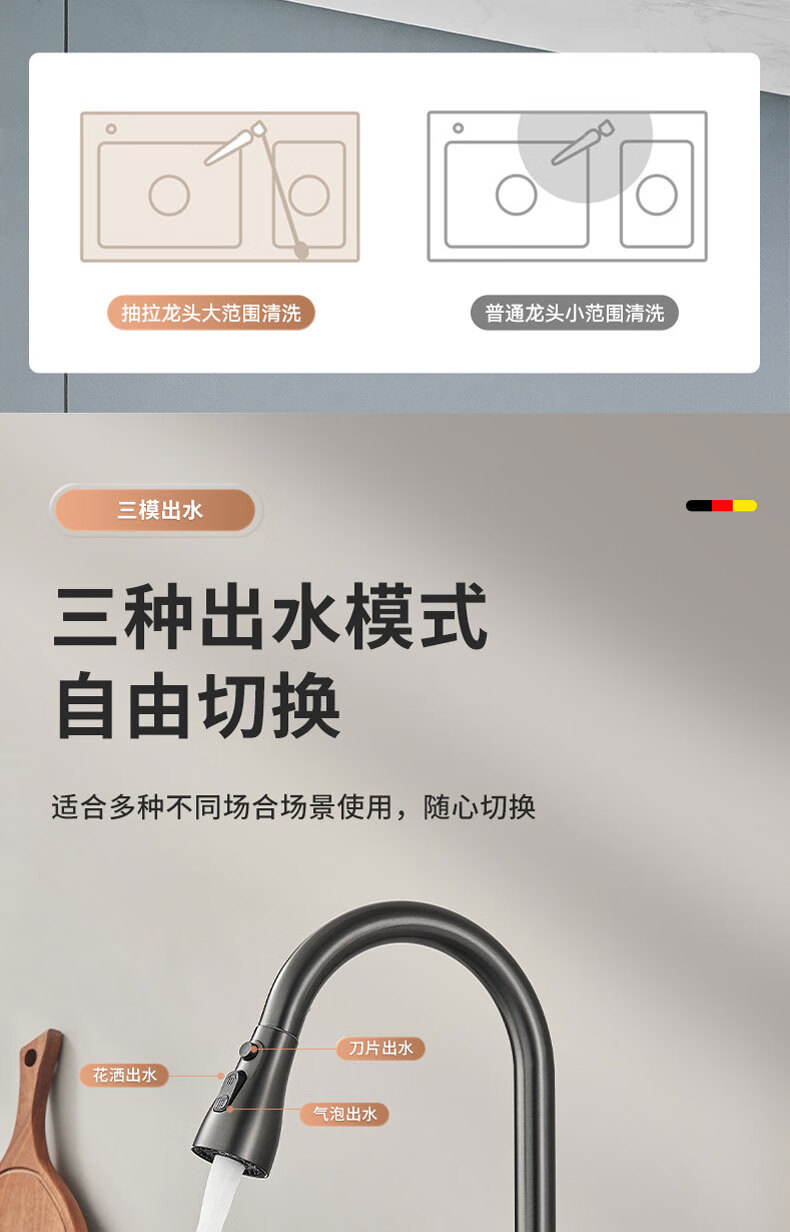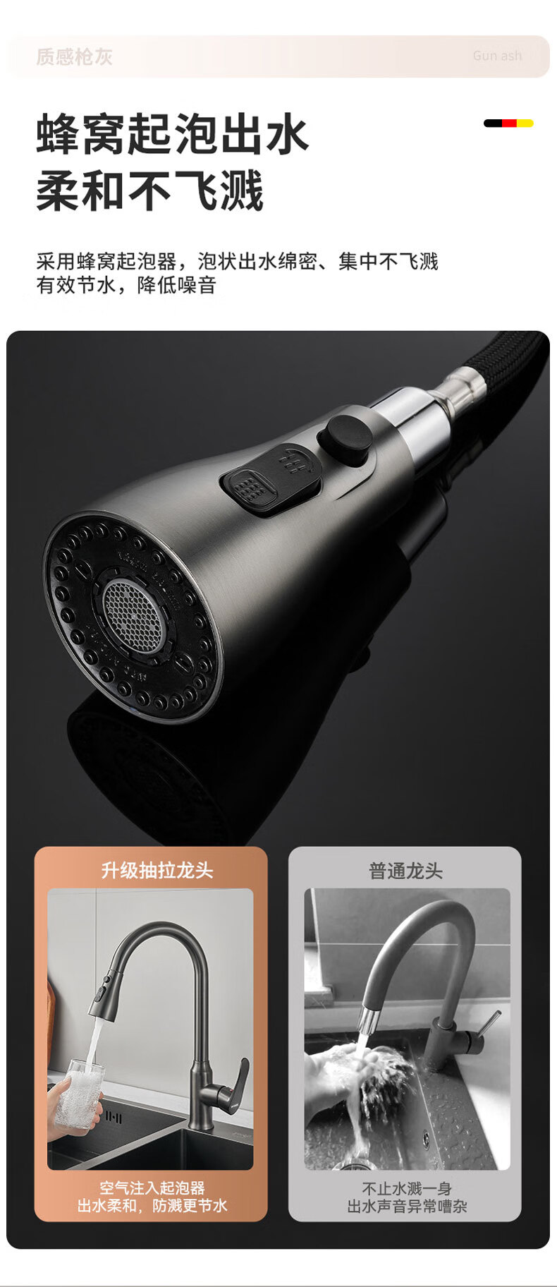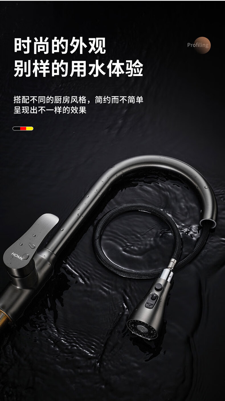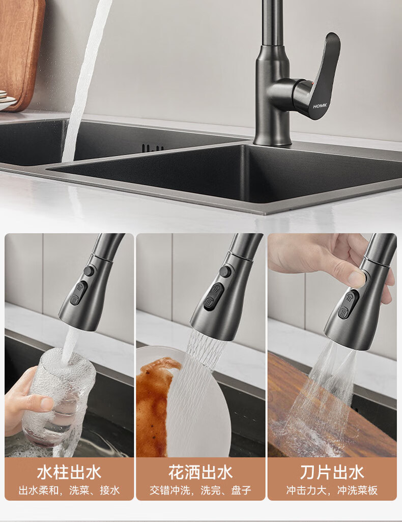 HOMK Germany all-copper kitchen faucet pull-out sink hot and cold vegetable basin telescopic faucet YG-6006