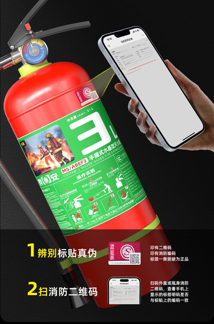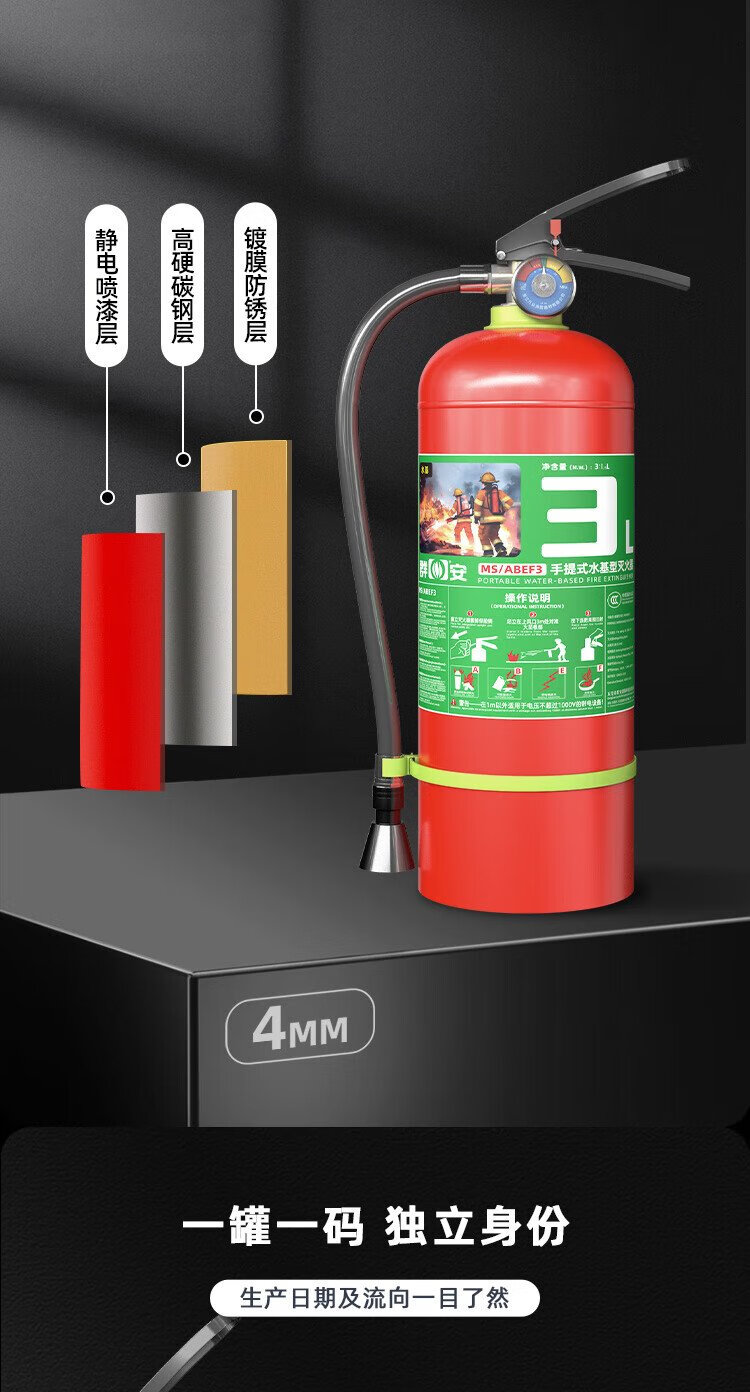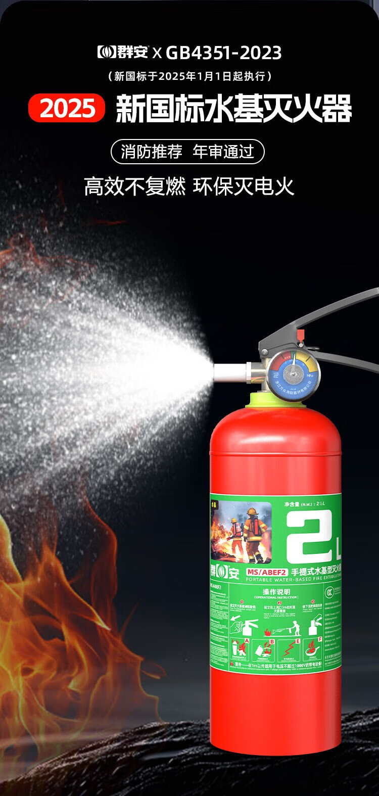 Qun'an 25-year new national standard water-based fire extinguisher 3L water mist fire extinguisher 3 liter lithium battery fire household home parking lot