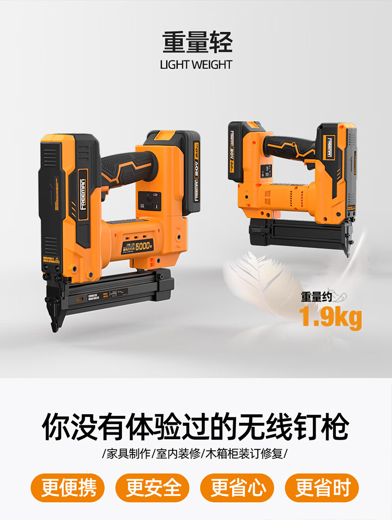 FREEMAN Fulimen lithium battery 30 straight nail gun rechargeable nail gun woodworking special fast nail gun electric nail machine