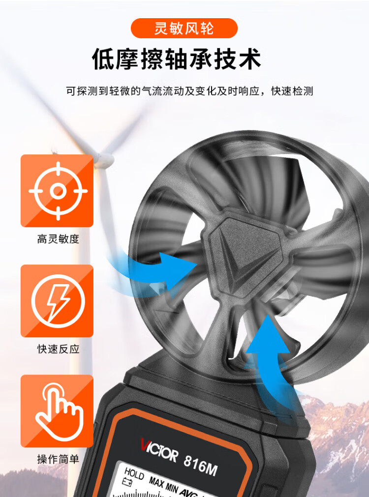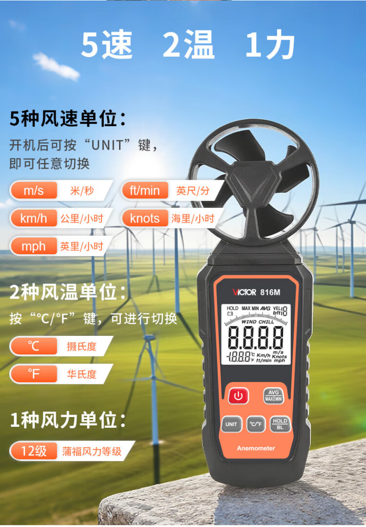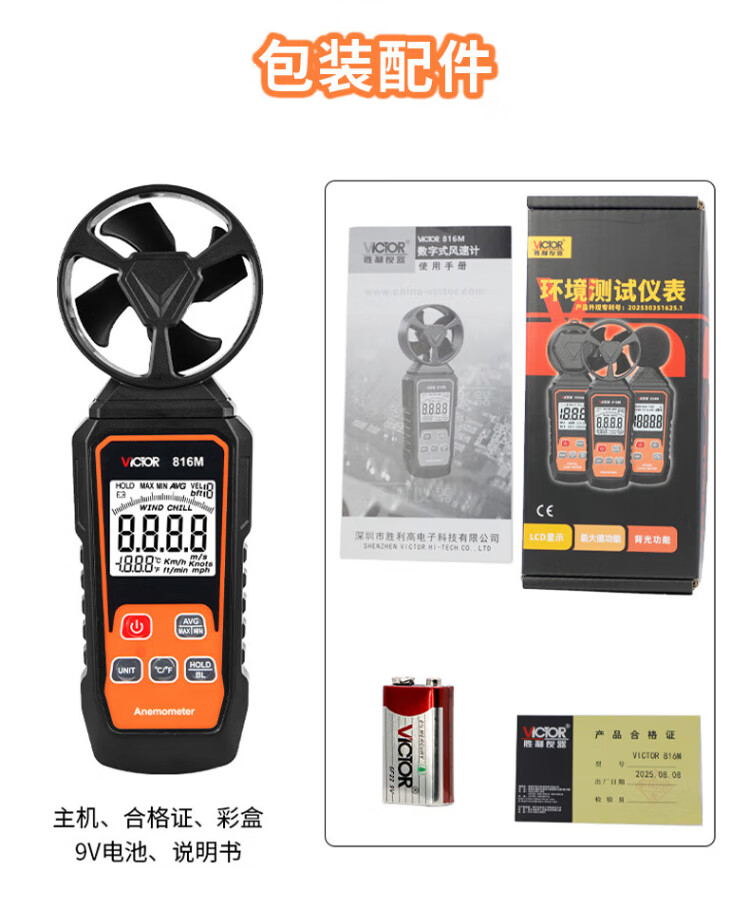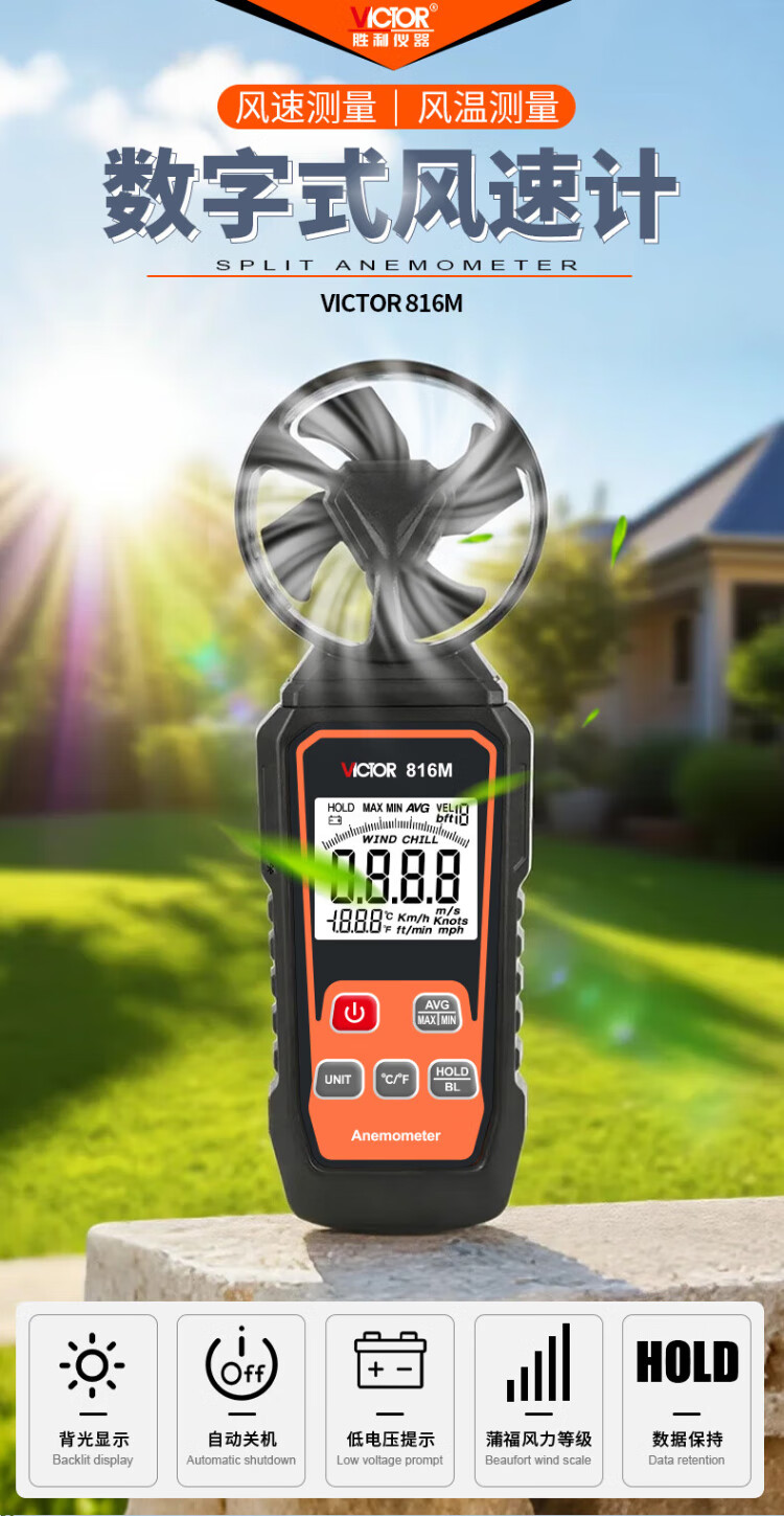 Victory Instrument (VICTOR) integrated anemometer anemometer hand-held air volume and speed measuring instrument wind meter VC816M