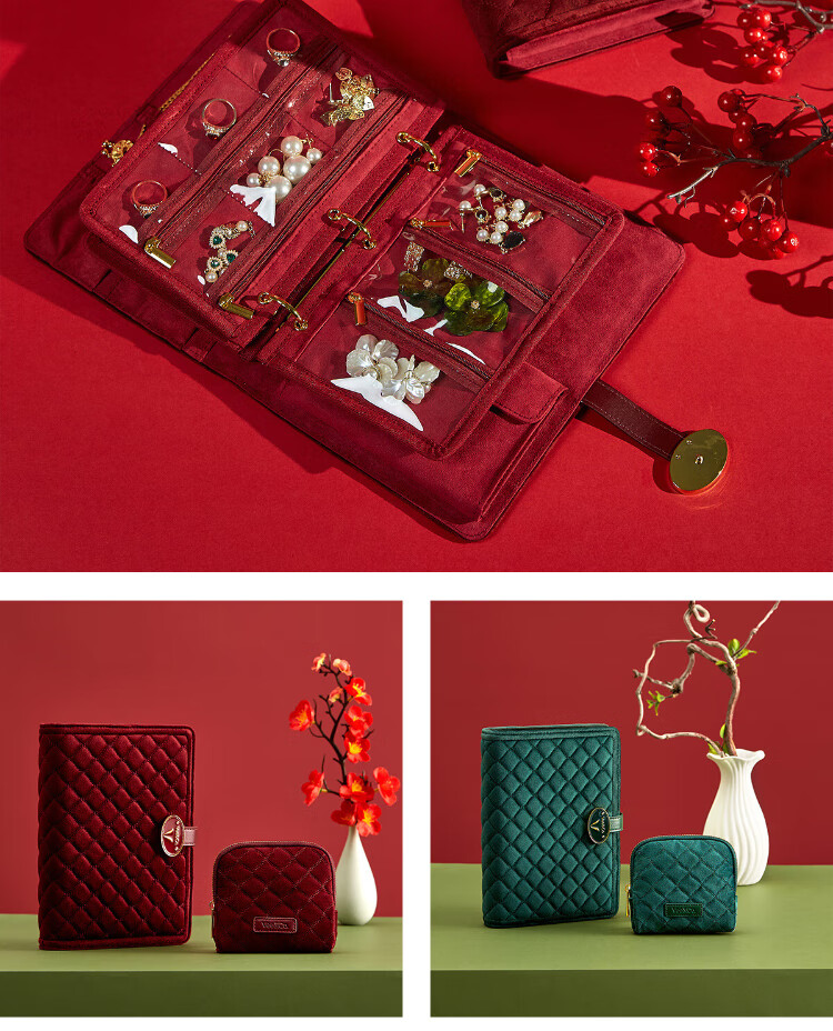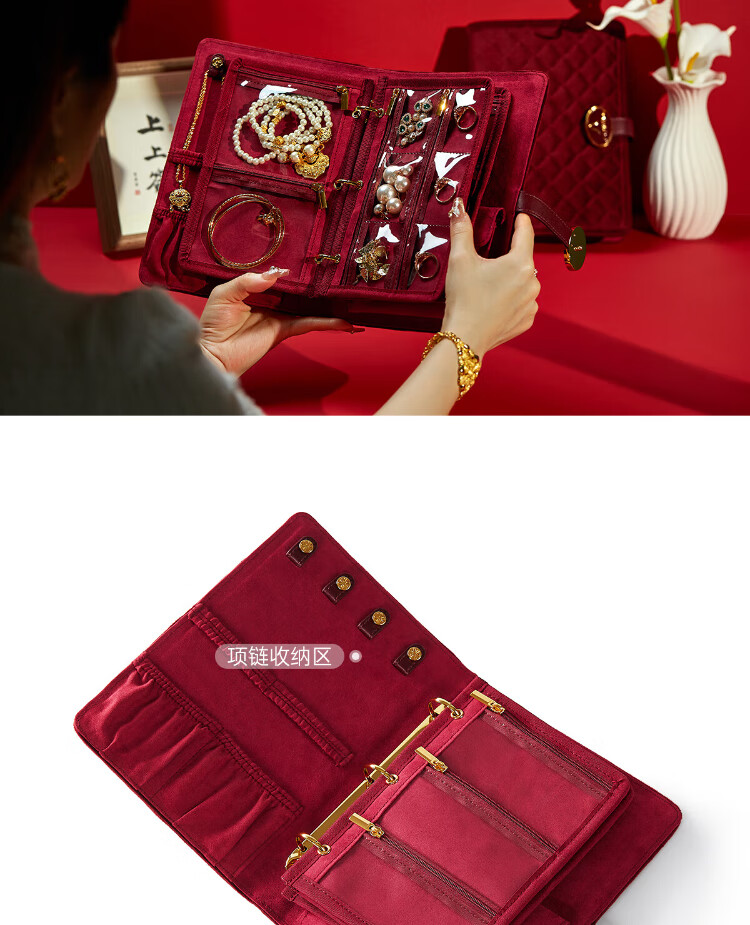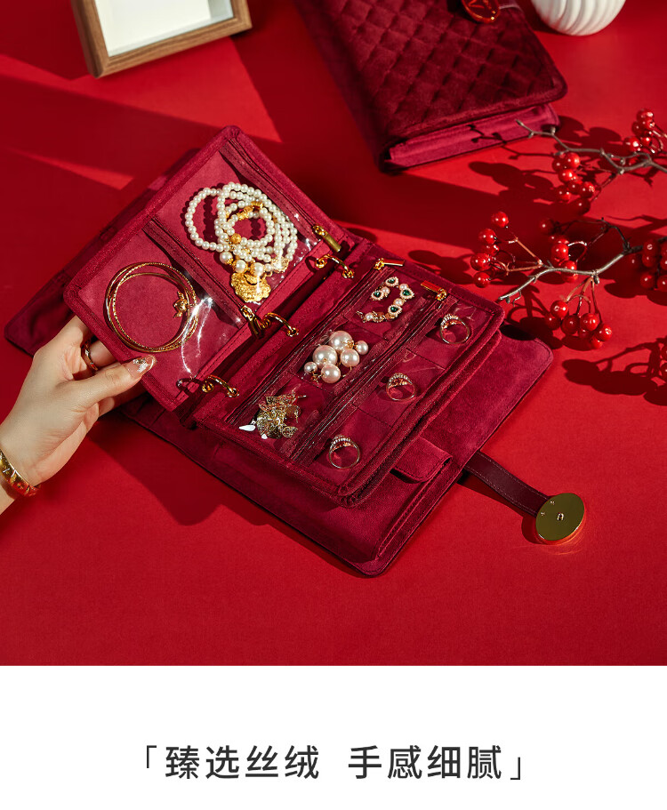Wei Yichen high-end velvet portable storage bag gold necklace ring earrings bracelet jewelry box birthday gift
