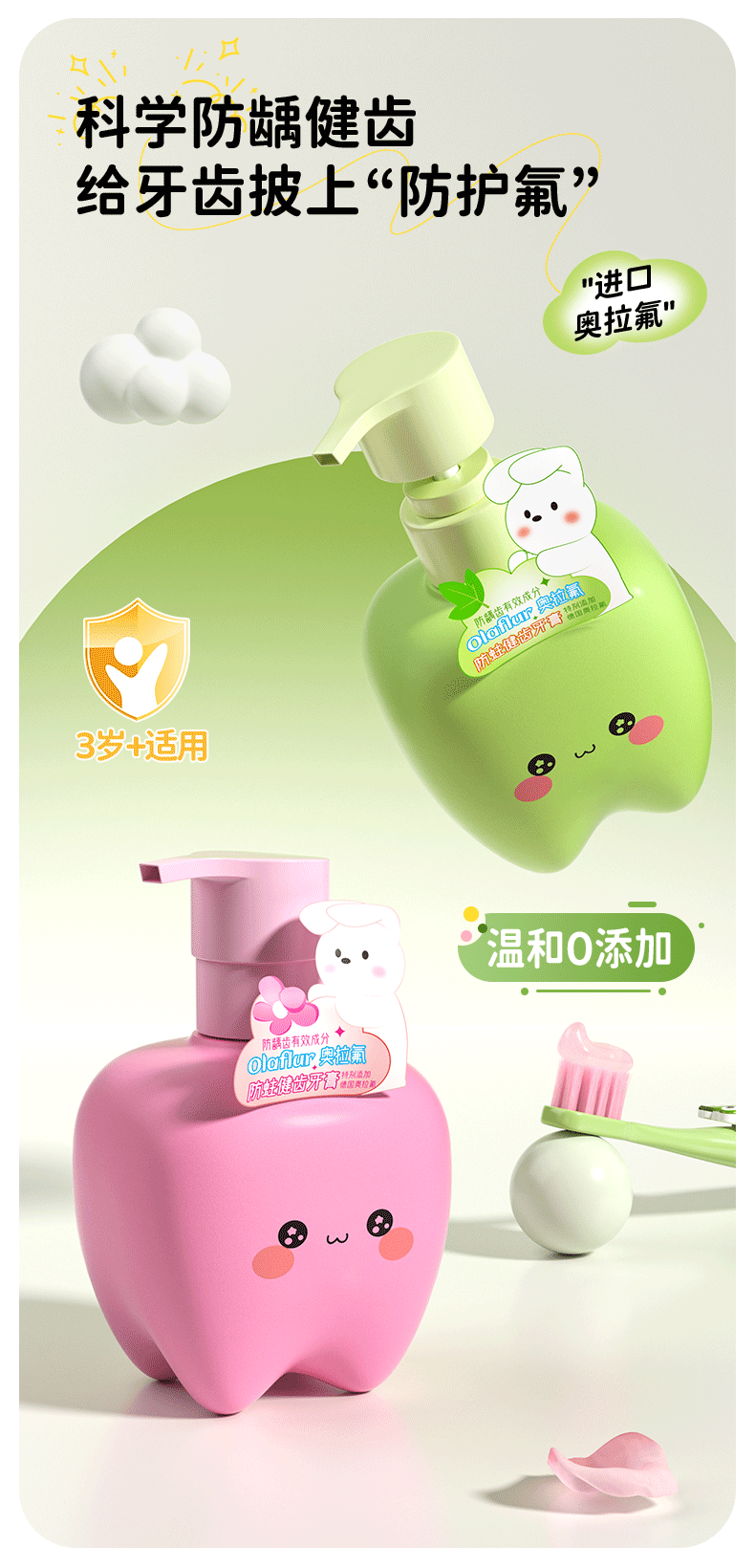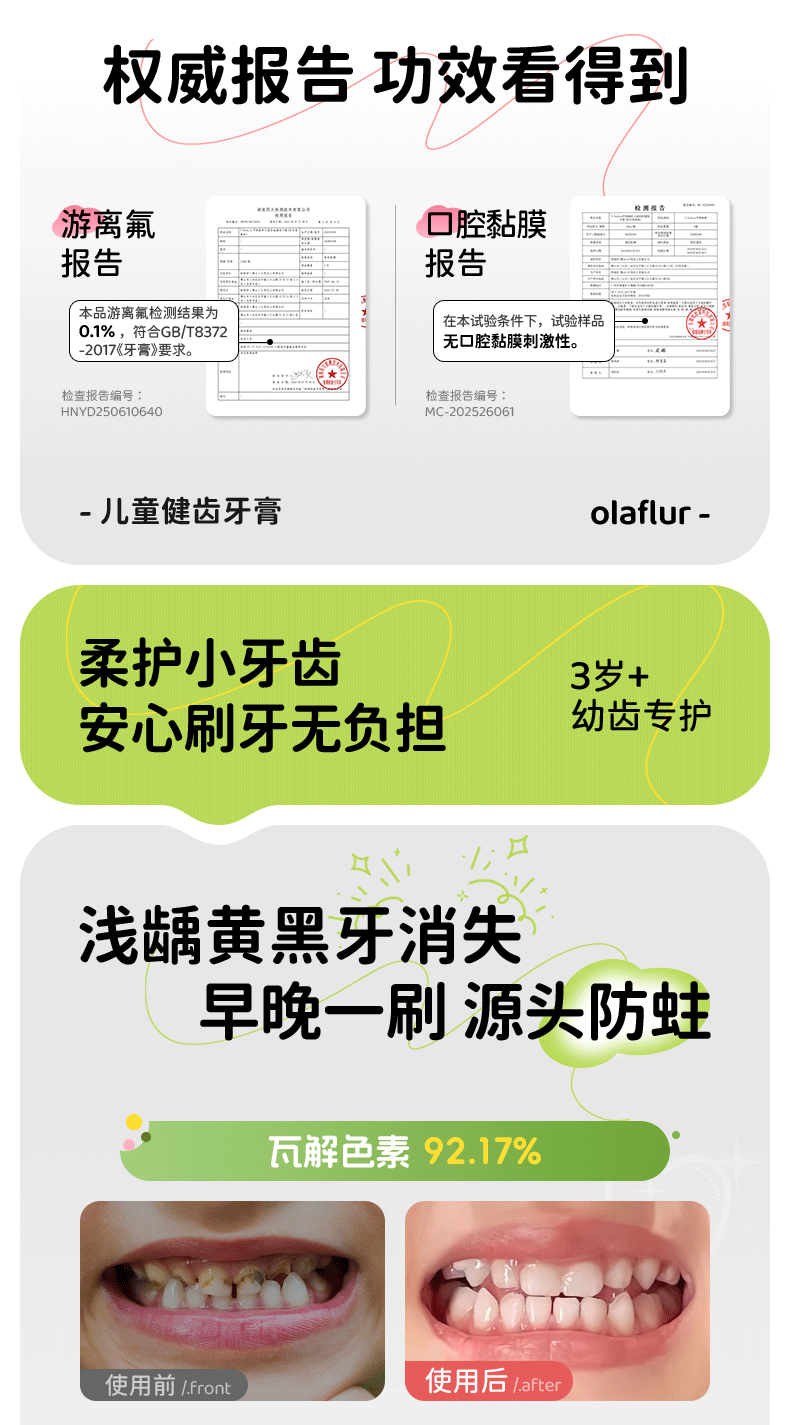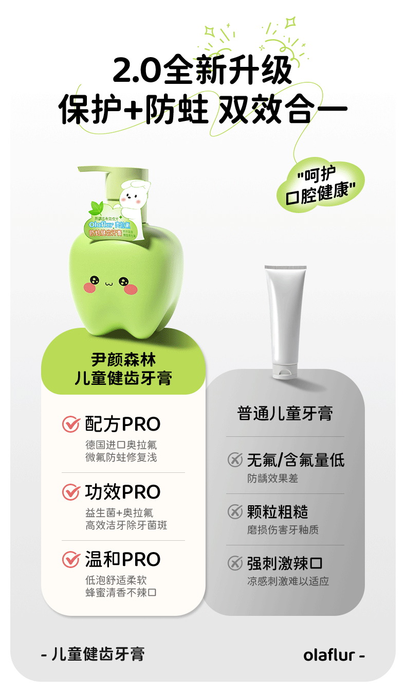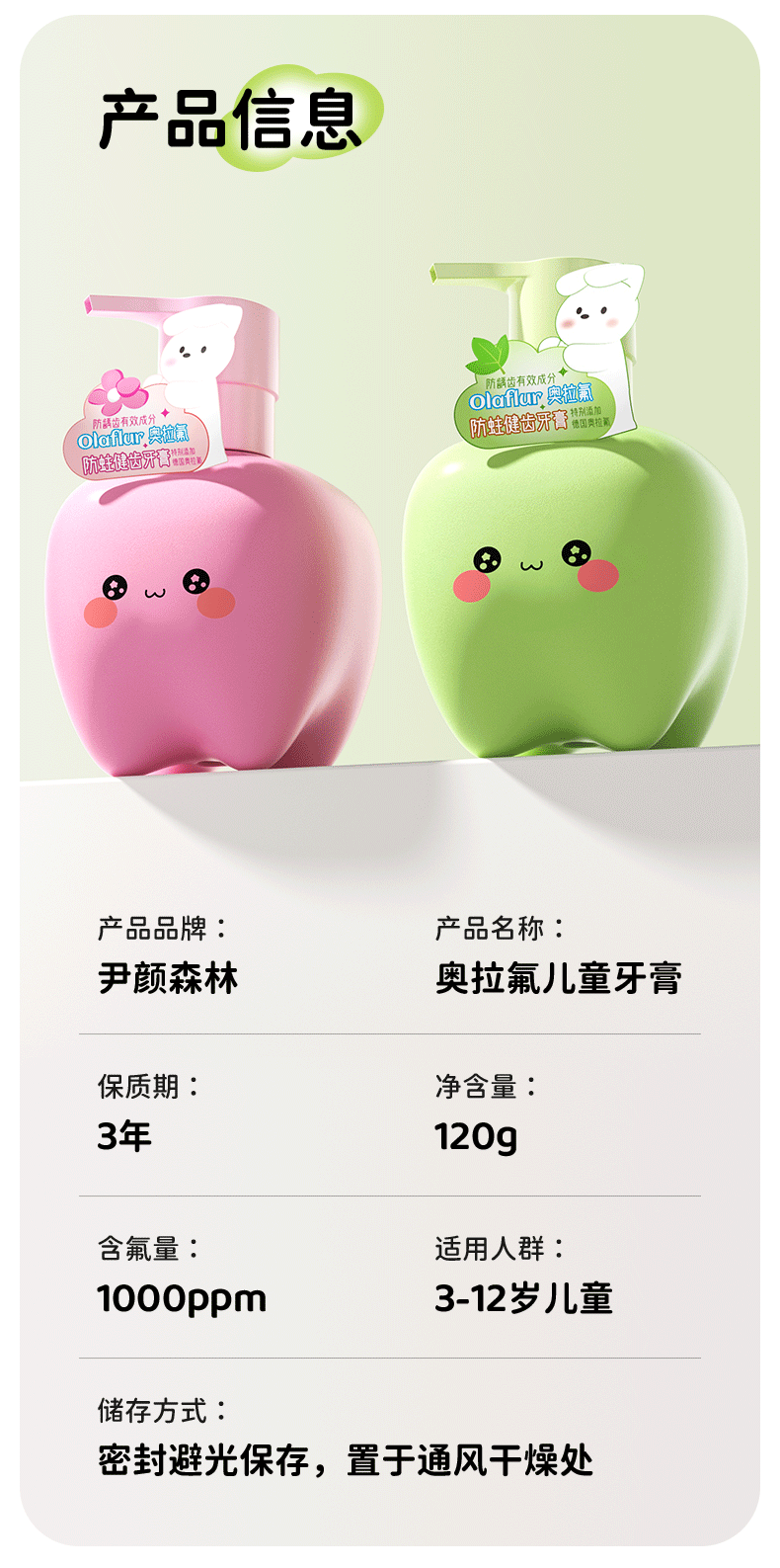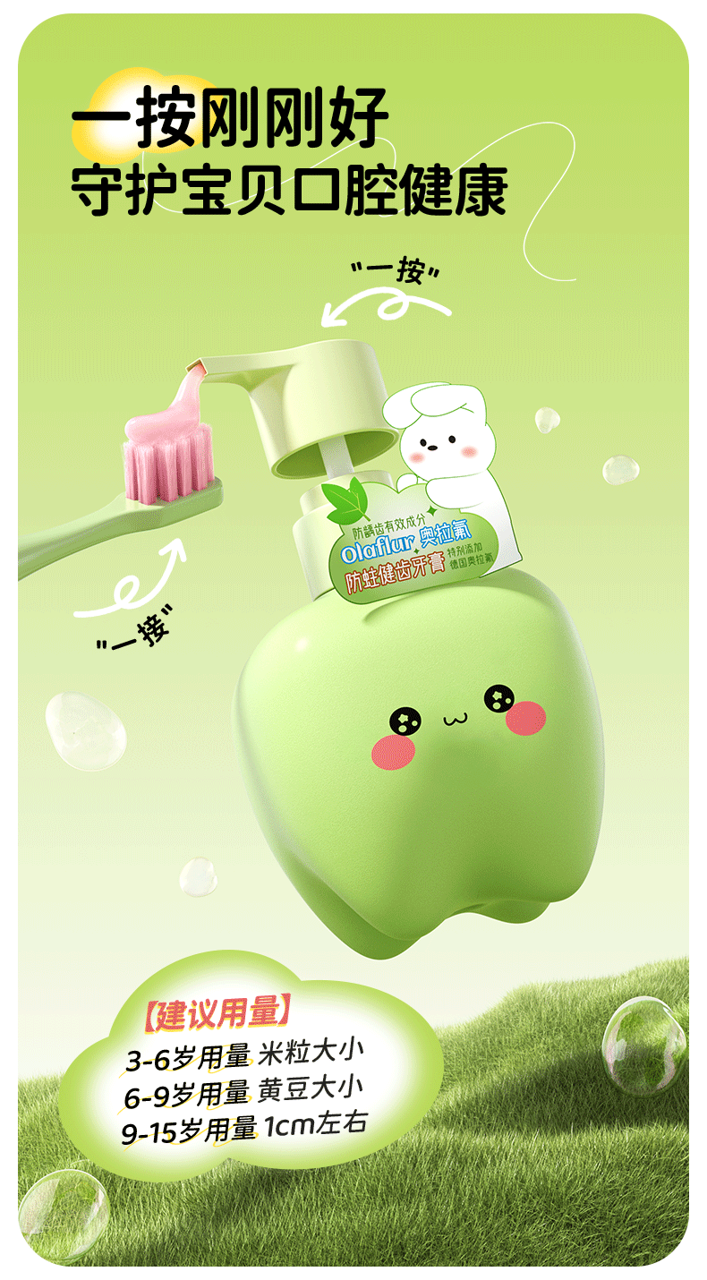 Yinyan Forest Children's Toothpaste Ora Fluoride 6-12 years old fluoride-containing tooth replacement period special 3-6 anti-moth green flavor press large capacity