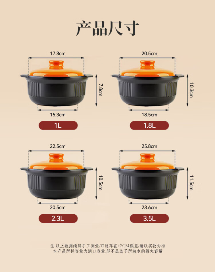Jin sister-in-law ceramic casserole household soup stew pot porridge special gas stove suitable for dry pot chicken clay pot rice 2L