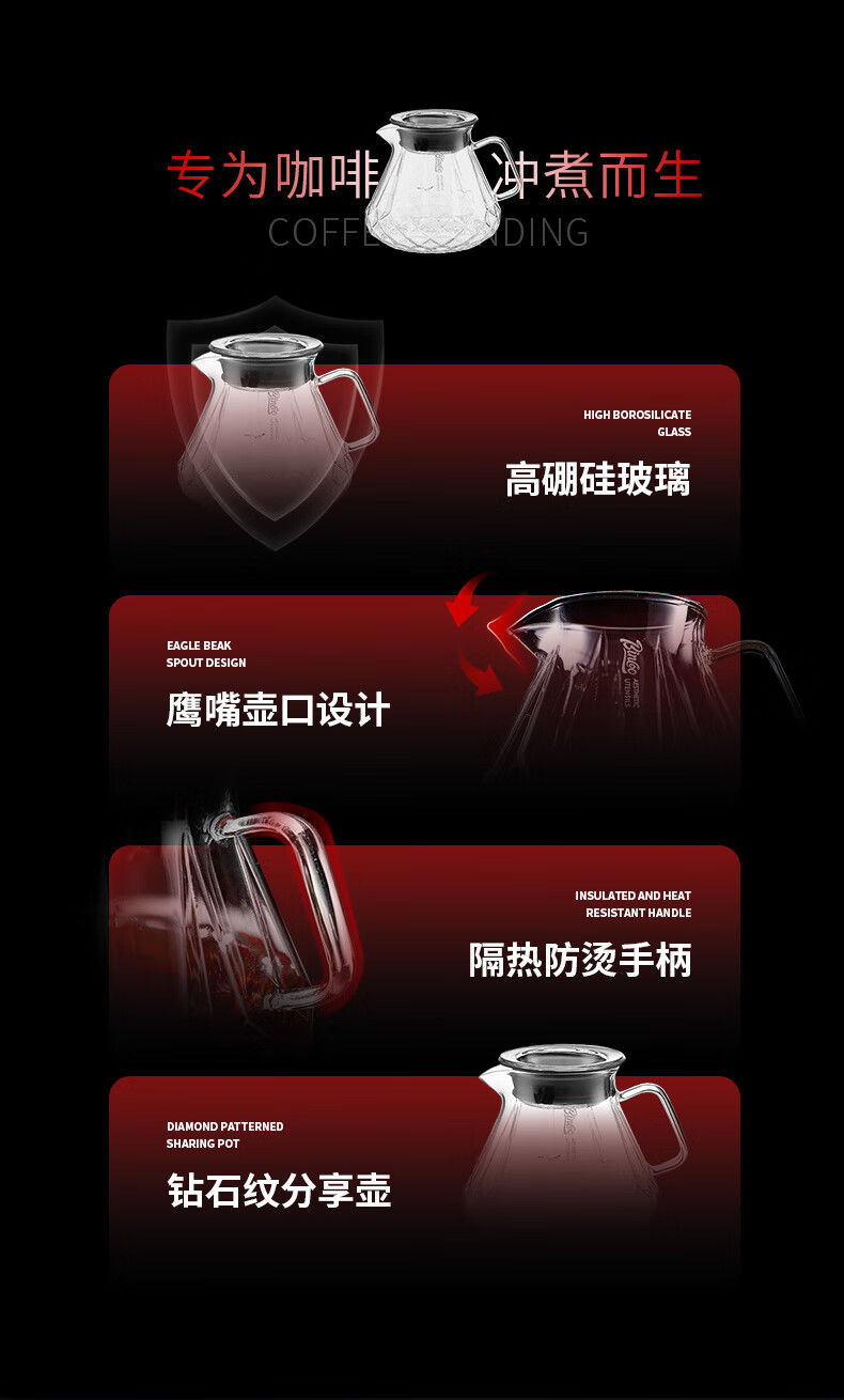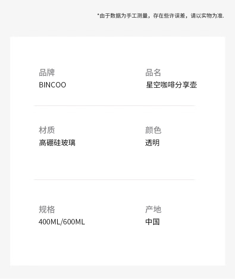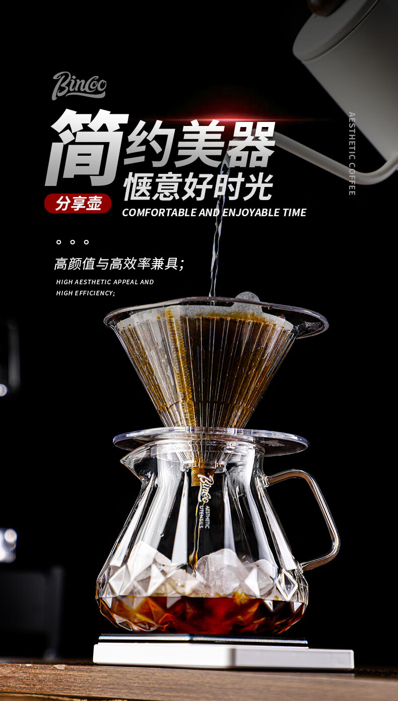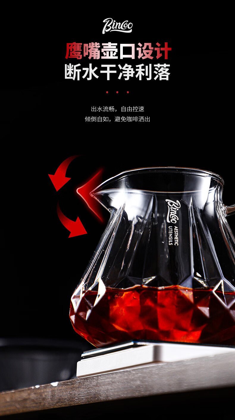 Bincoo glass hand brewed coffee pot cooled iced American tasting cup cold brew pot hand brewed sharing pot