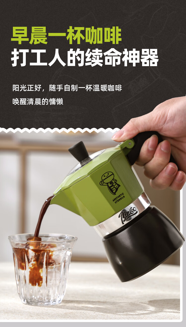 Bincoo double valve moka pot multi-person household small espresso brewing coffee pot espresso machine coffee utensils