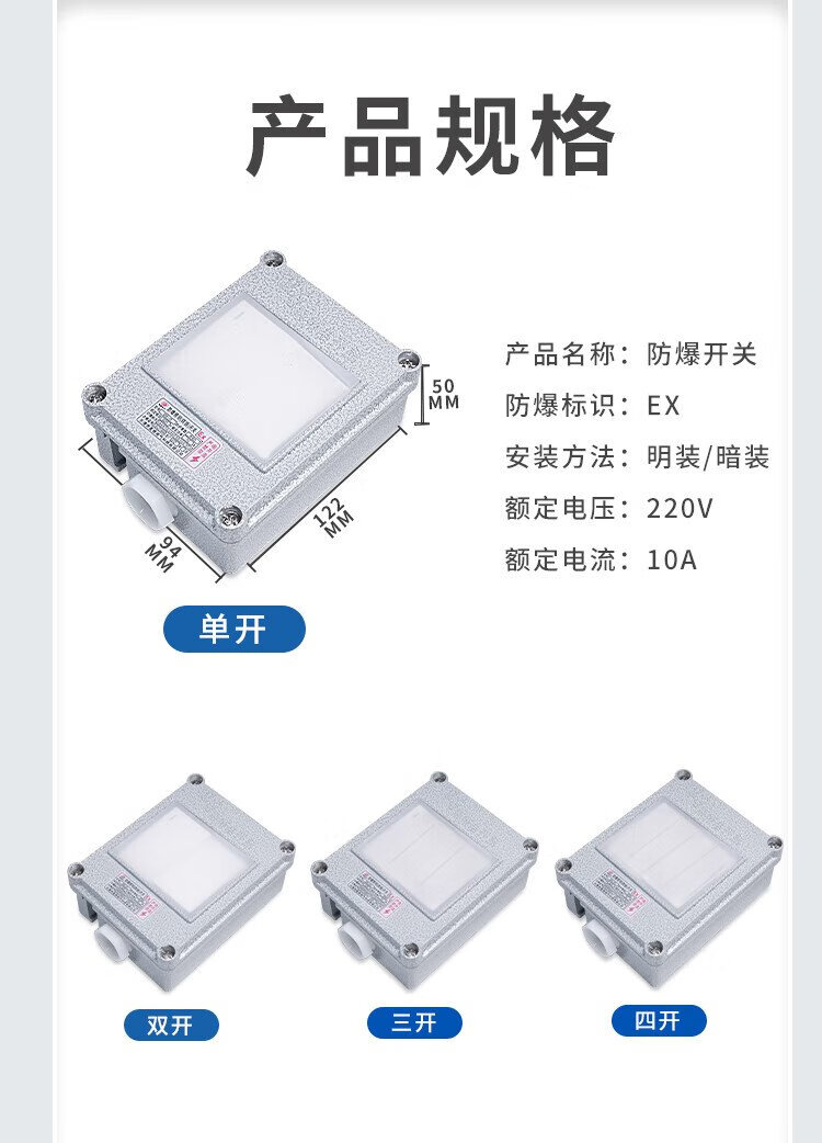 Jingzhu EX logo explosion-proof wall switch 220V metal switch exposed and concealed 86 type 10A industrial waterproof and dustproof indoor and outdoor Jingcang Sufa one-open single control