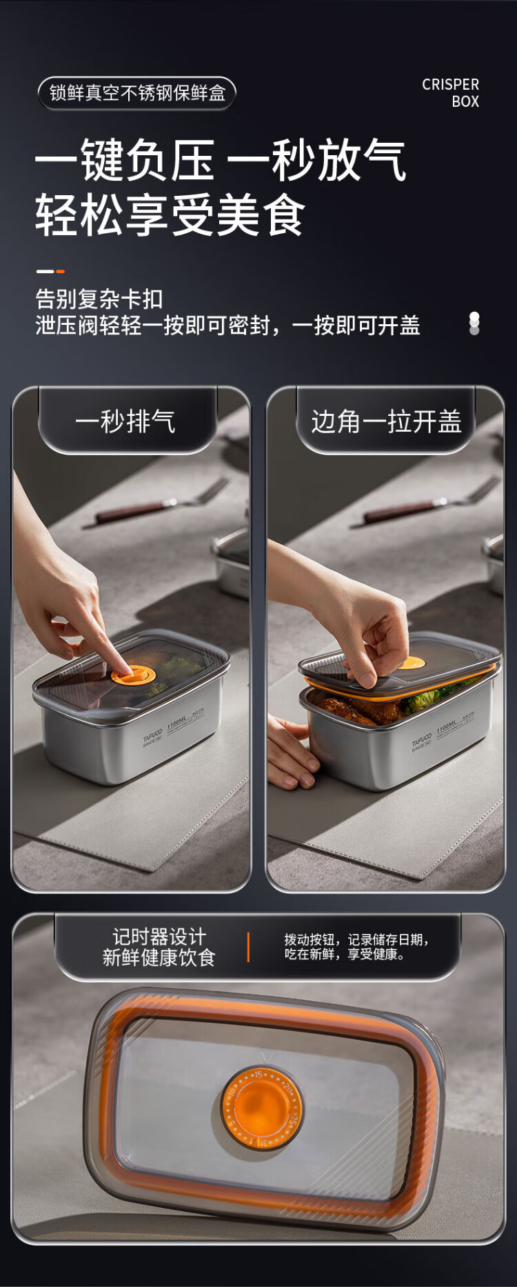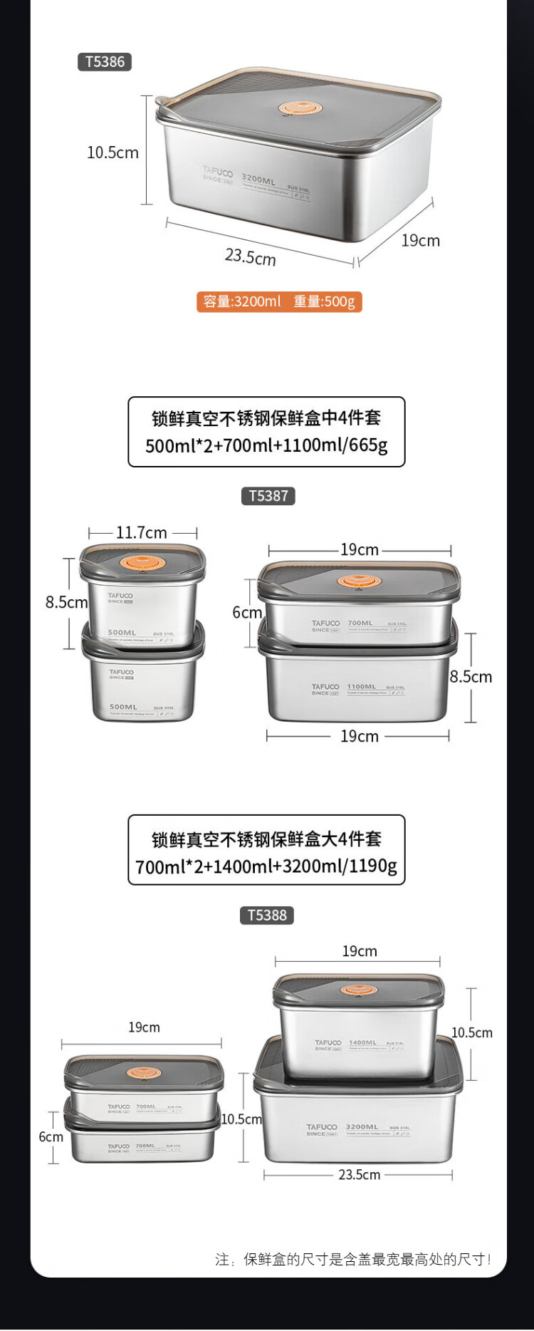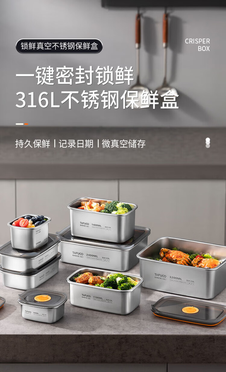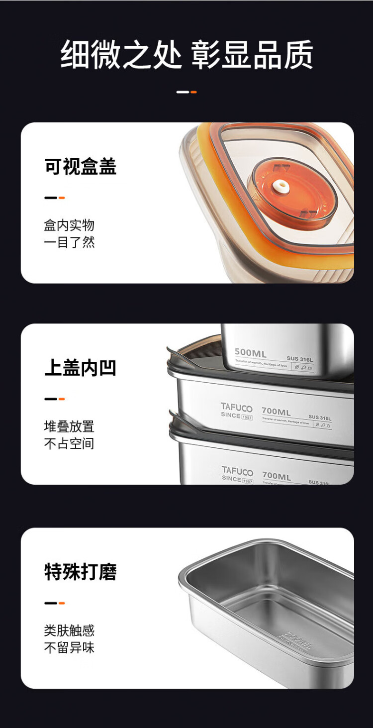 TAFUCO stainless steel crisper 316L food grade lunch box sealed lunch box storage lunch box refrigerator packaging with lid T5381