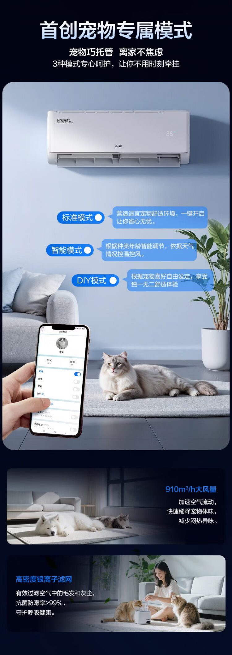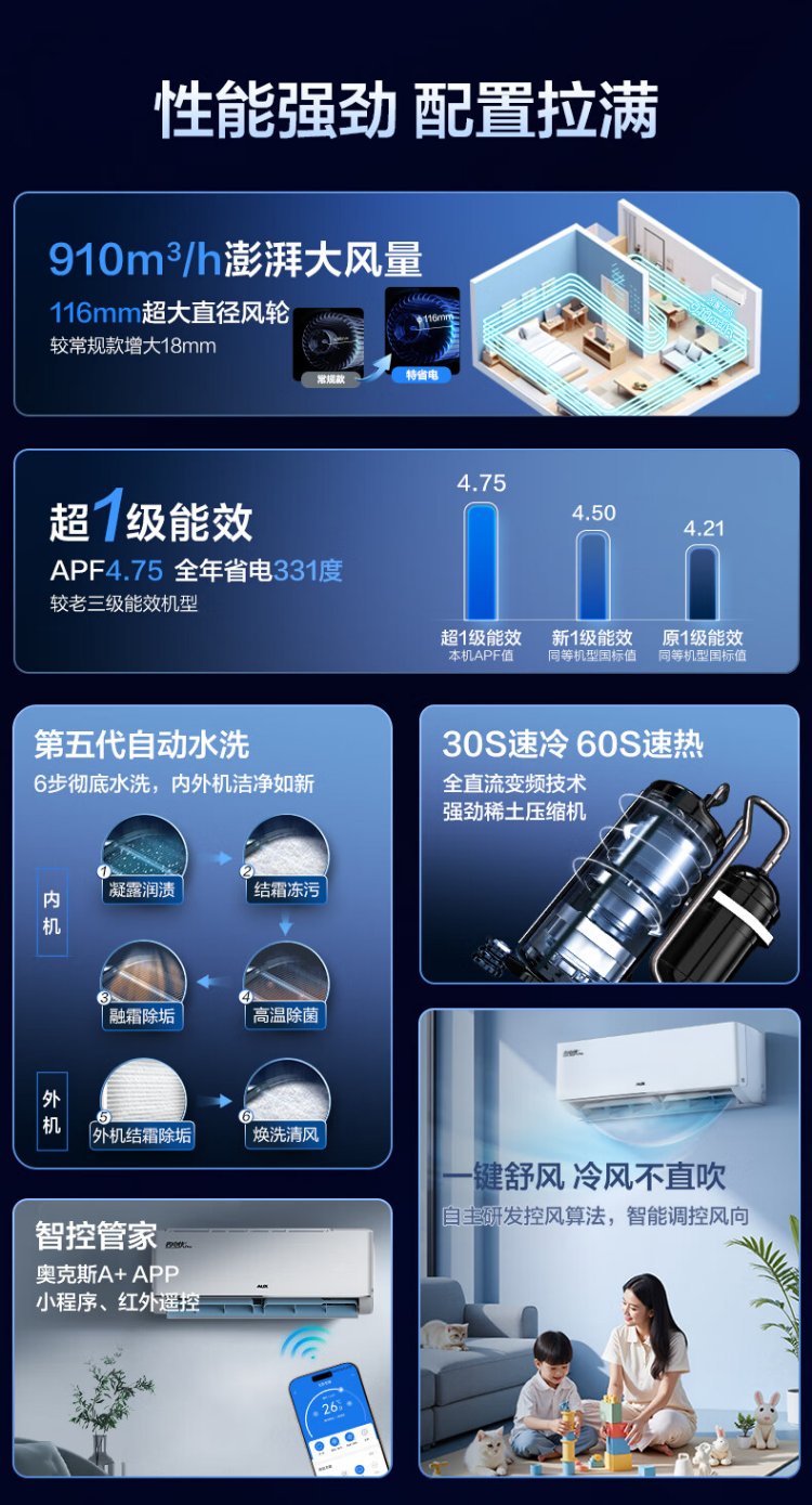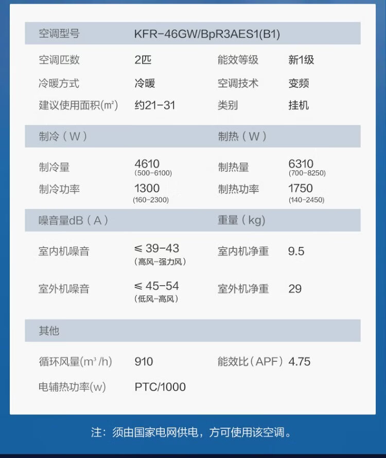 Oaks air conditioner, Power Saver Pro 2 hp, new level energy efficiency inverter, living room Wifi intelligent control hang-up, copper tube air conditioner, national subsidy KFR-46GW/BpR3AES1(B1)