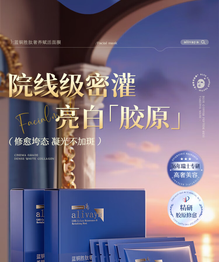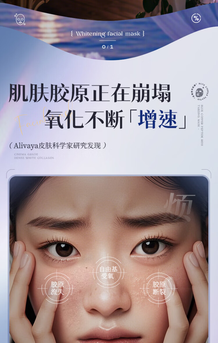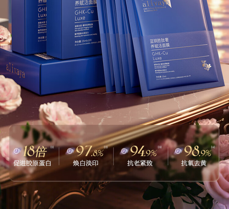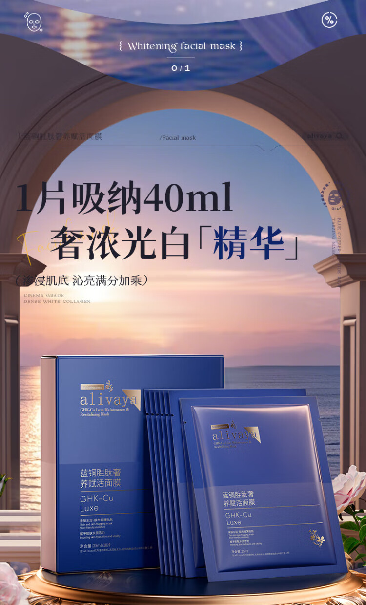 ALIVAYA Blue Copper Peptide Caviar Mask 10 pieces/box Firming, anti-wrinkle, deeply hydrating, brightening skin tone