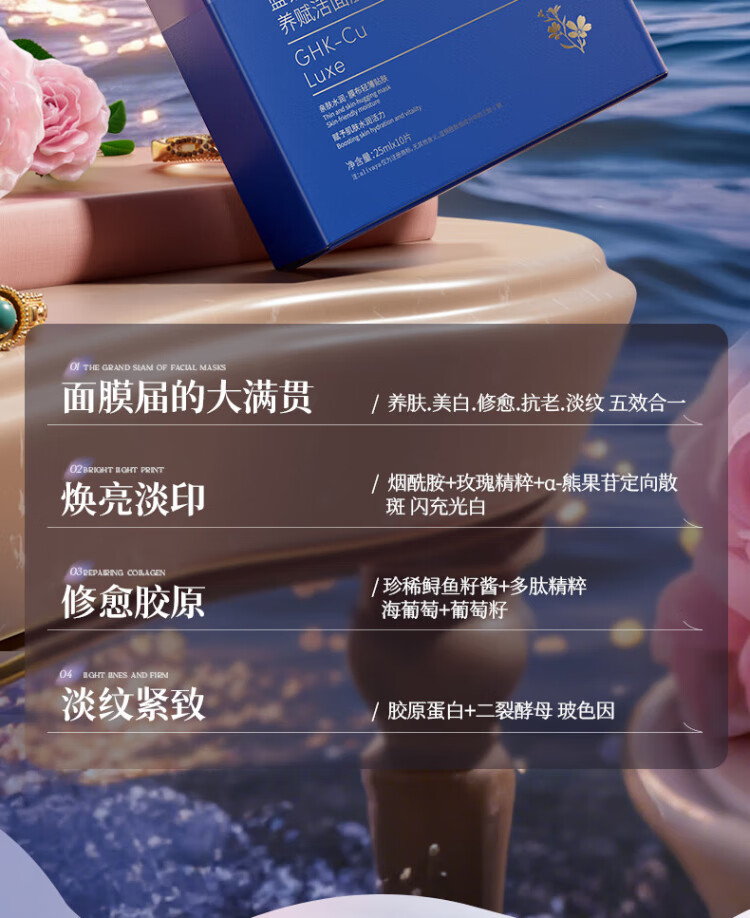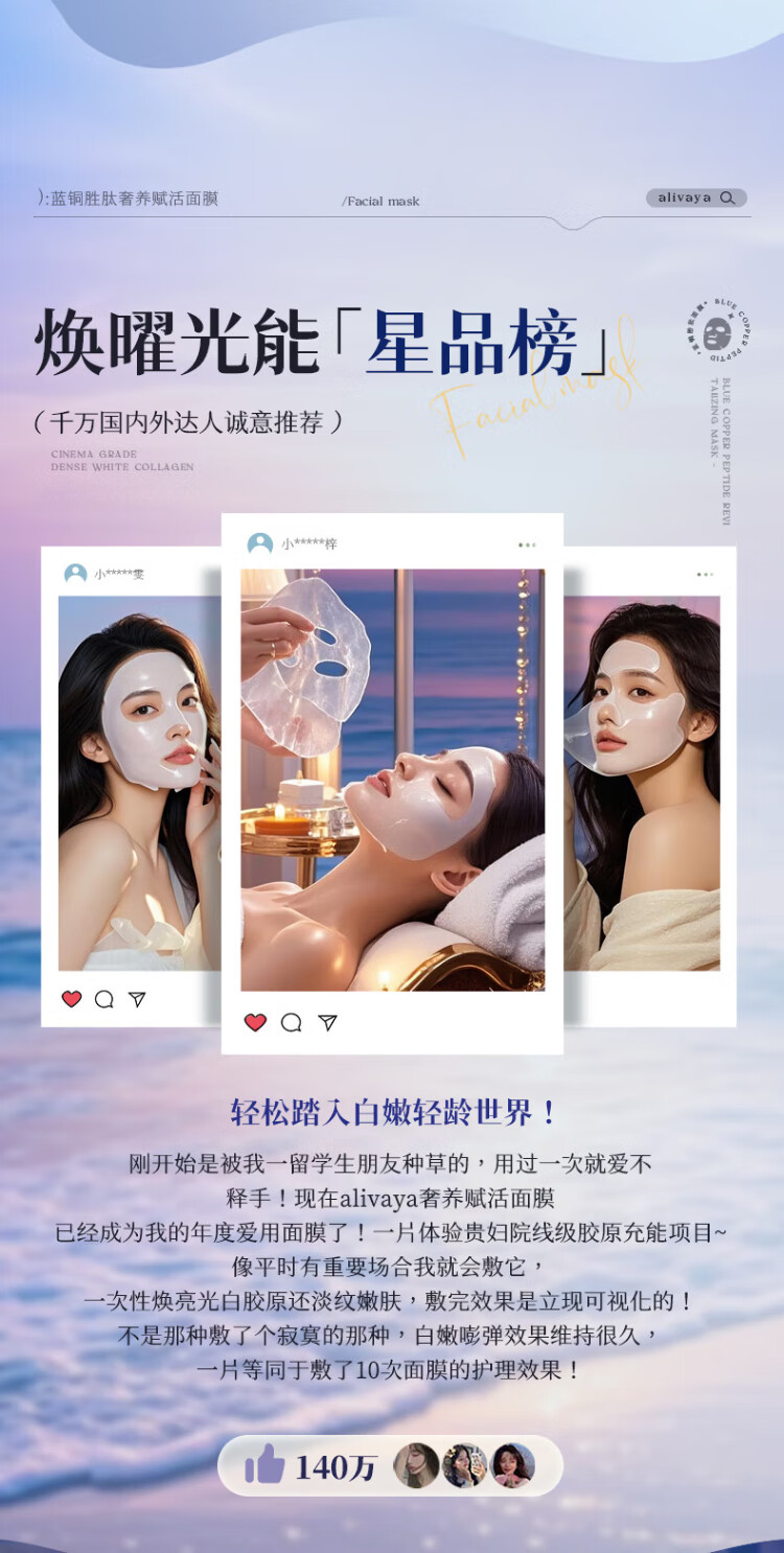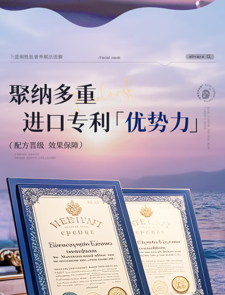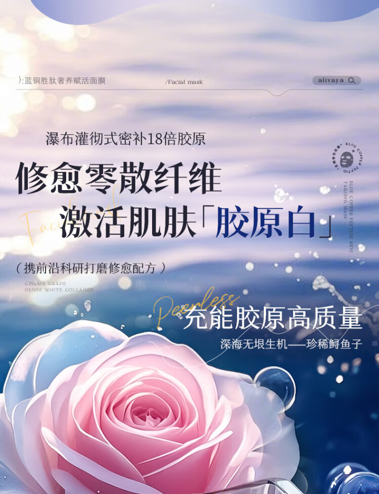 ALIVAYA Blue Copper Peptide Caviar Mask 10 pieces/box Firming, anti-wrinkle, deeply hydrating, brightening skin tone