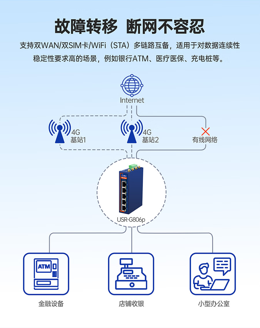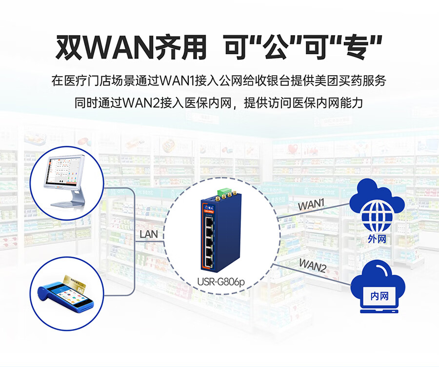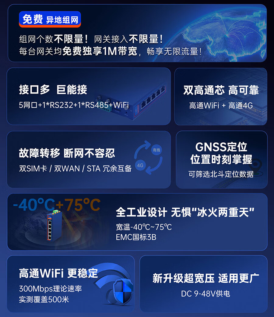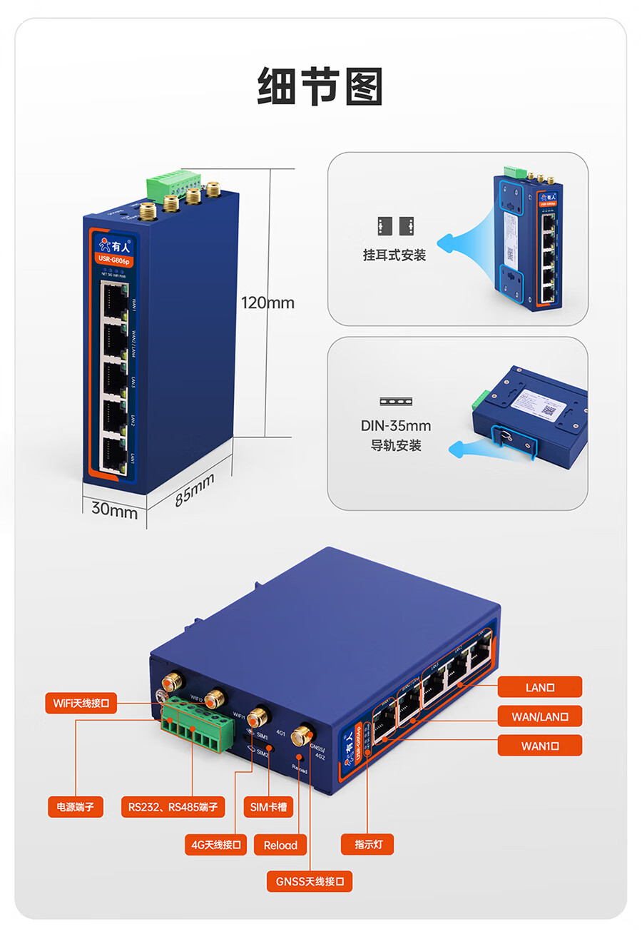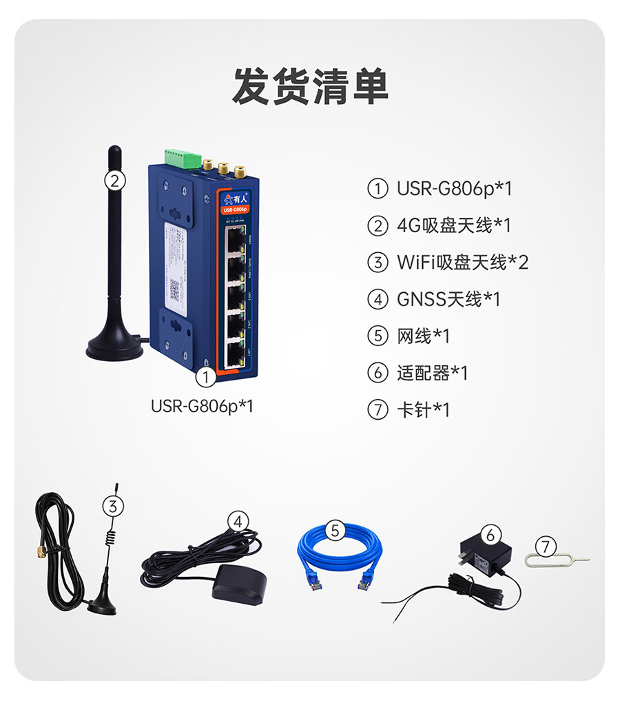 Renmin Internet of Things enhanced 4G industrial router remote networking dual Qualcomm core 5 network ports dual serial ports dual SIM cards GNSS positioning USR-G806p