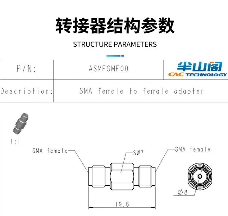 Banshange 26.5G microwave RF coaxial adapter SMA-KK 26.5GHz double female stainless steel female to female straight through test high frequency calibration ASMFSMF00