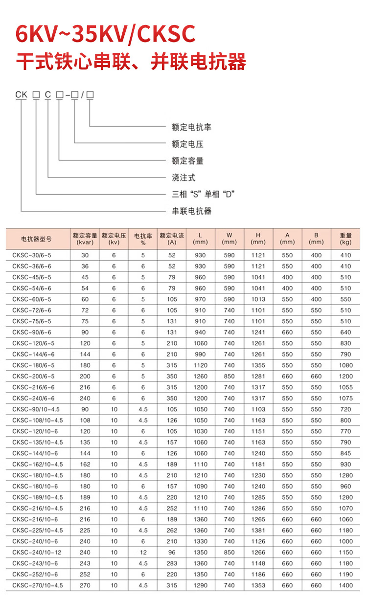Sichuan Electric High Voltage Iron Core Reactor CKSC-12/10-6% Epoxy Casting 12Kvar Series Reactor Reactive Power Compensation Capacitor Cabinet Special Copper 6% 10000V 5