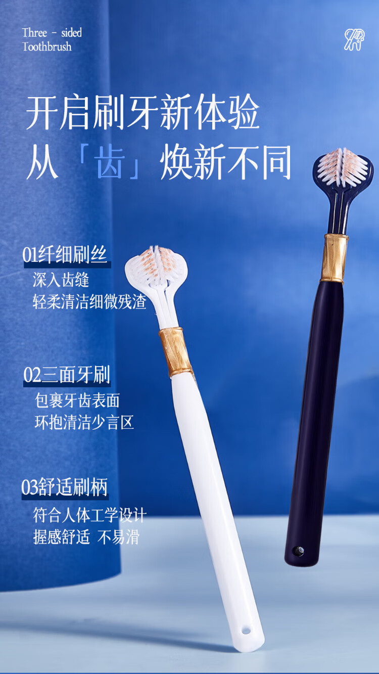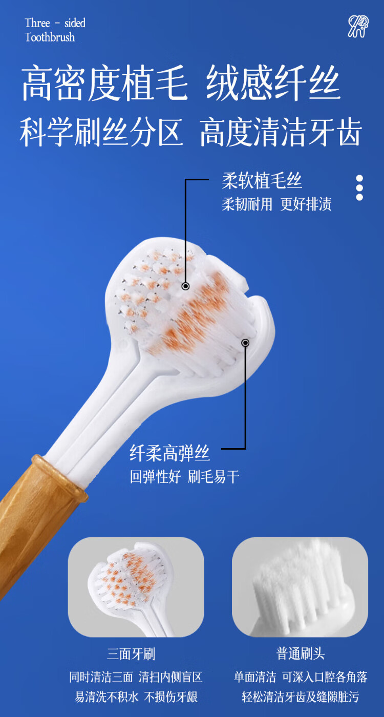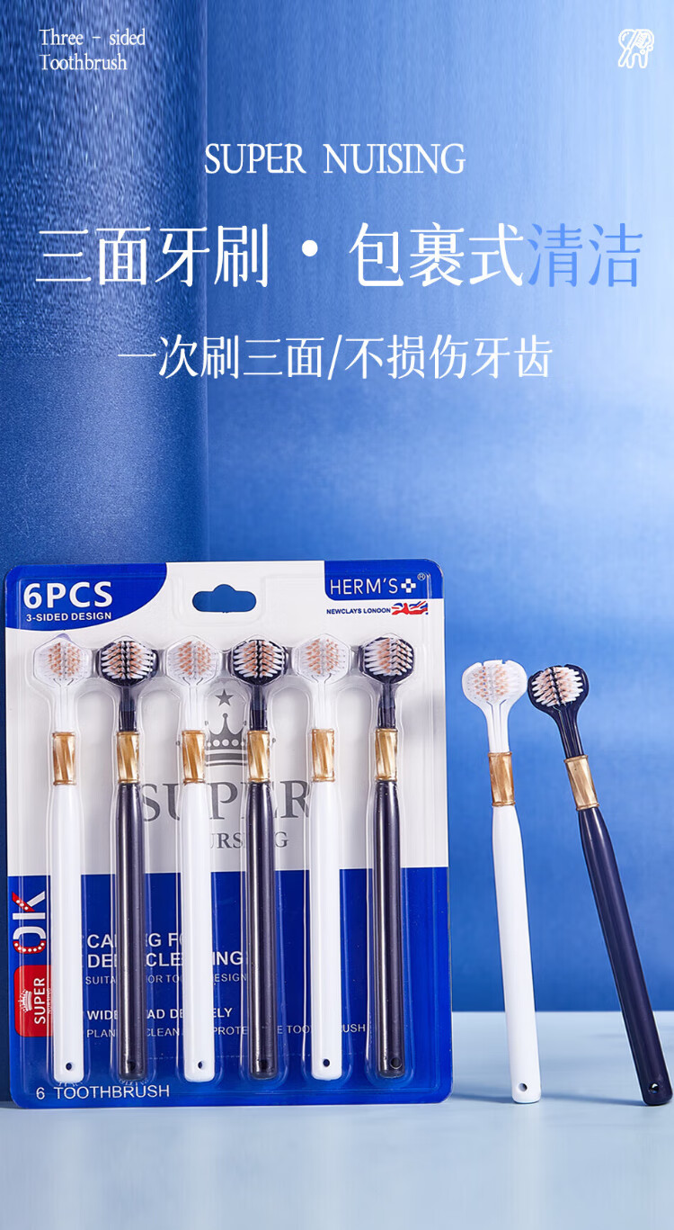 BRUSHING BEAR Sam's same toothbrush with soft bristles on three sides, 360-degree cleaning for adults, home decoration, household men and women, 6 pack