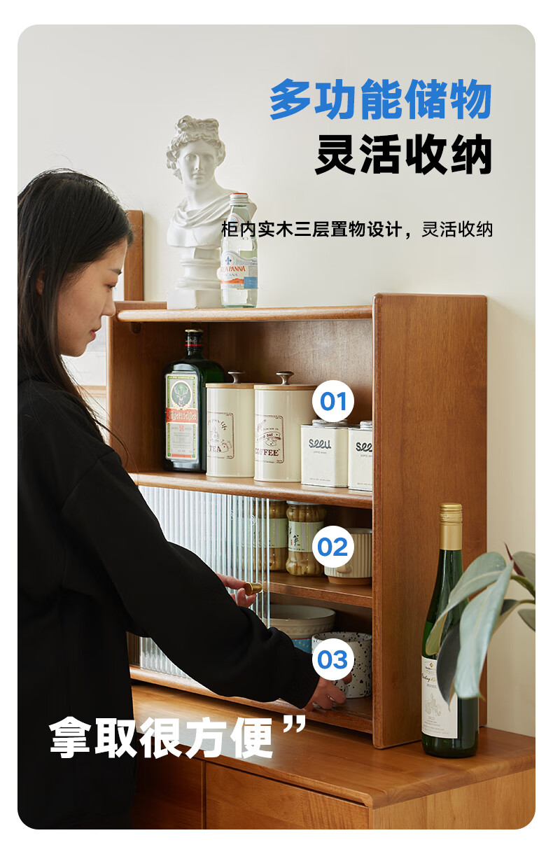 Xiangmuyu solid wood storage rack sideboard kitchen table cup holder home dining table bowl counter top storage high cabinet rack