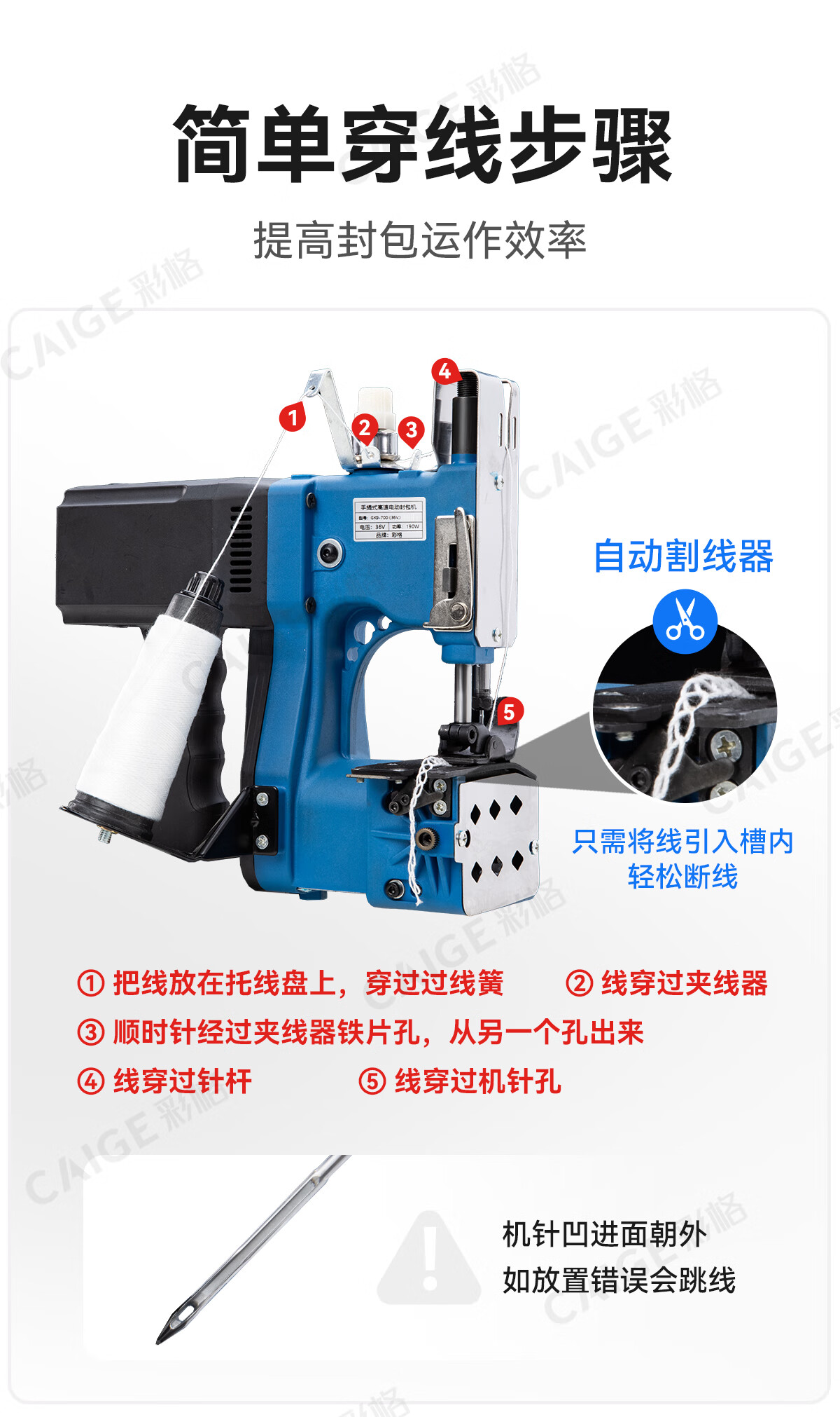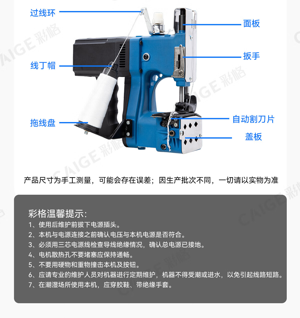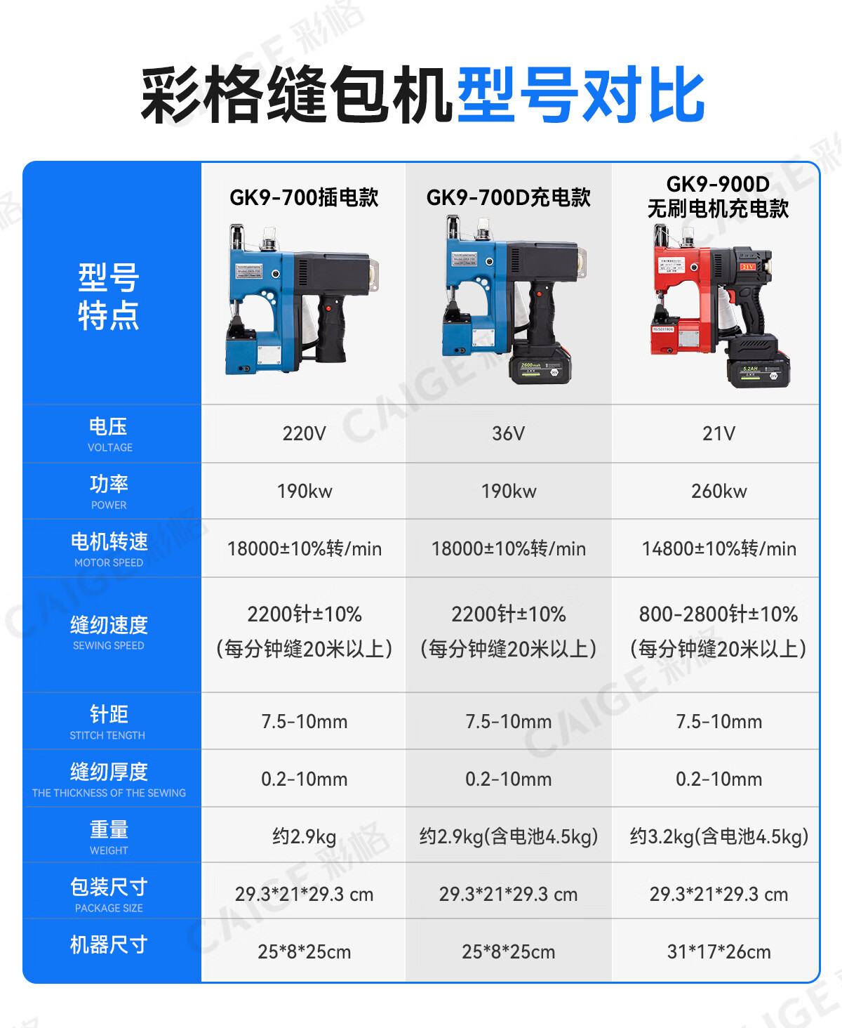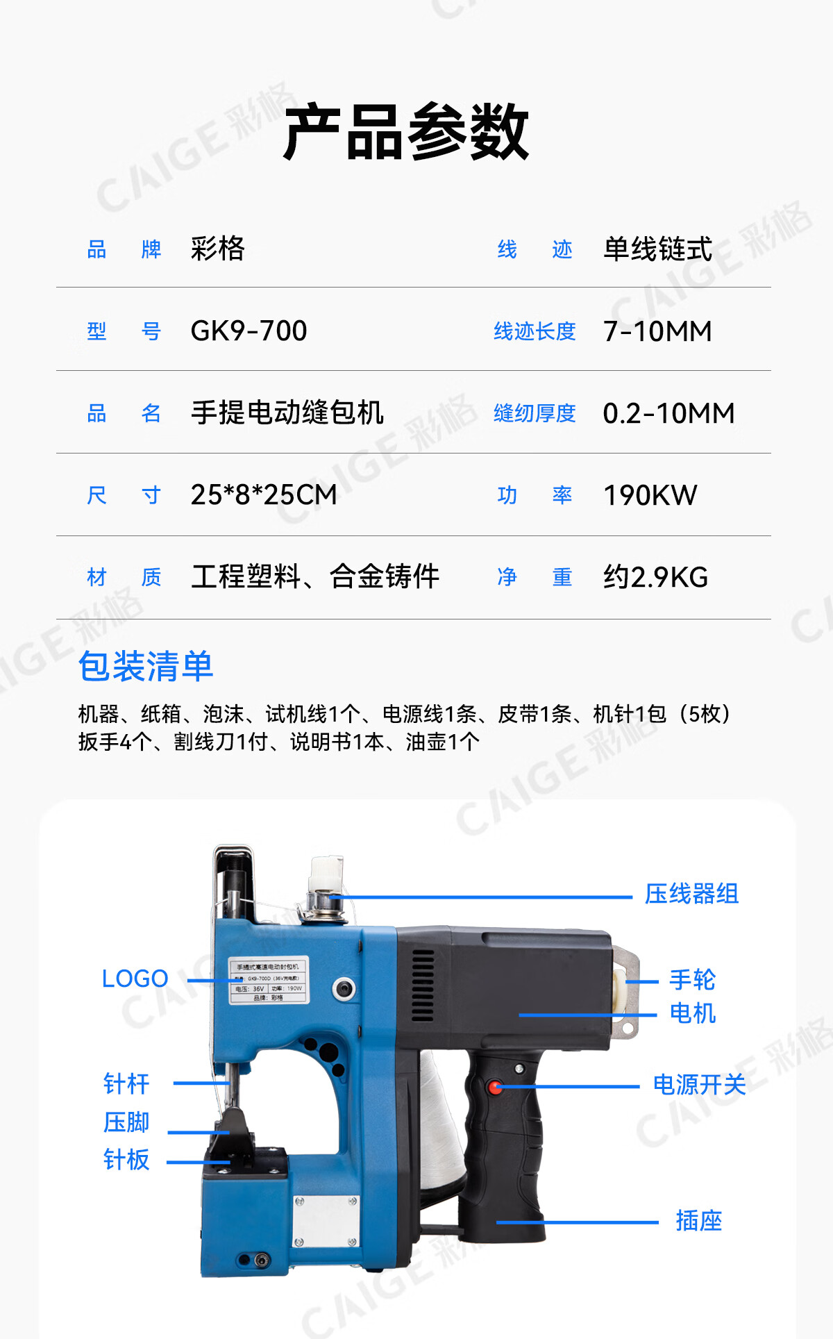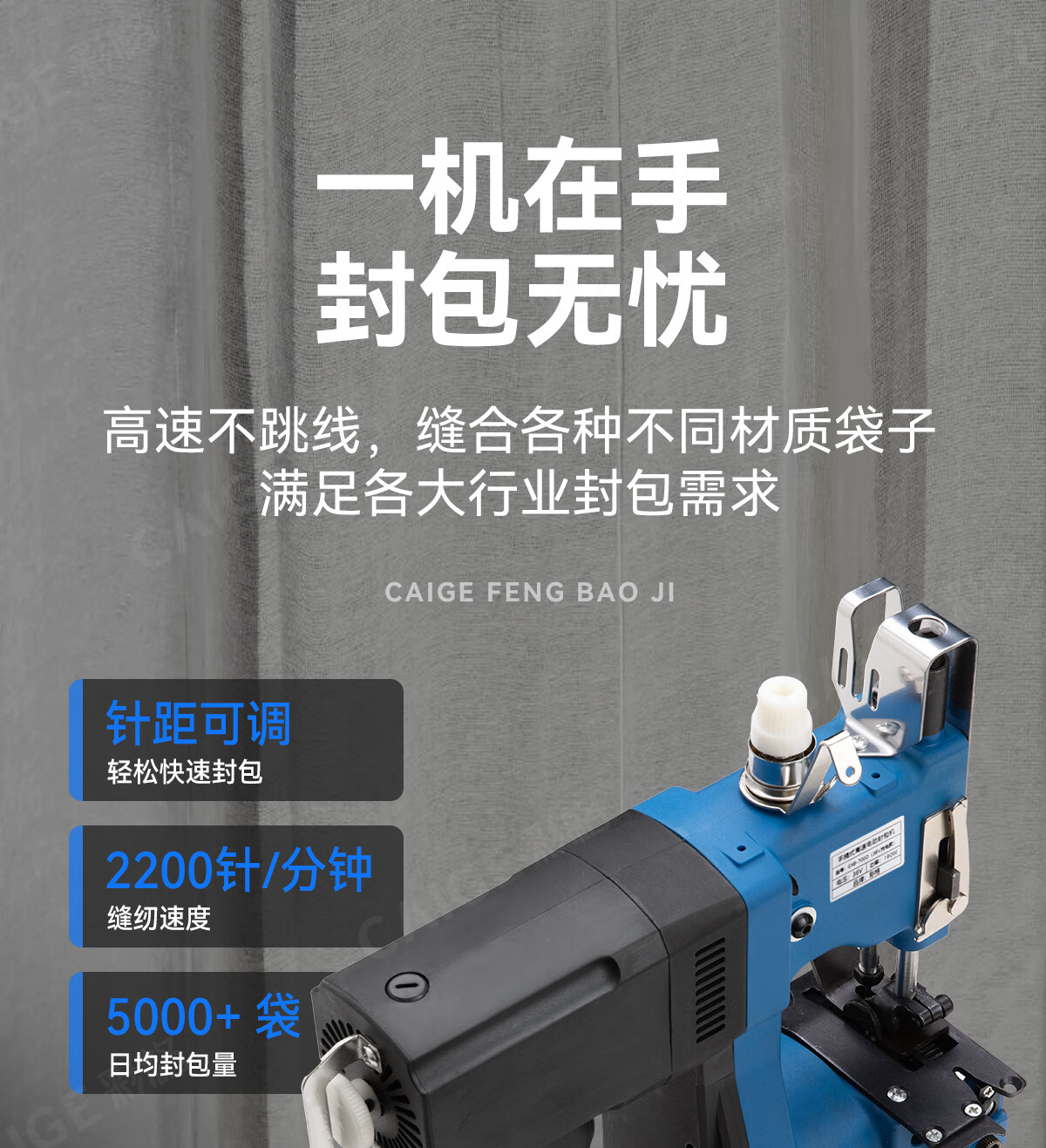 Caige GK9-700 portable bag sewing machine small 220V bag sealing machine sealing machine woven bag rice bag snakeskin bag plug-in automatic edge banding machine handheld bag sealing machine baling machine
