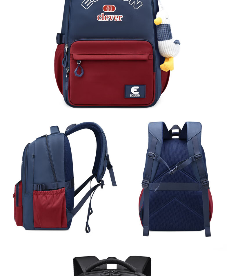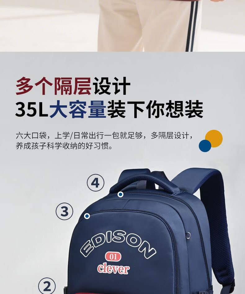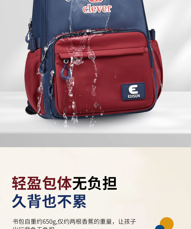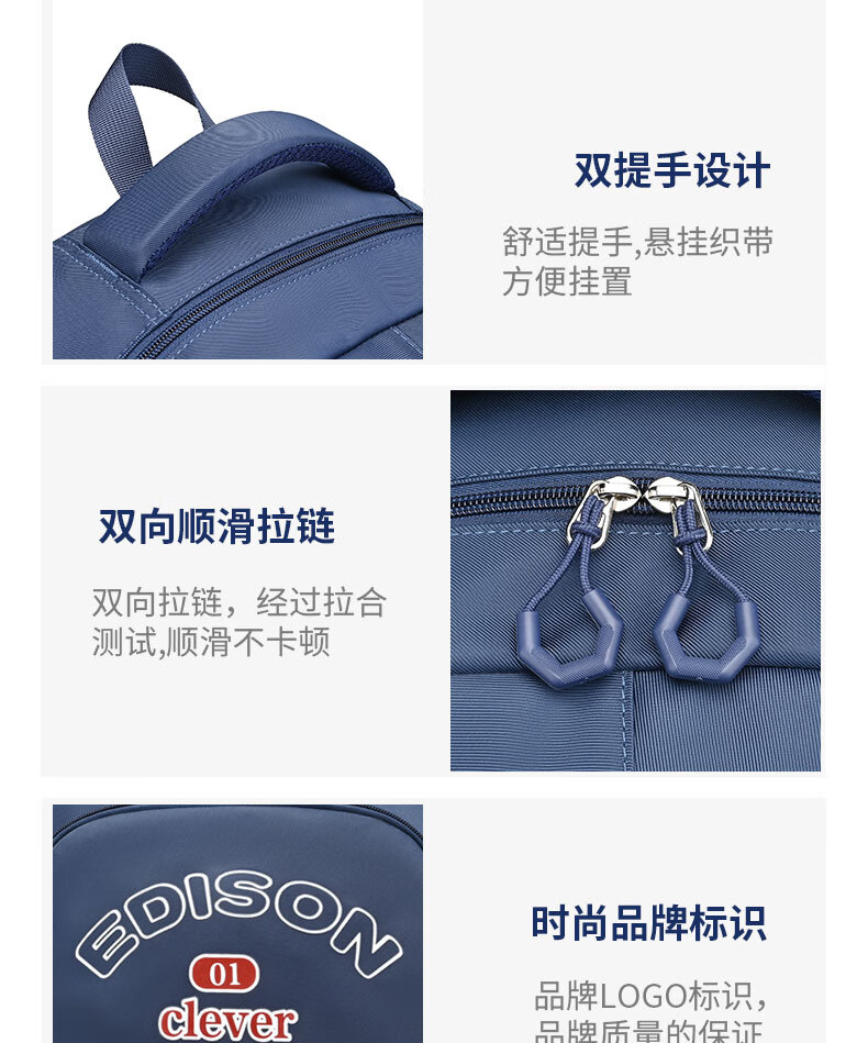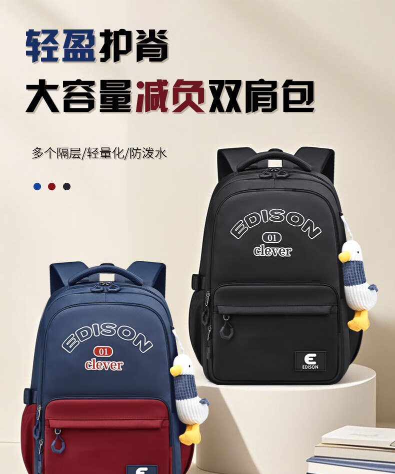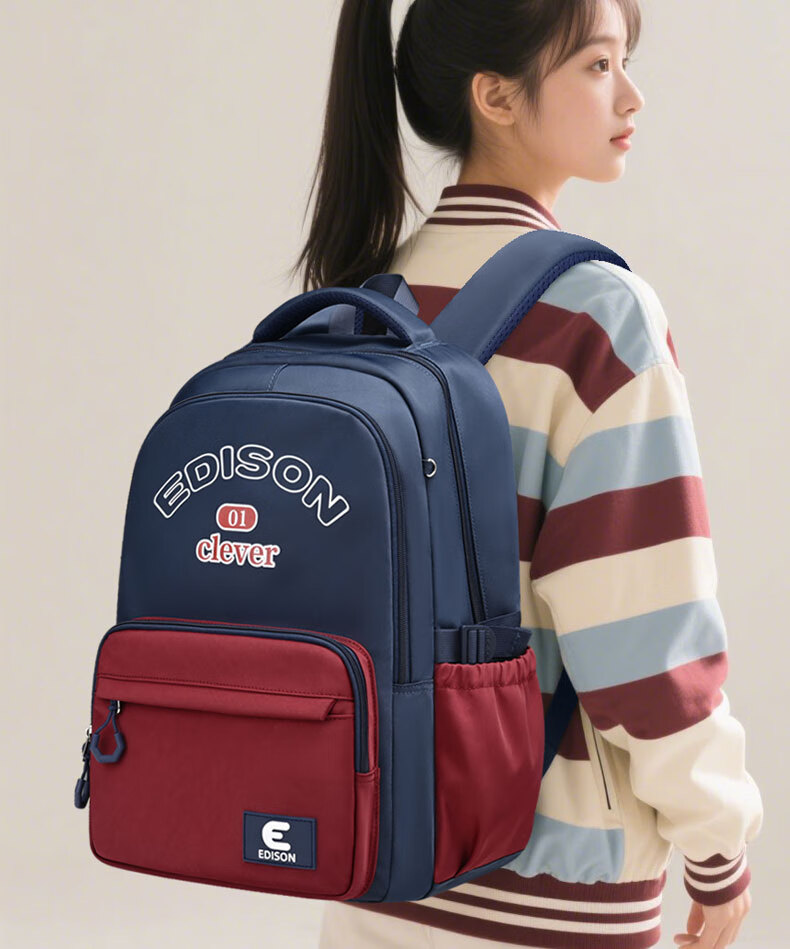 Edison inventor junior high school student schoolbag spine protection and load reduction boys and girls large capacity backpack high school backpack k21-2 blue