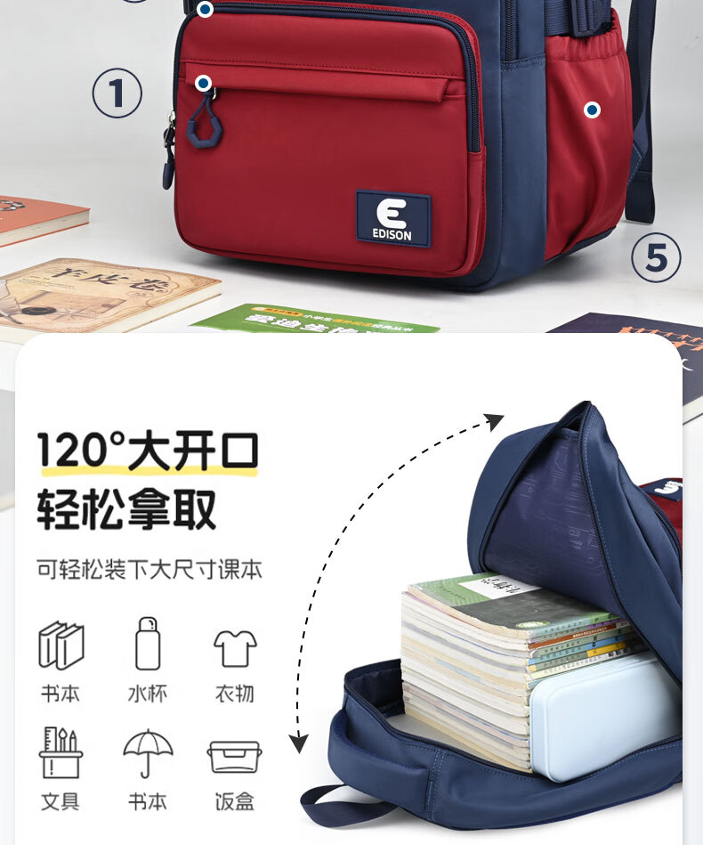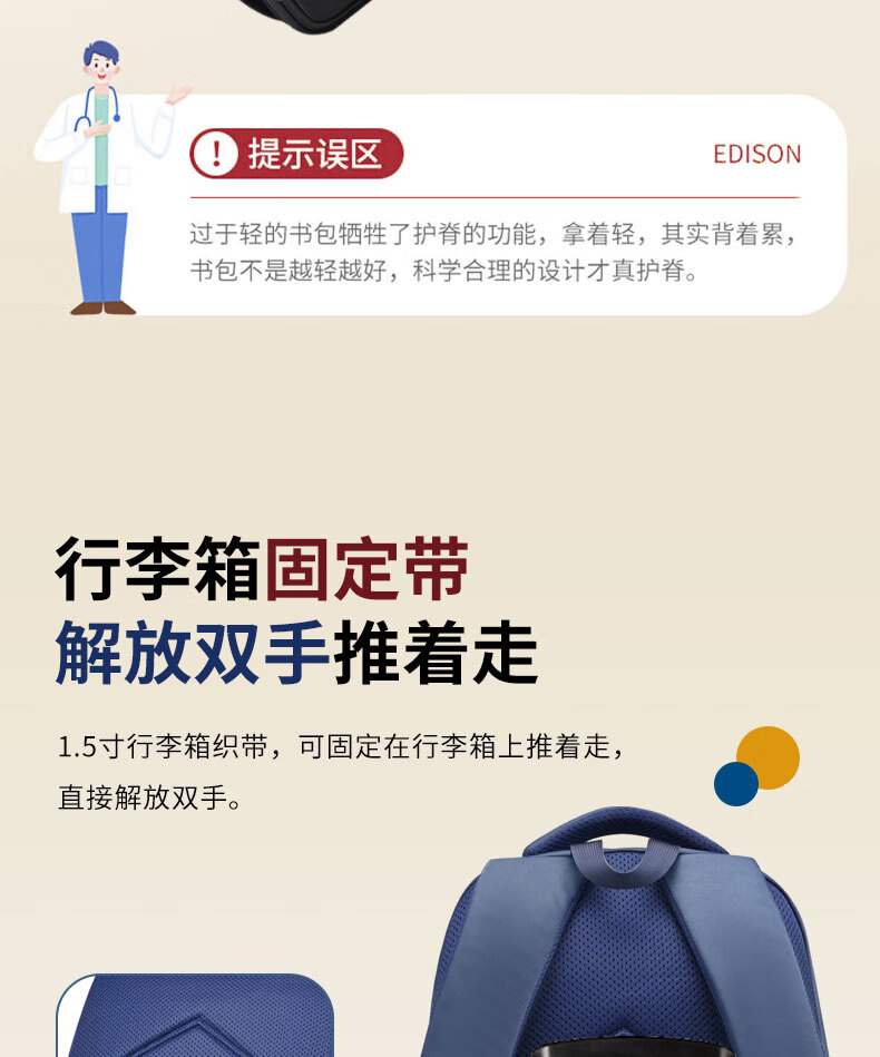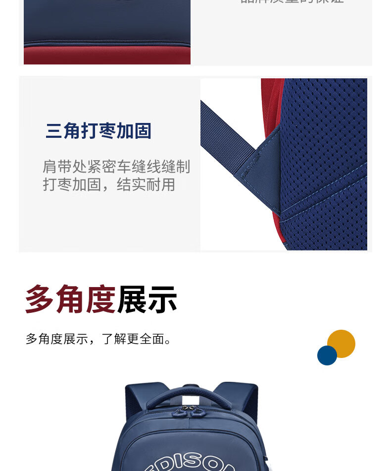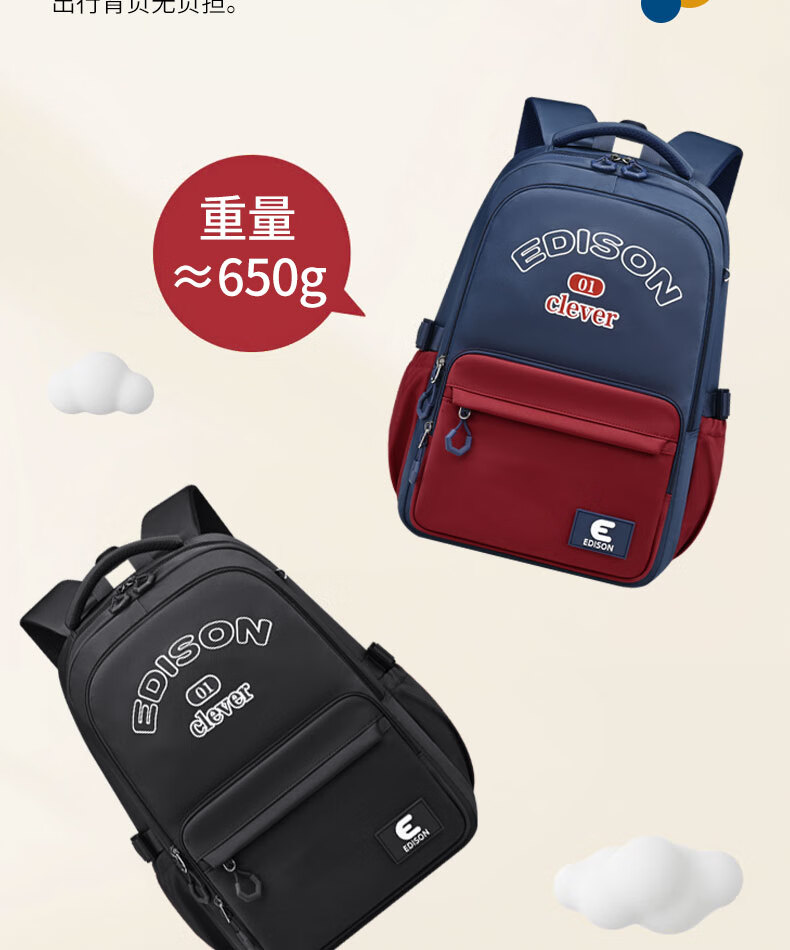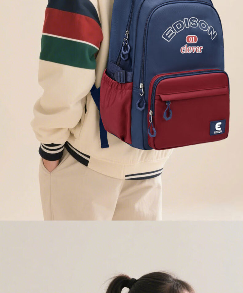 Edison inventor junior high school student schoolbag spine protection and load reduction boys and girls large capacity backpack high school backpack k21-2 blue
