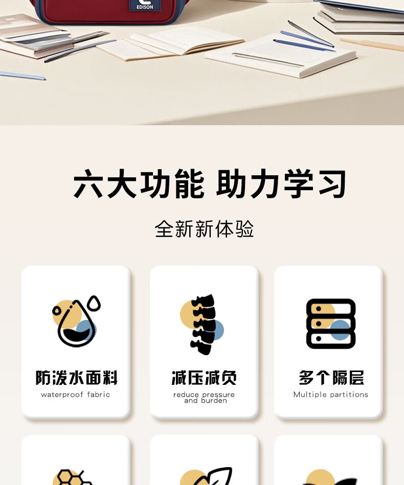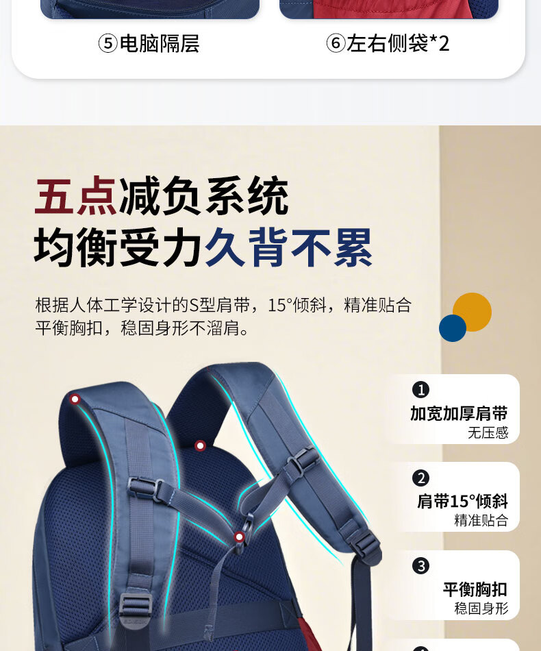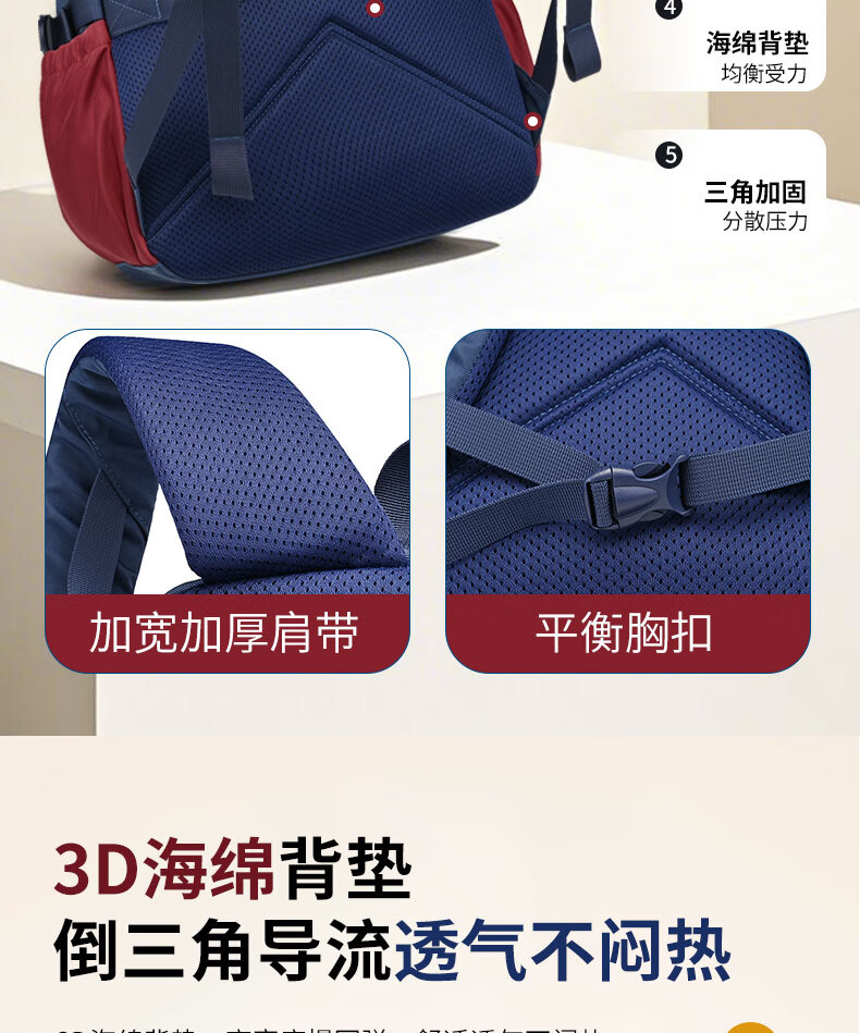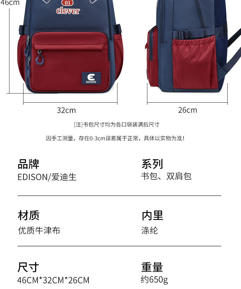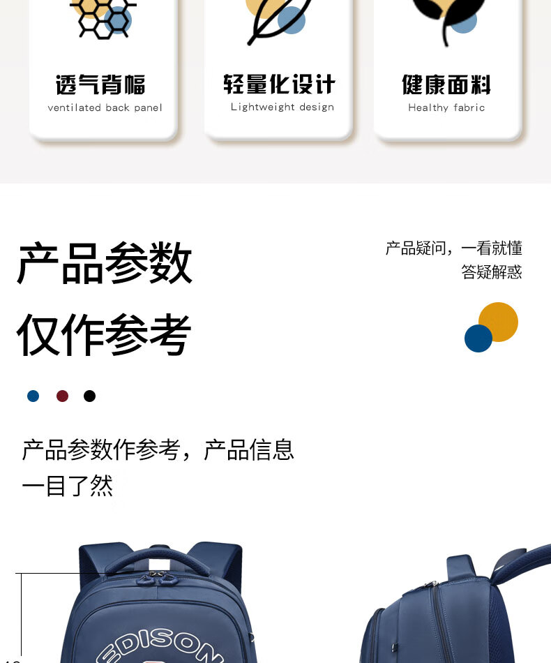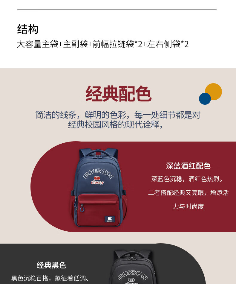 Edison inventor junior high school student schoolbag spine protection and load reduction boys and girls large capacity backpack high school backpack k21-2 blue