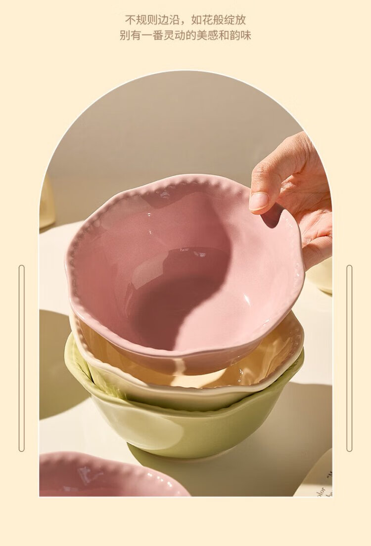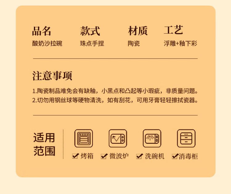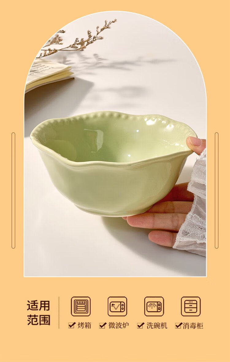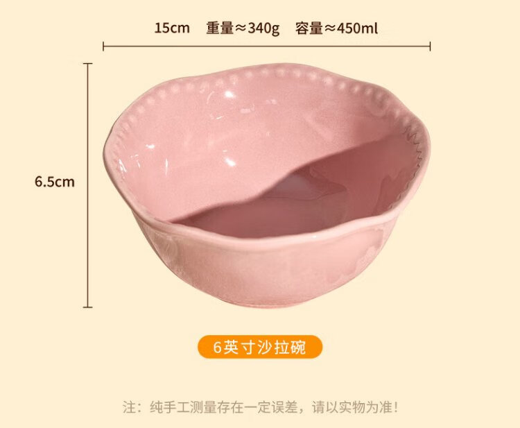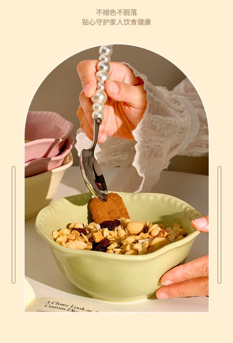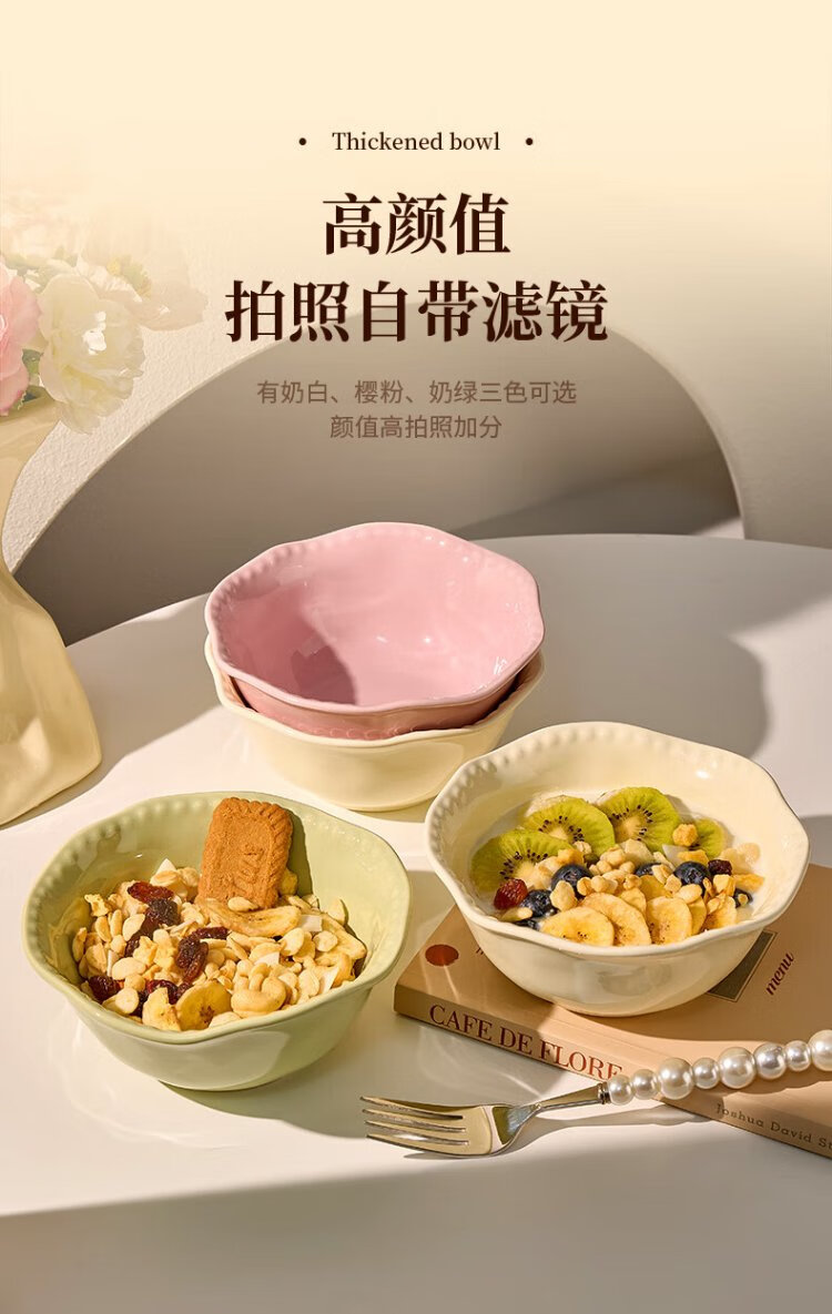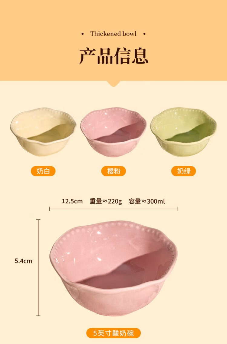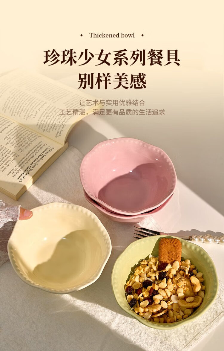 TREEJACK Bead Dot Girly Cream Style Ceramic Yogurt Salad Bowl Dessert Oatmeal Breakfast Bowl Fruit Bowl Rice Ramen Soup Bowl