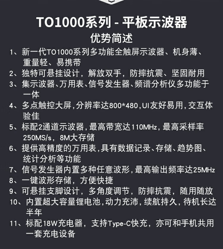 Hantek digital flat-panel oscilloscope full touch portable 4-channel 250M TO1252D (multimeter + signal source)