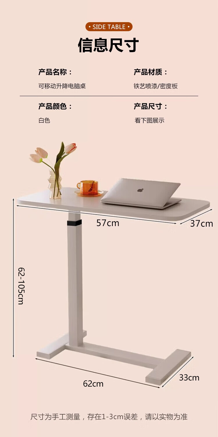 Jingju bedside table movable lift computer table living room sofa foldable desk home bedroom study table BGZ750