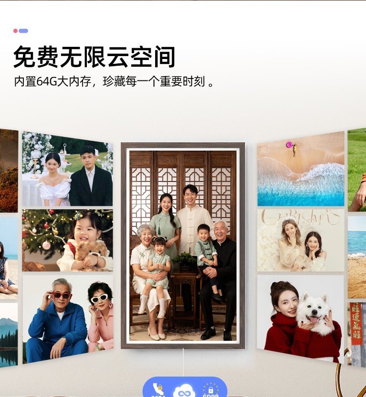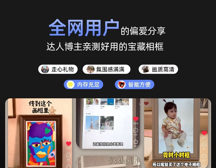 Nishi 3K ultra-clear 13.5-inch black digital electronic photo frame smart cloud photo album high-definition touch screen display player table set Spring Festival New Year Valentine's Day gift