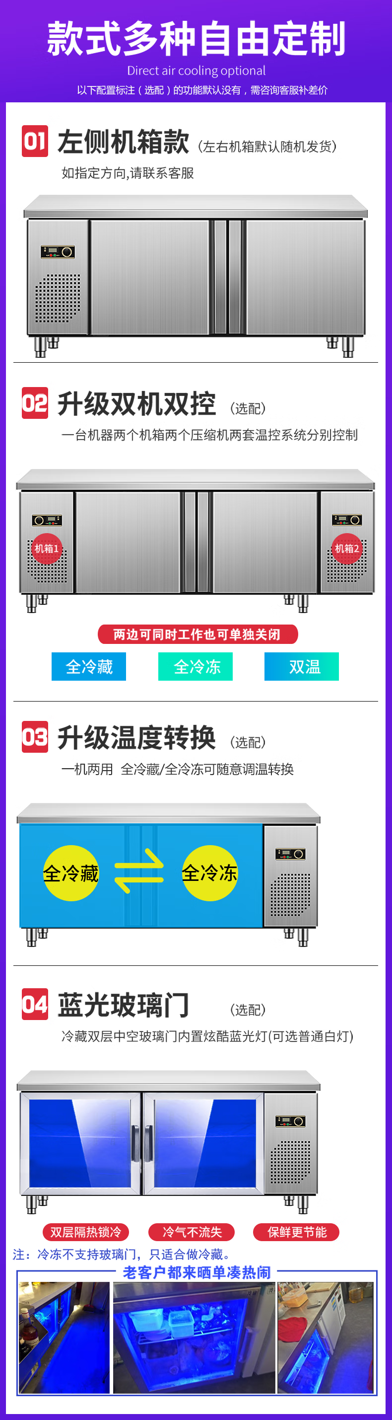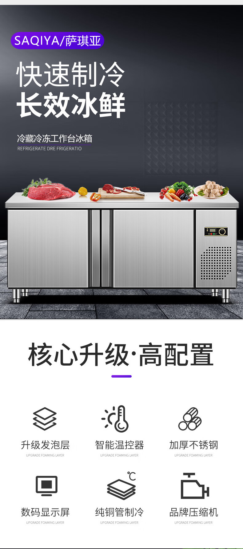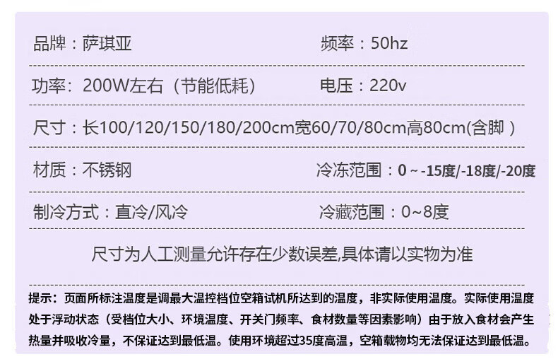 Sakia double-door freezer operation table side door single and double temperature refrigeration and cold storage work surface horizontal commercial refrigerator display cabinet large capacity restaurant hotel freezer stainless steel direct cooling single temperature full refrigeration (freshness preservation 0~ +8 degrees) length 180 width 60/70/80 height 80cm (width message