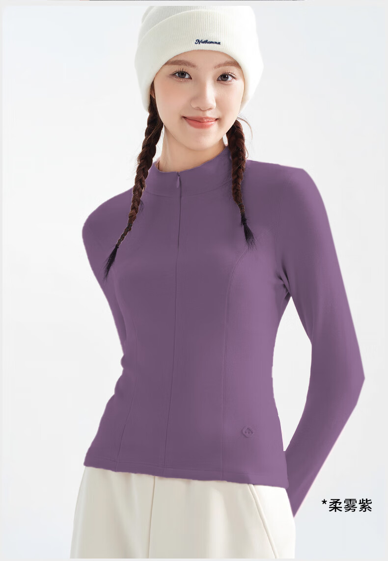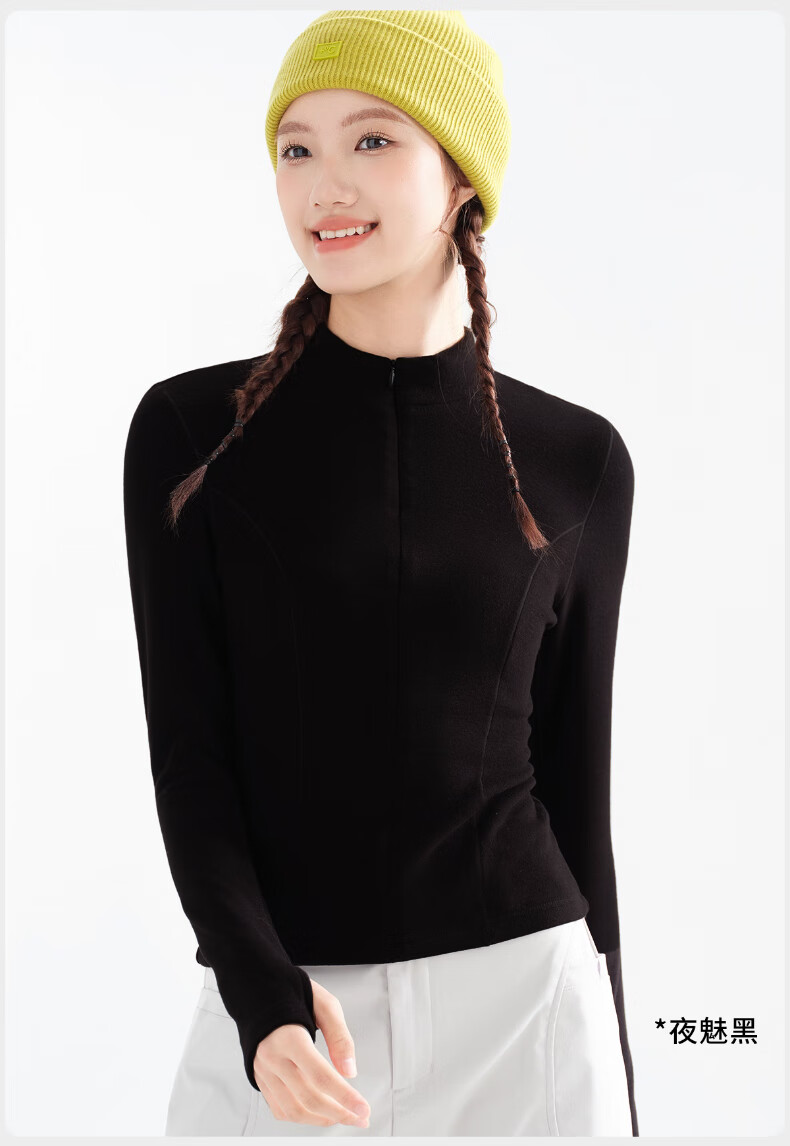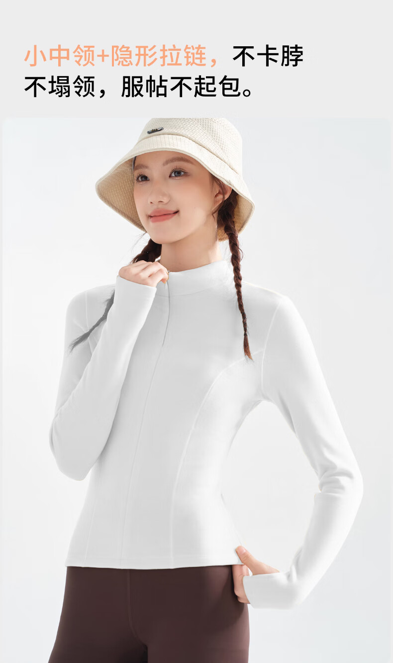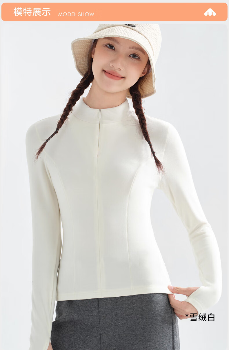 NOME half-zip bottoming shirt for women in autumn and winter slim fit polar fleece warm outdoor top long-sleeved T-shirt white L