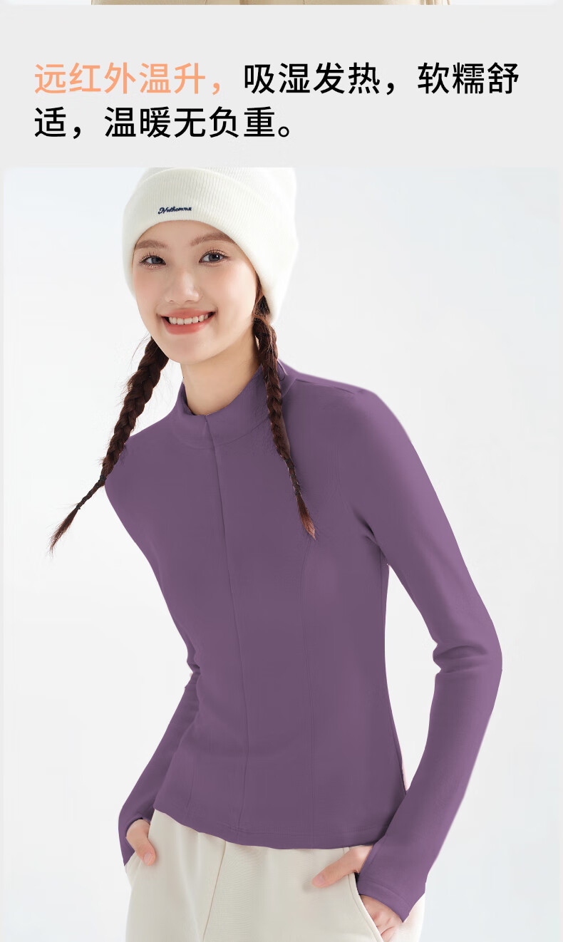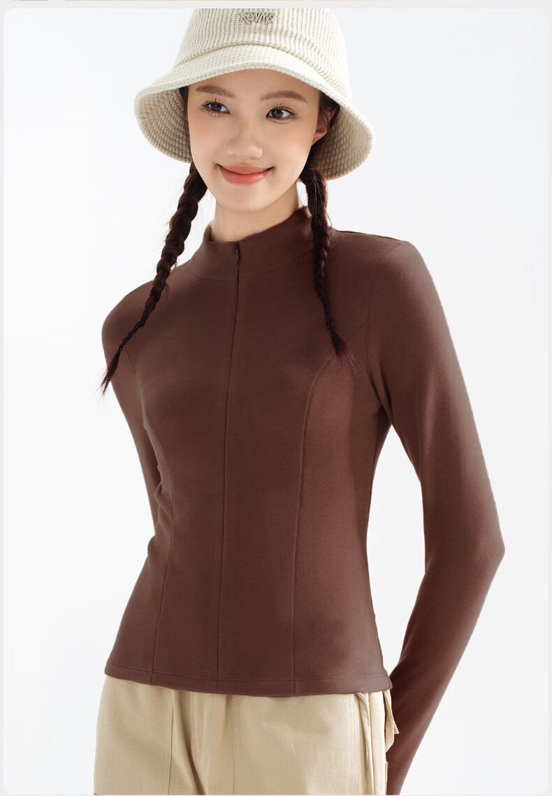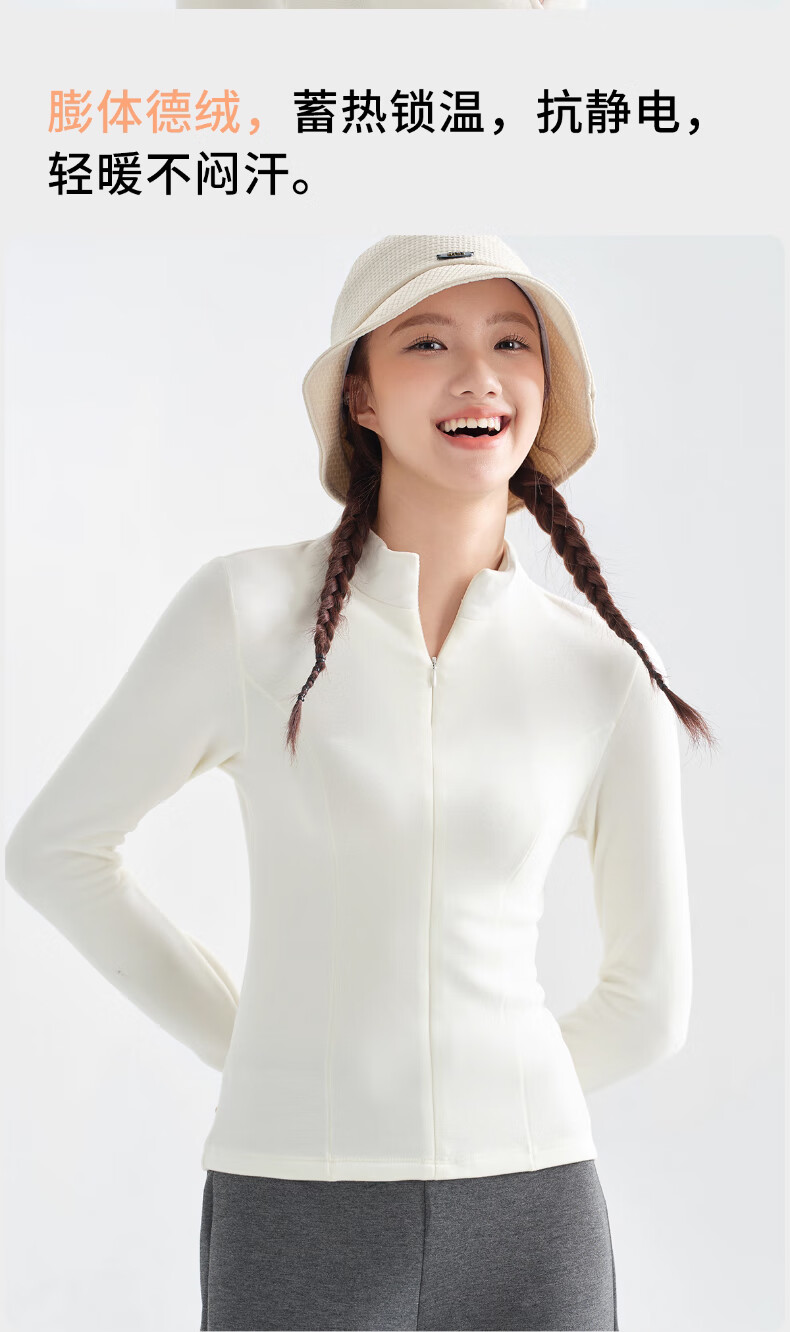 NOME half-zip bottoming shirt for women in autumn and winter slim fit polar fleece warm outdoor top long-sleeved T-shirt white L