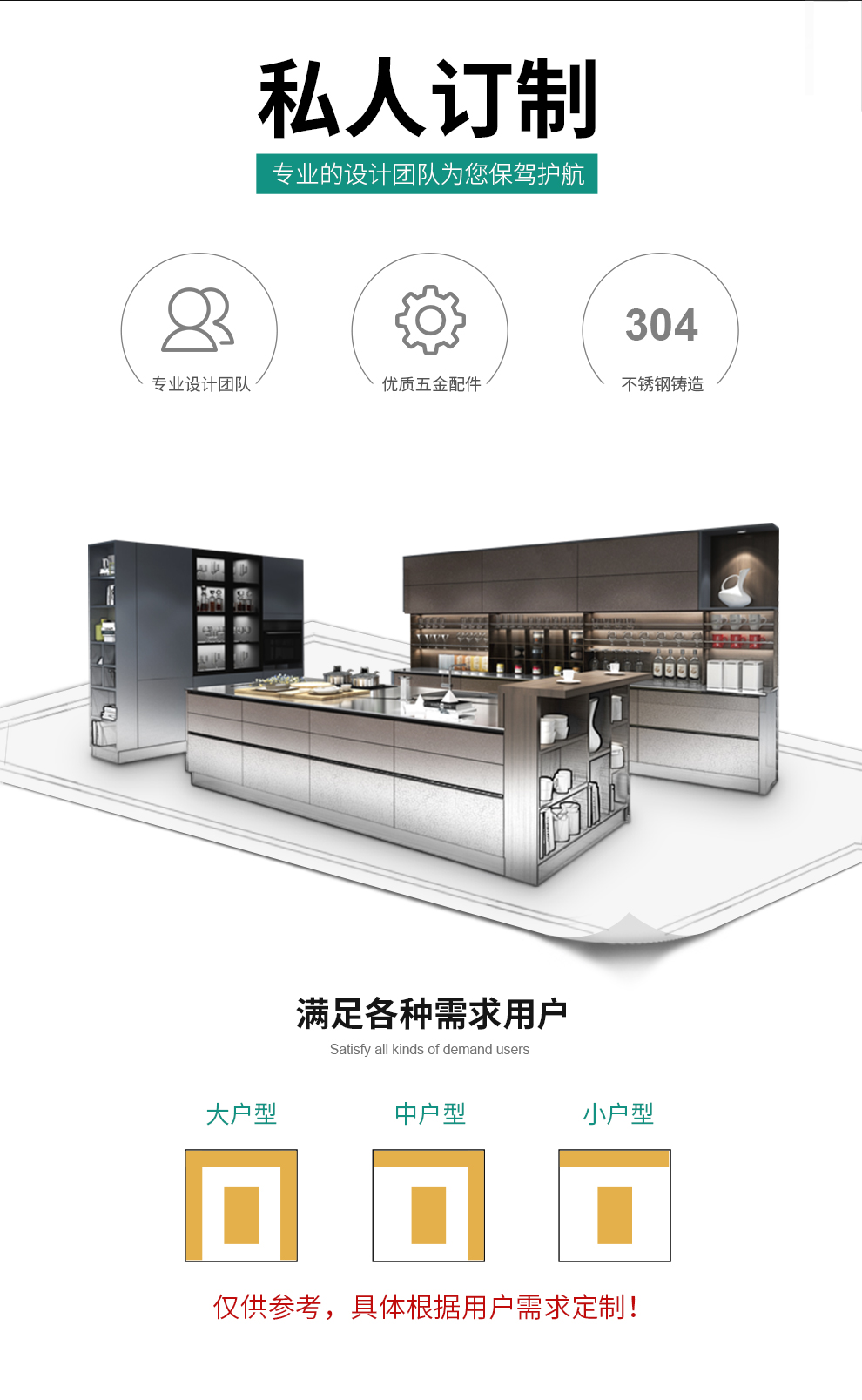 Kallia Emilia series stainless steel cabinets 304 all steel integrated kitchen cabinet customization