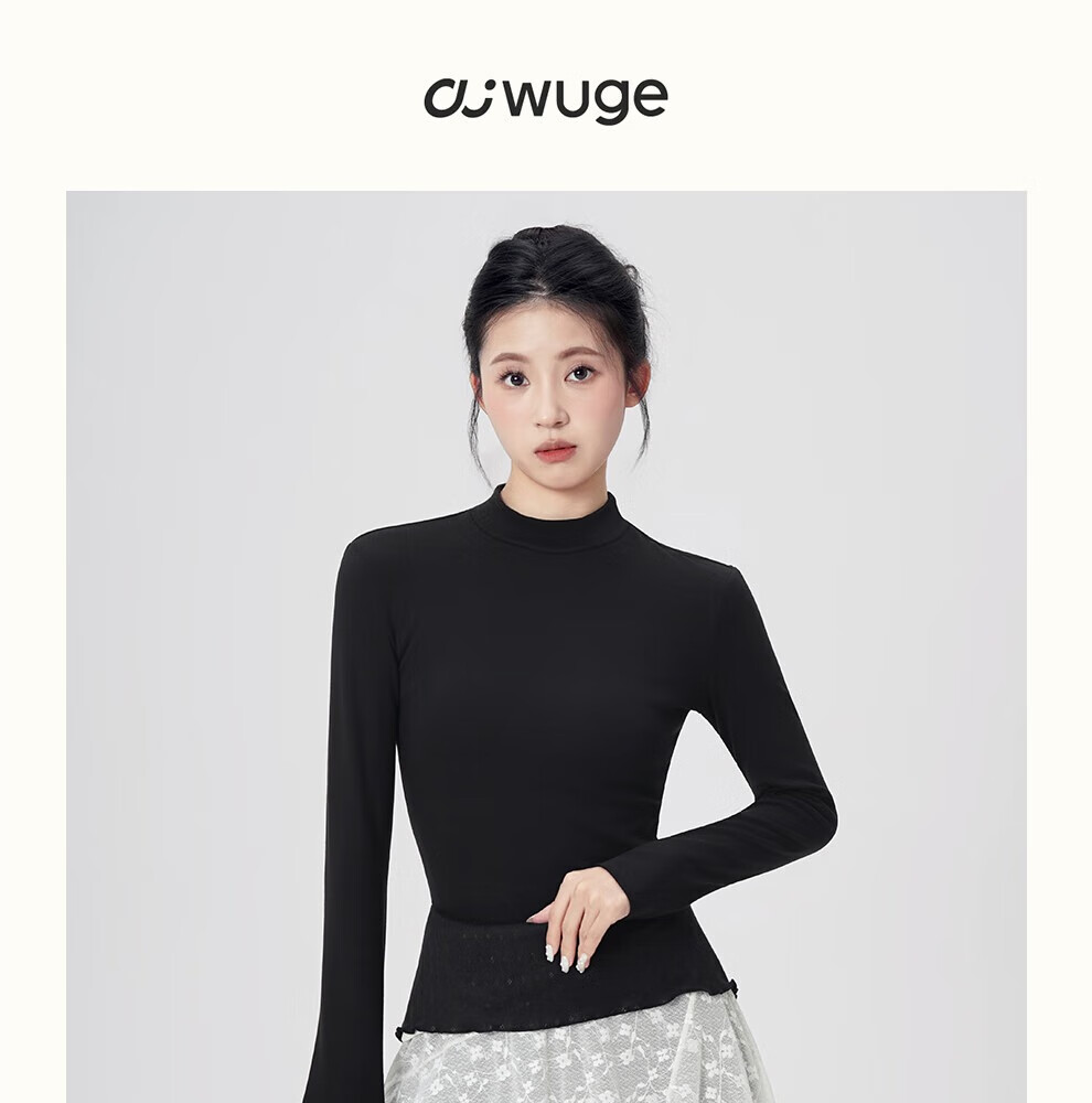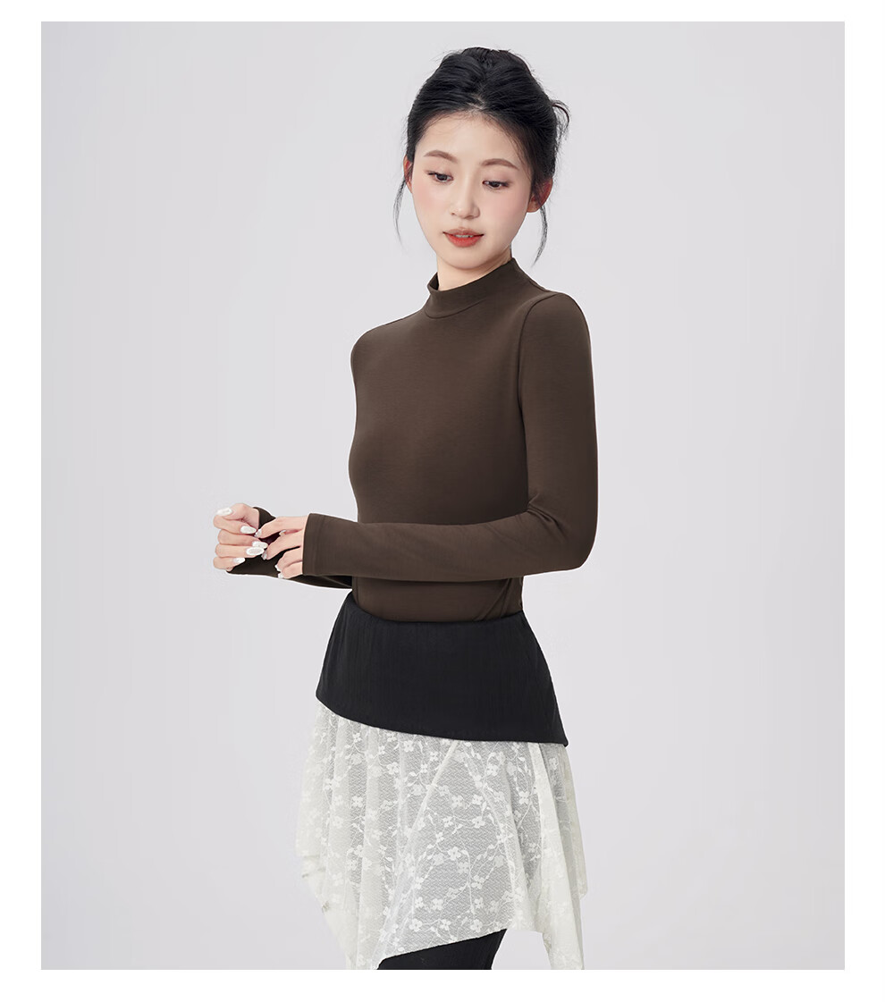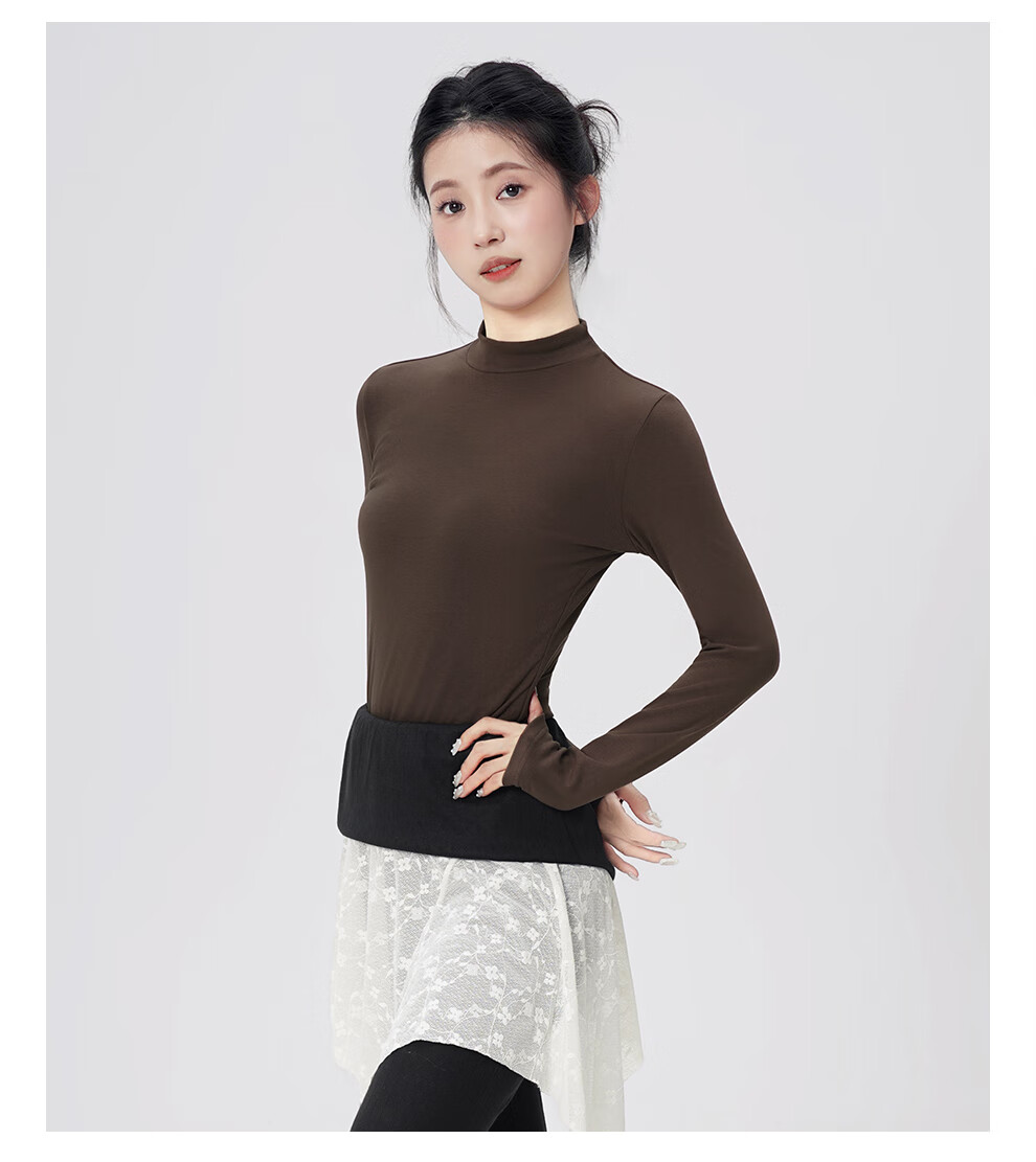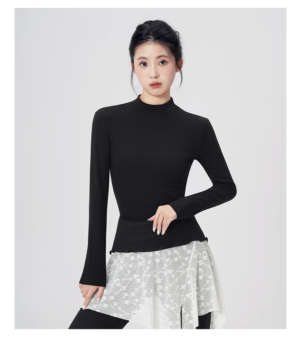 Aiwugo dance clothing top adult ballet modern dance warm base yoga practice body daily wear black 2XL