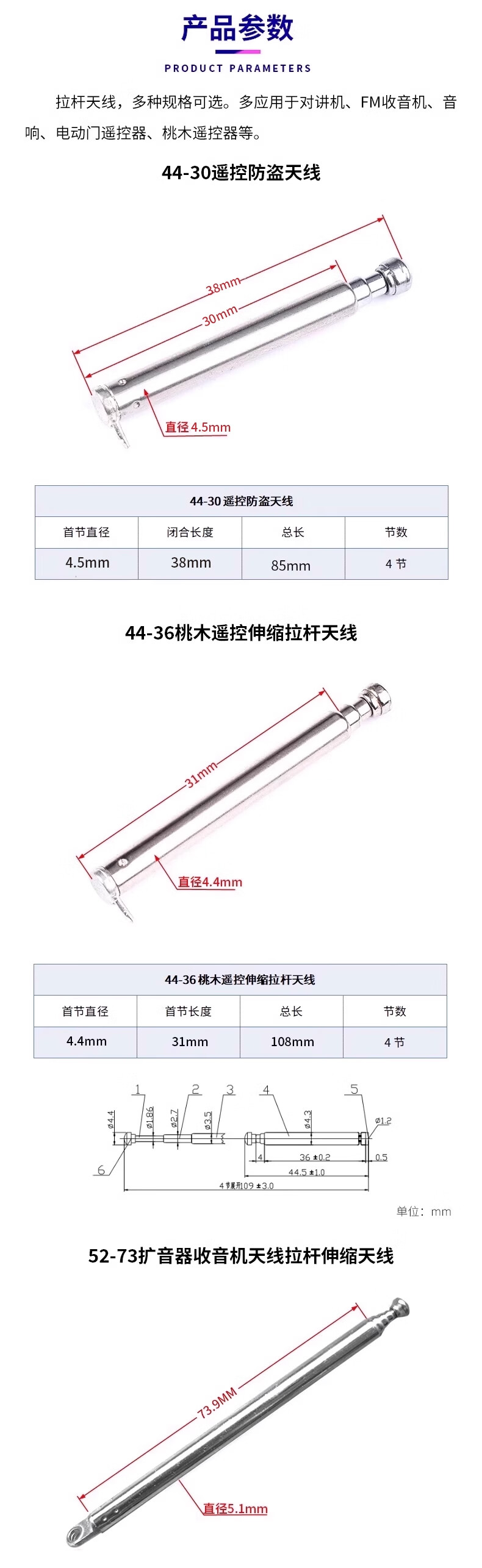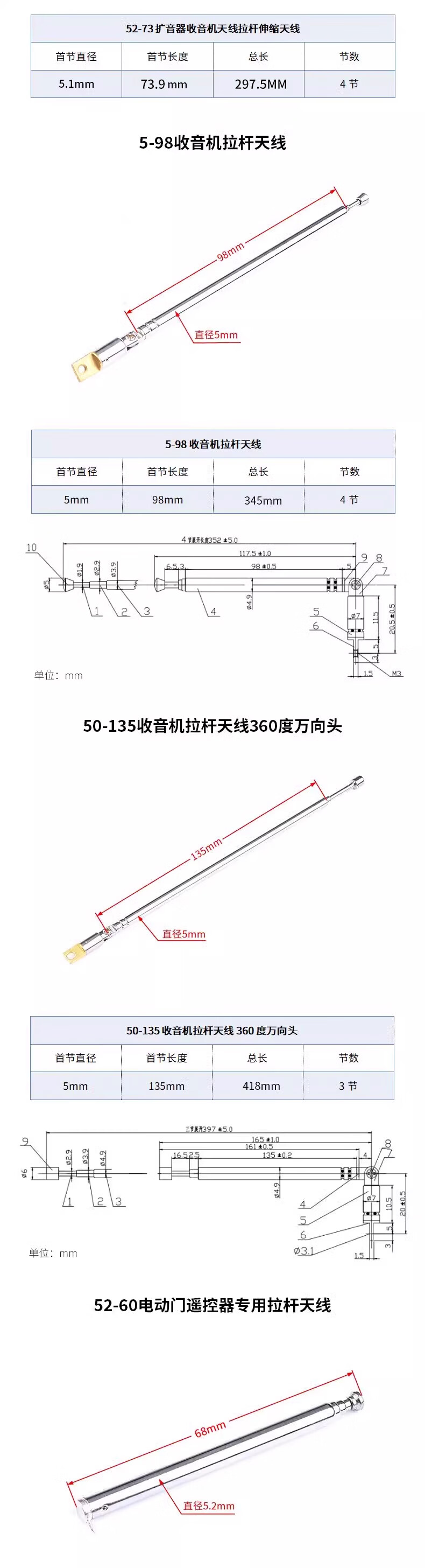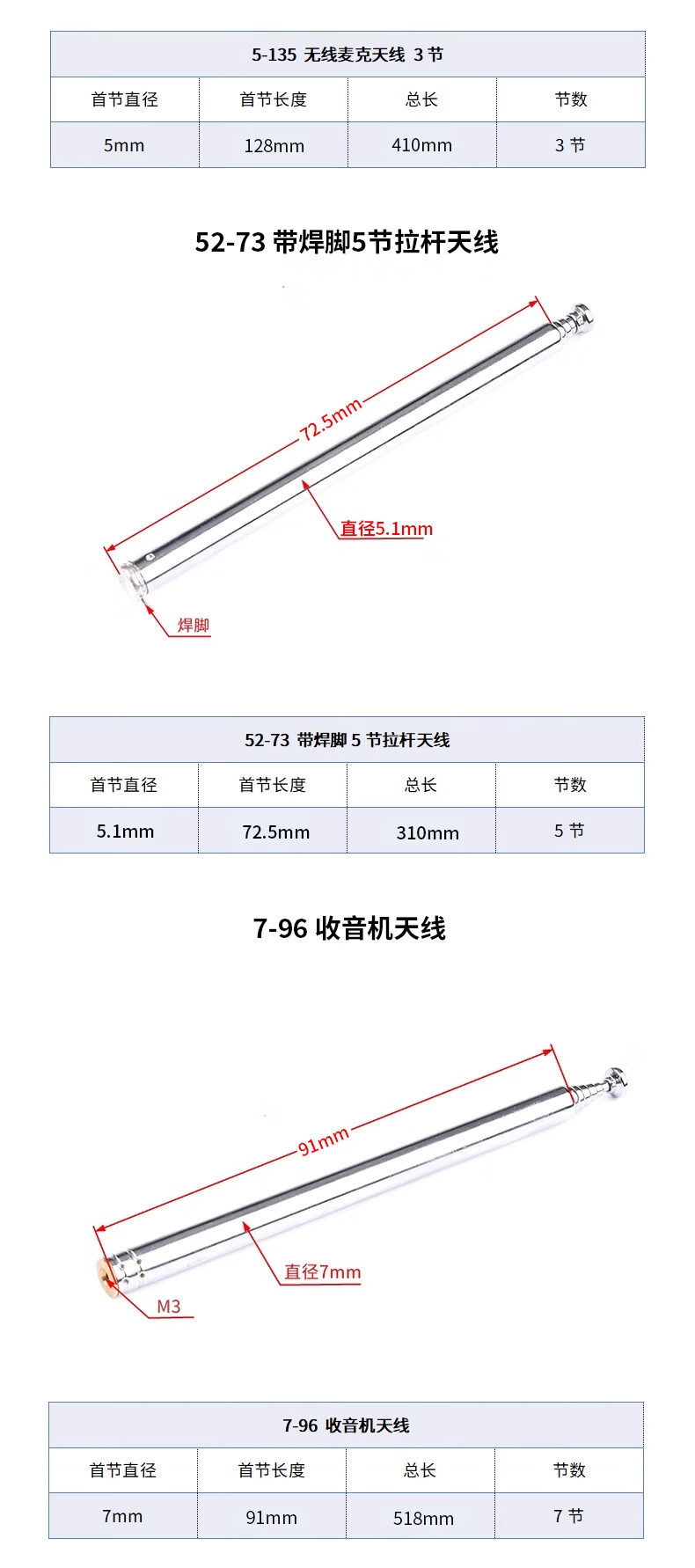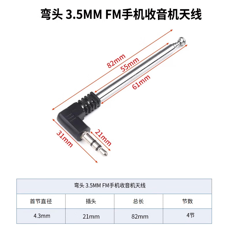 ZAVE FM radio walkie-talkie stretch antenna 50-135 radio telescopic antenna 360-degree universal head