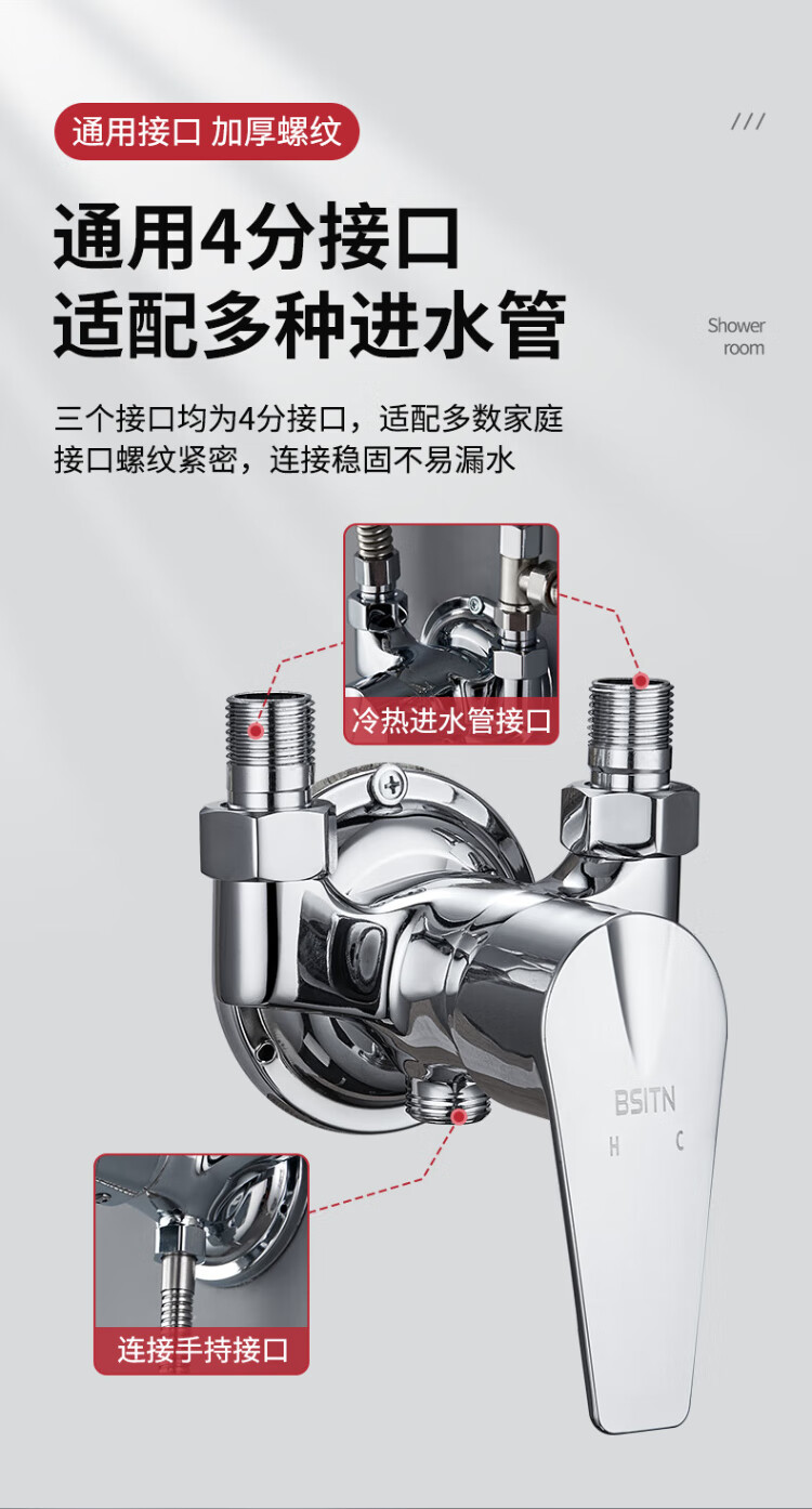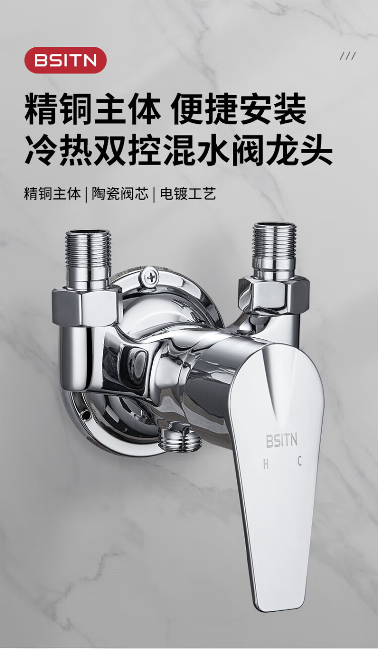 BSITN water mixing valve open pipe mounted copper shower faucet bathroom shower shower switch hot and cold mixing valve B1112
