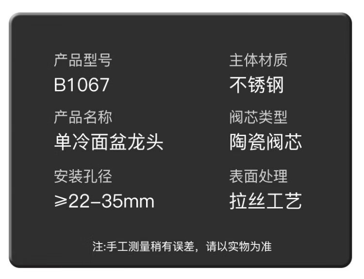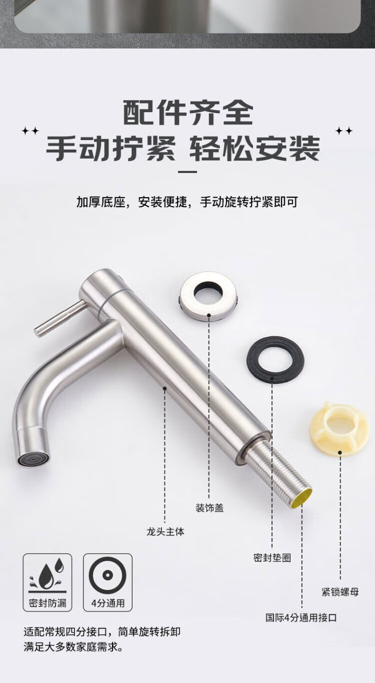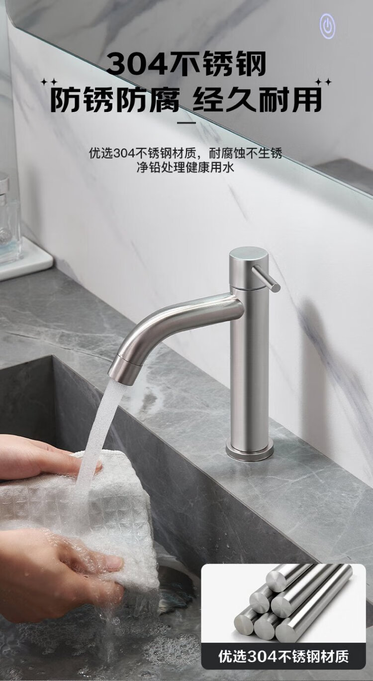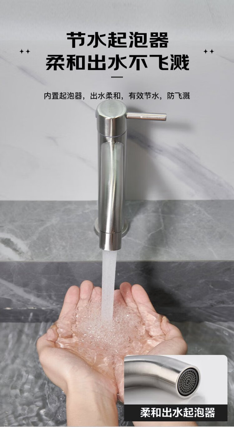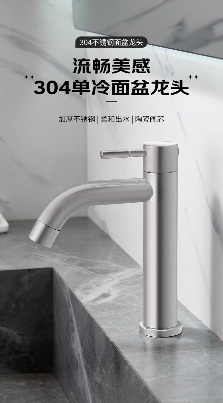 BSITN basin faucet 304 stainless steel single cold wash basin wash basin bathroom bathroom counter basin faucet B1067
